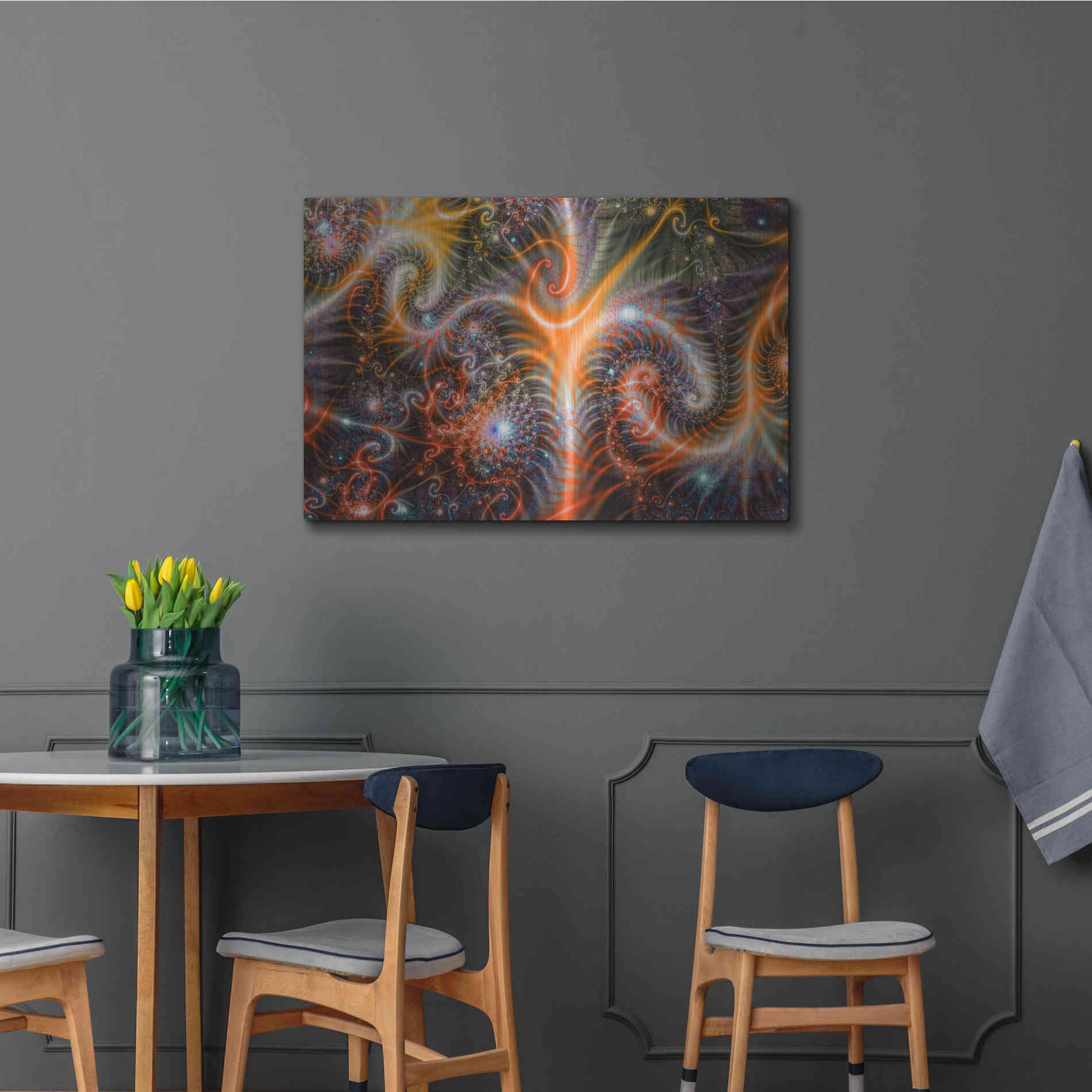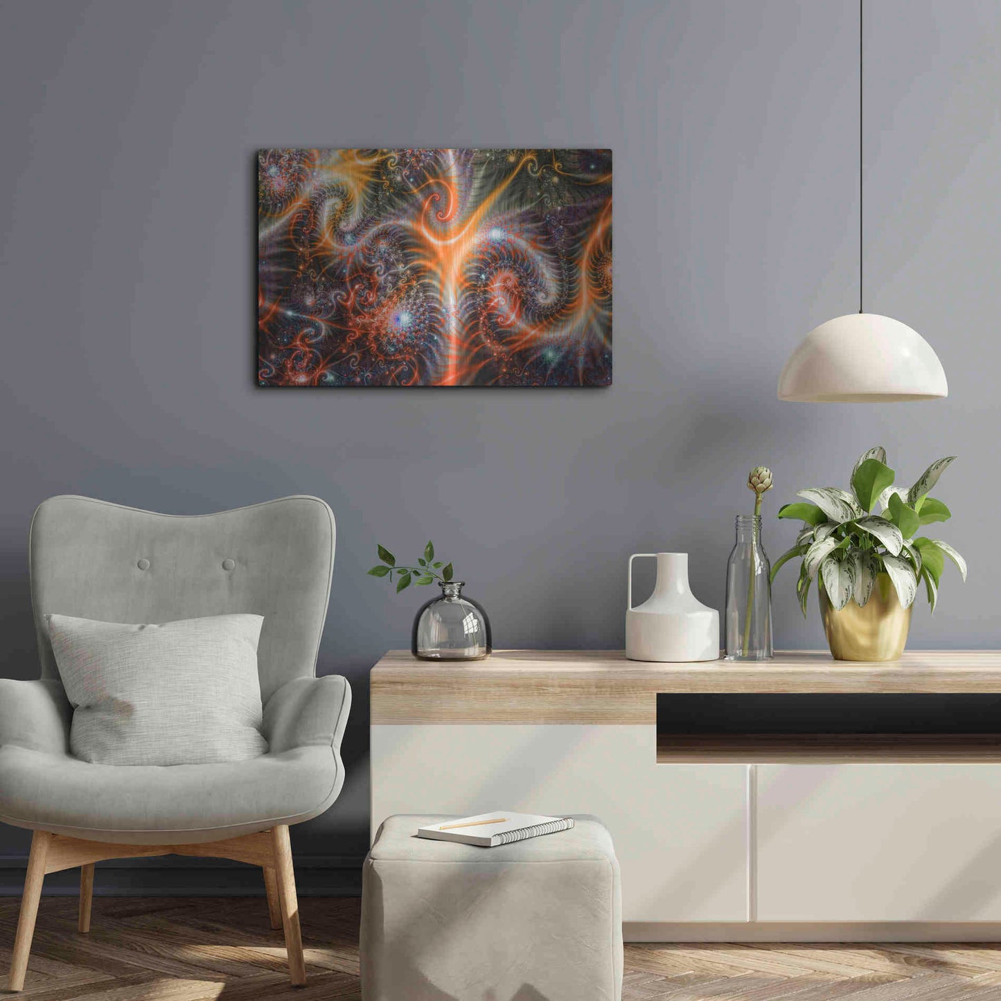 - Modern art with vibrant colors and extraordinary depth comes ready to hang with a mounted hanging plate on the back