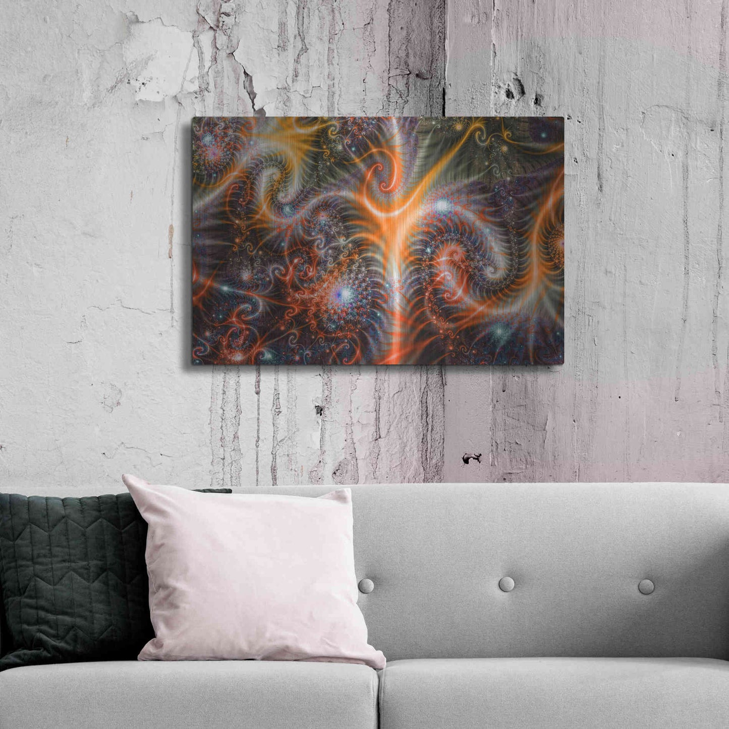 "Amoeba" curated and created specially for Luxe Metal Art. Bring a touch of something unique with Aluminum Wall Art from Luxe Metal Art for your home or business. UV Printed on 1/4 inch brushed aluminum panel and arrives ready to hang right out of the box. The shimmer of the natural aluminum gives the art a truly unique feel that can't be duplicated. Floating just over half an inch of the wall your frameless art piece will feel light and airy and truly pop.
