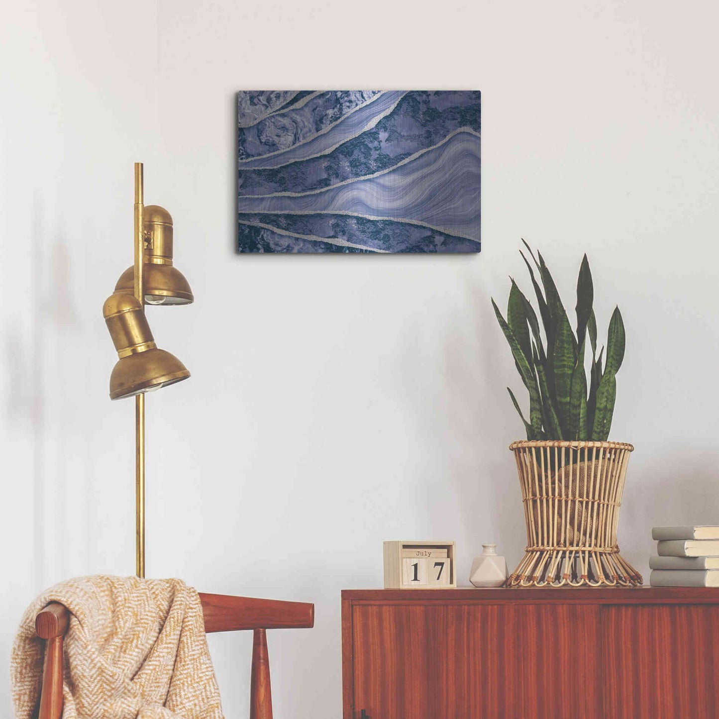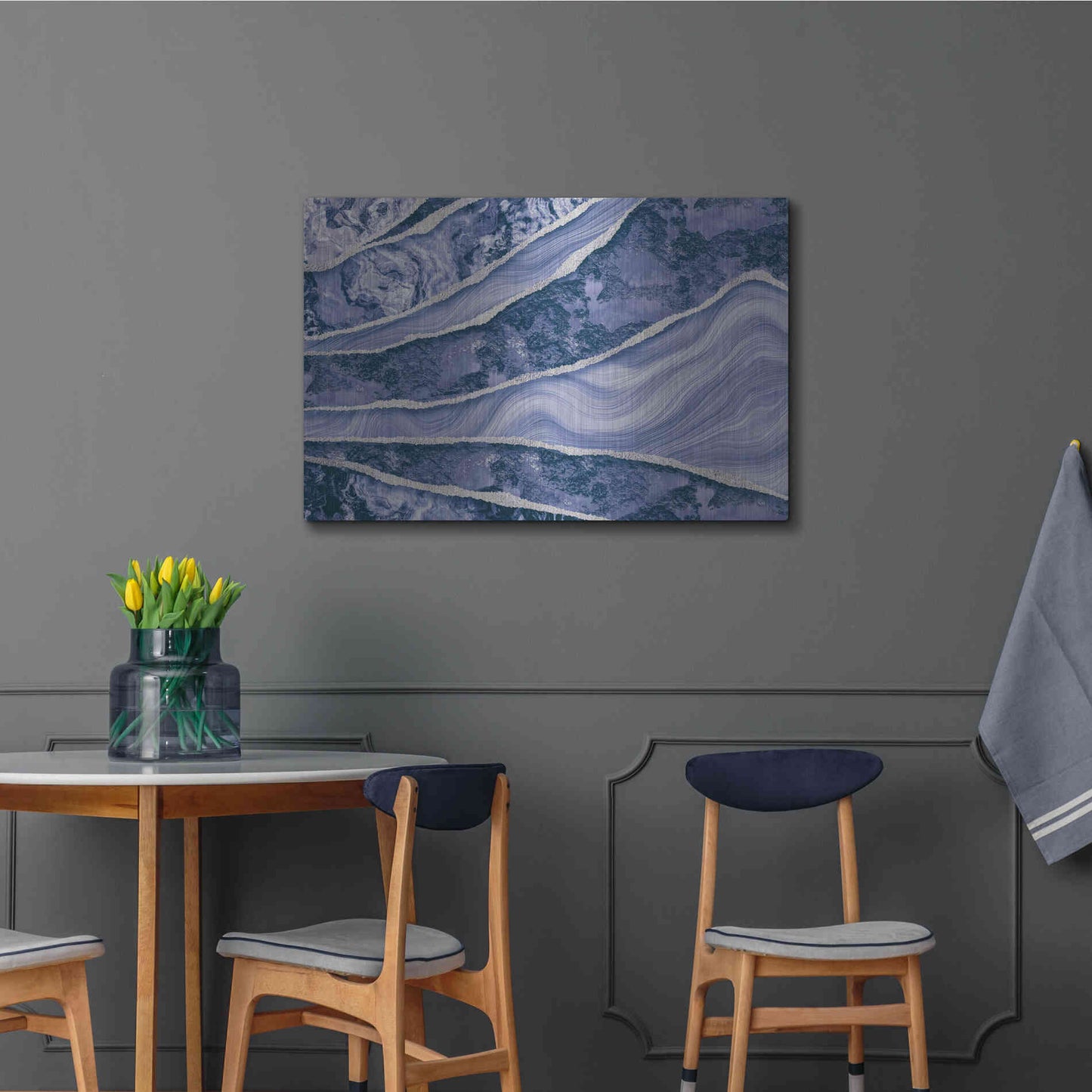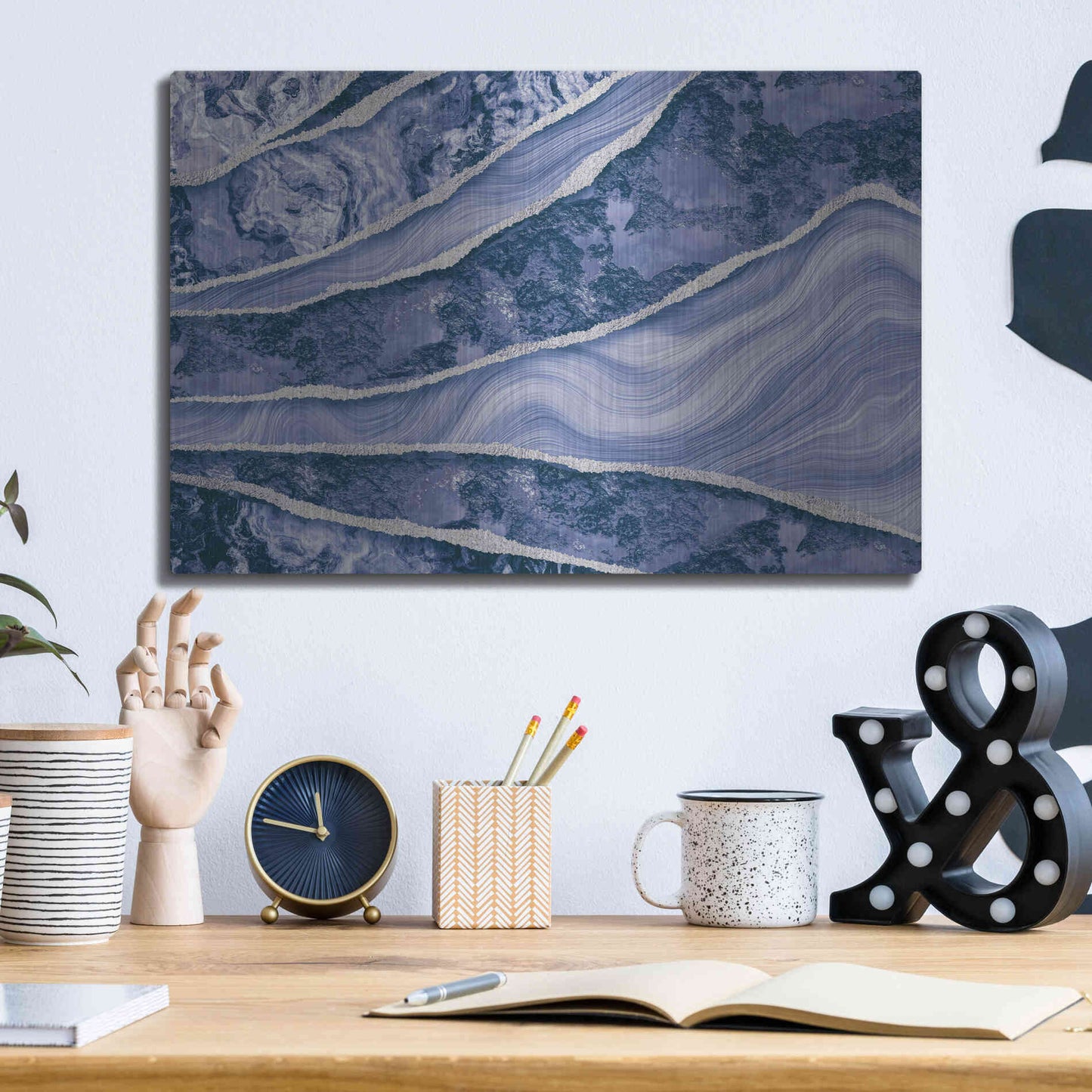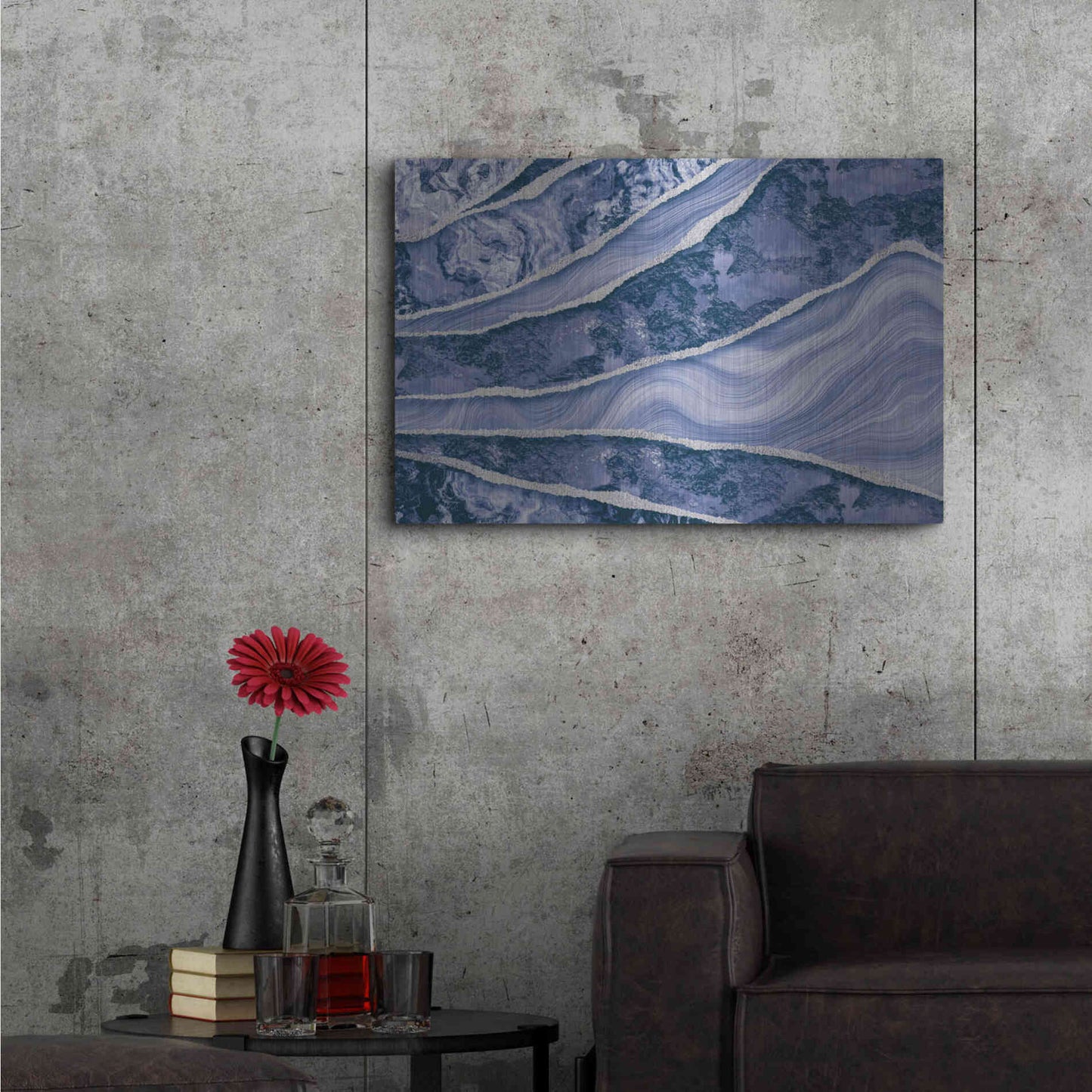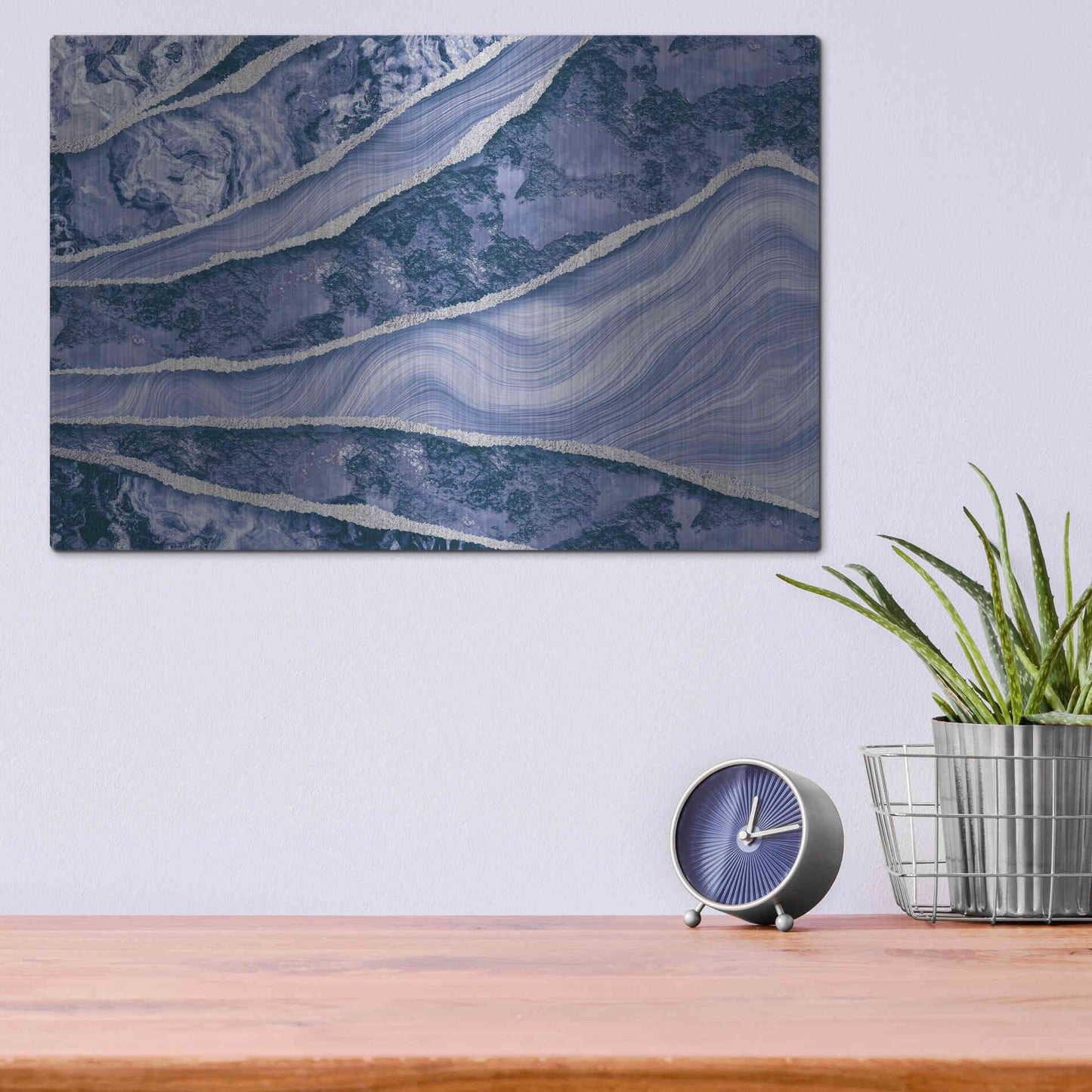 Luxe Metal Art 'Blue Marble And Stone' by Andrea Haase Metal Wall Art