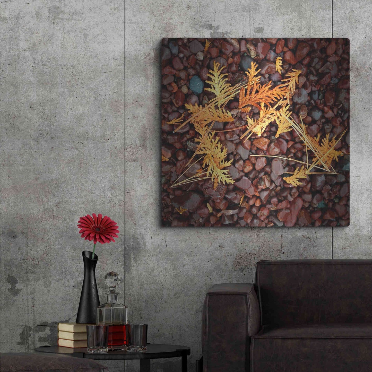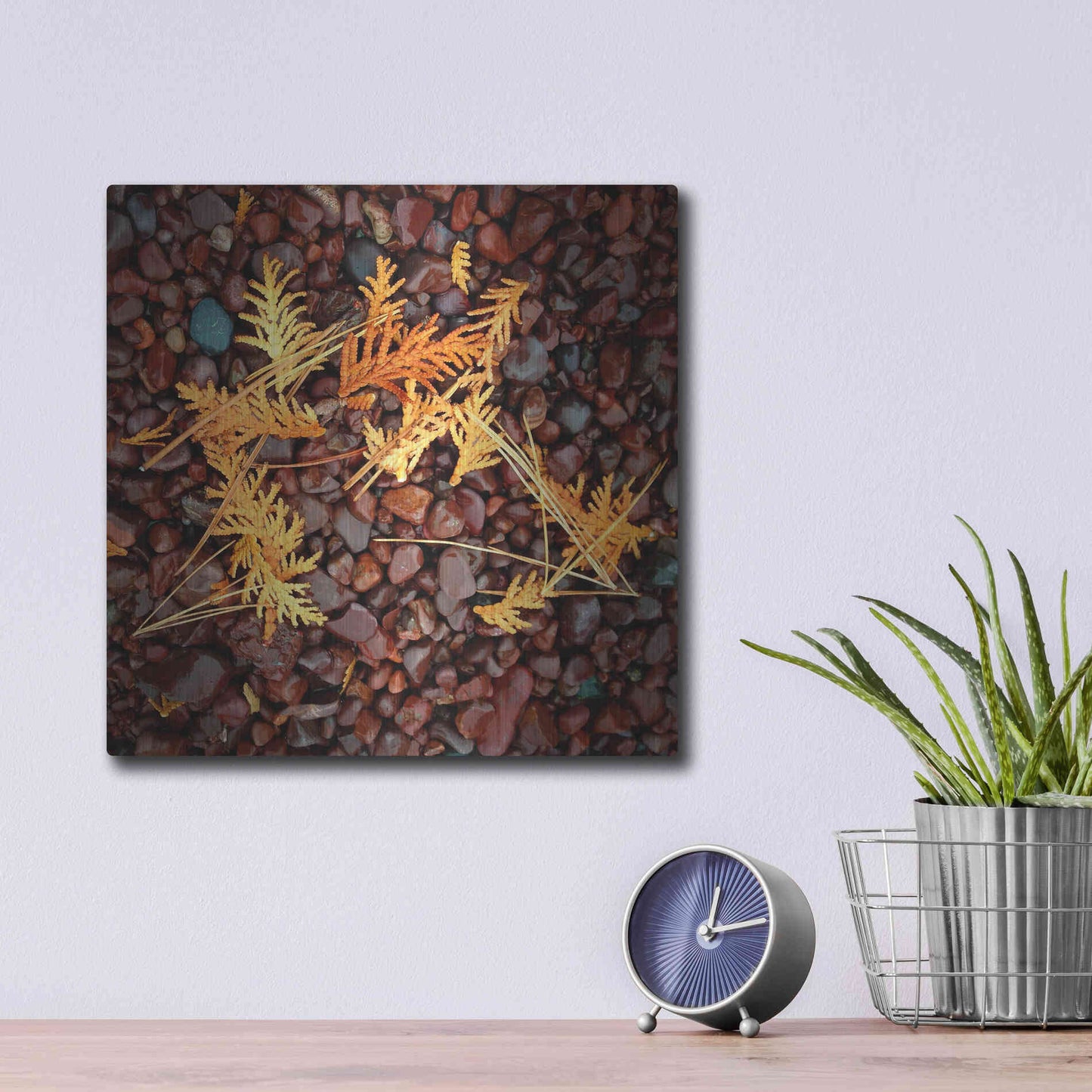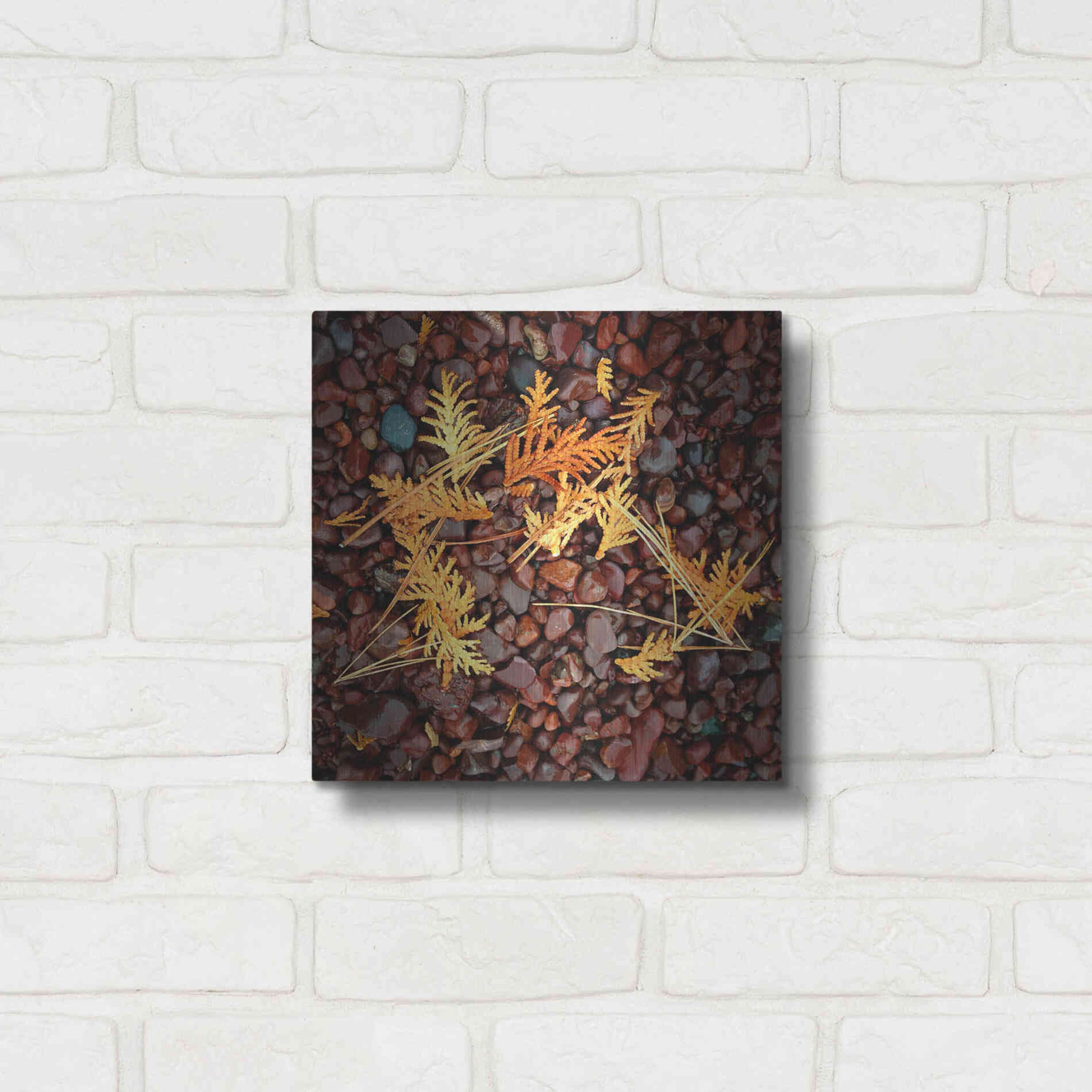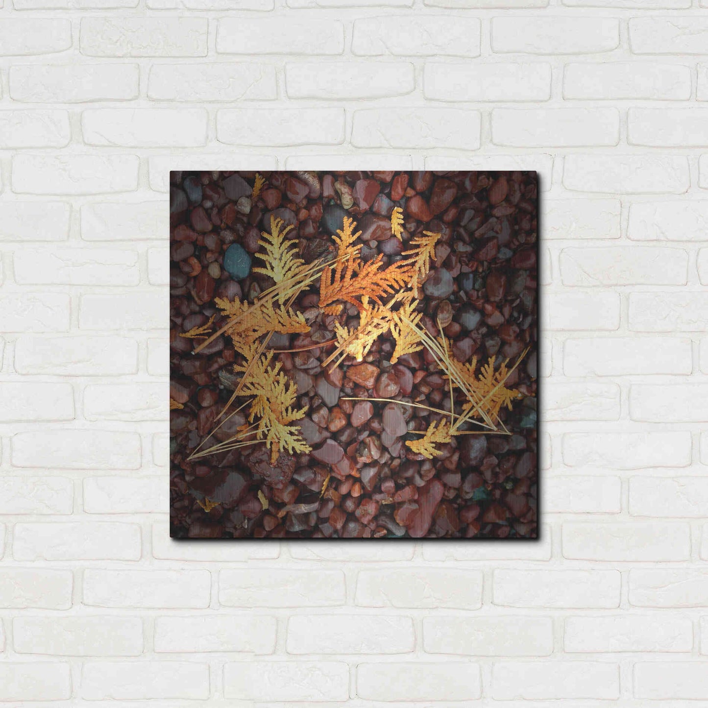'Brown Pebbles with Cedar' by Jan Bell Metal Wall Art