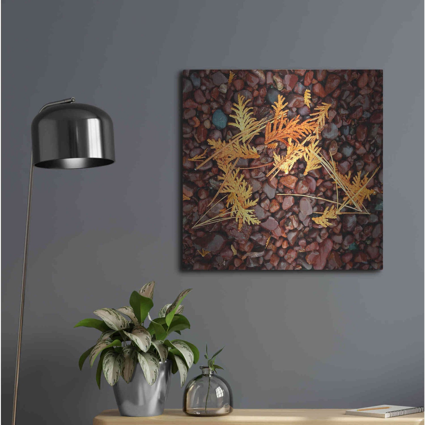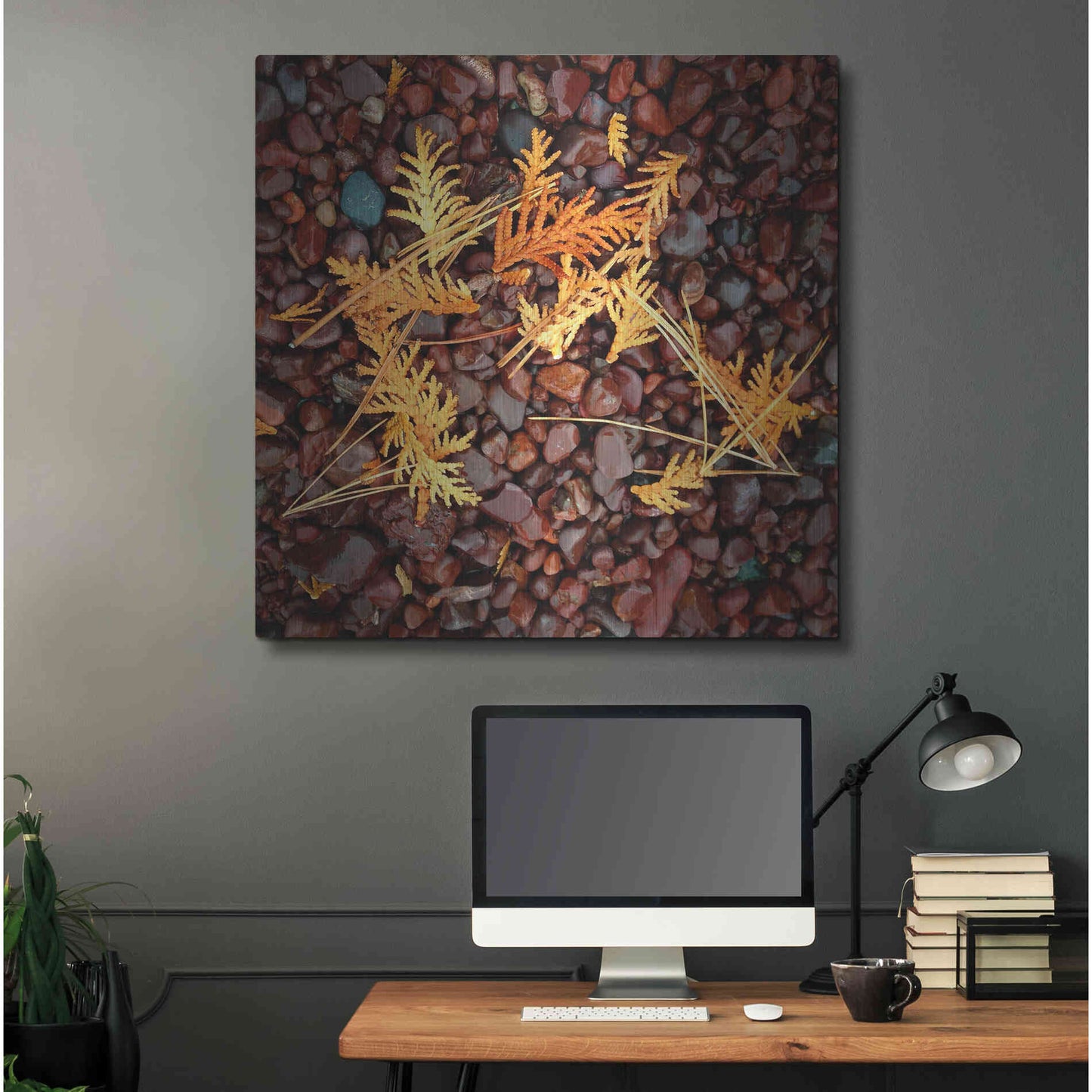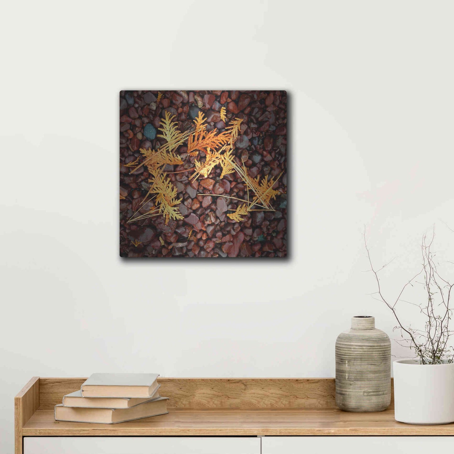 'Brown Pebbles with Cedar' by Jan Bell Metal Wall Art