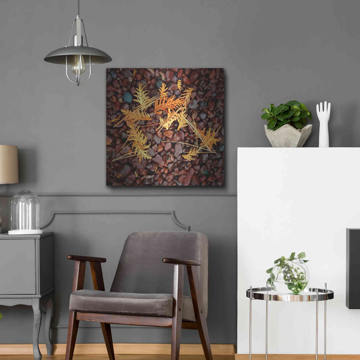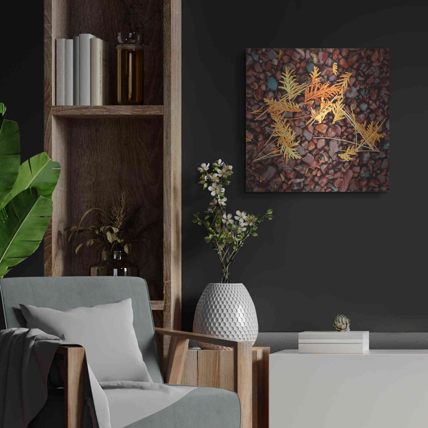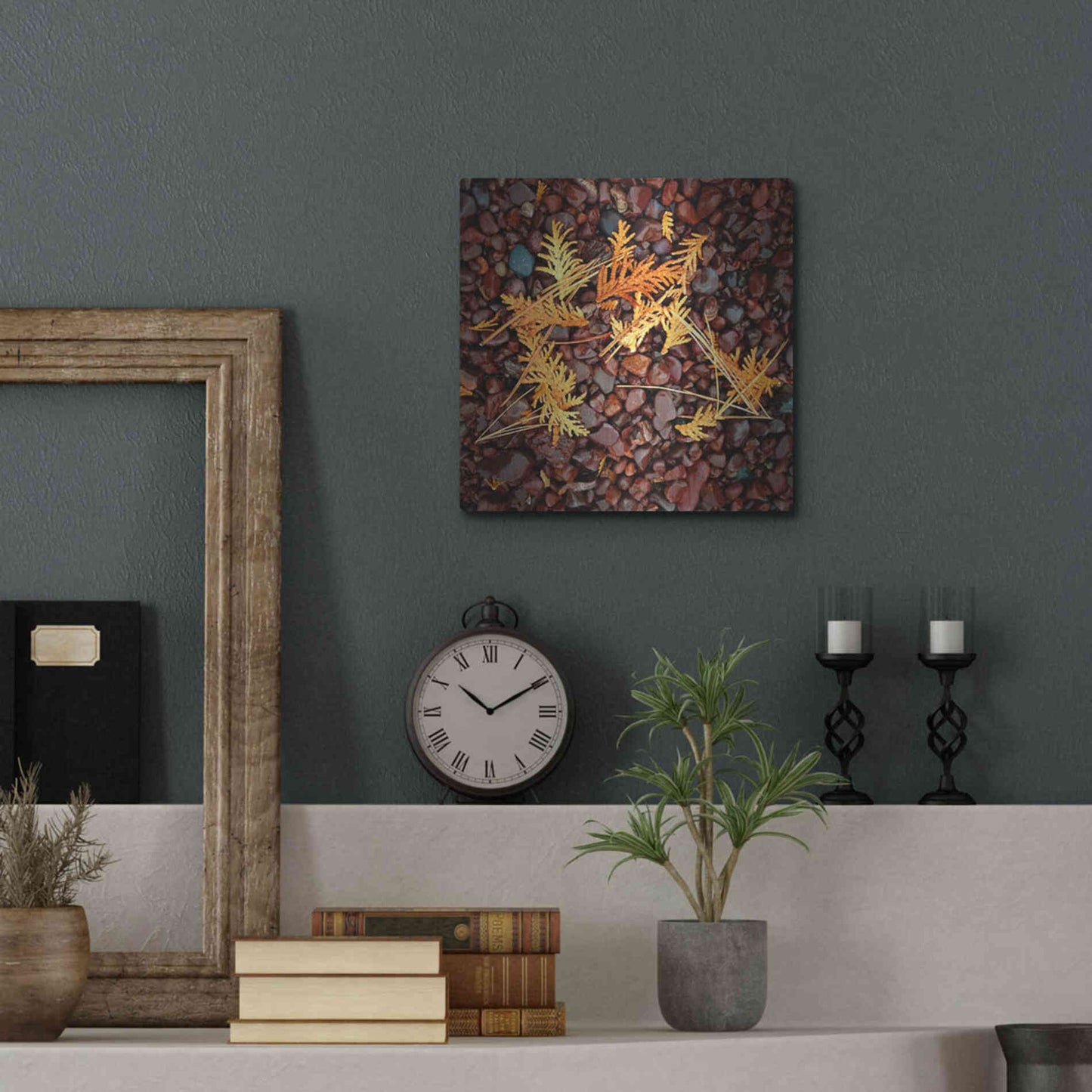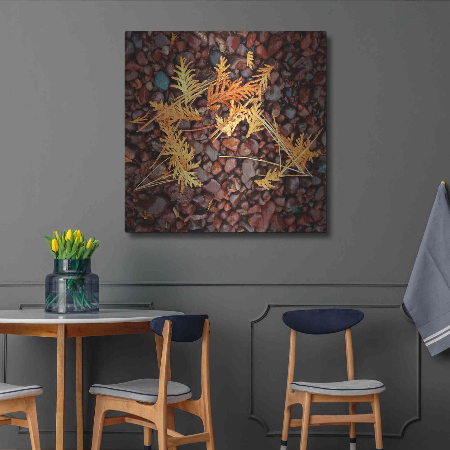 'Brown Pebbles with Cedar' by Jan Bell Metal Wall Art
