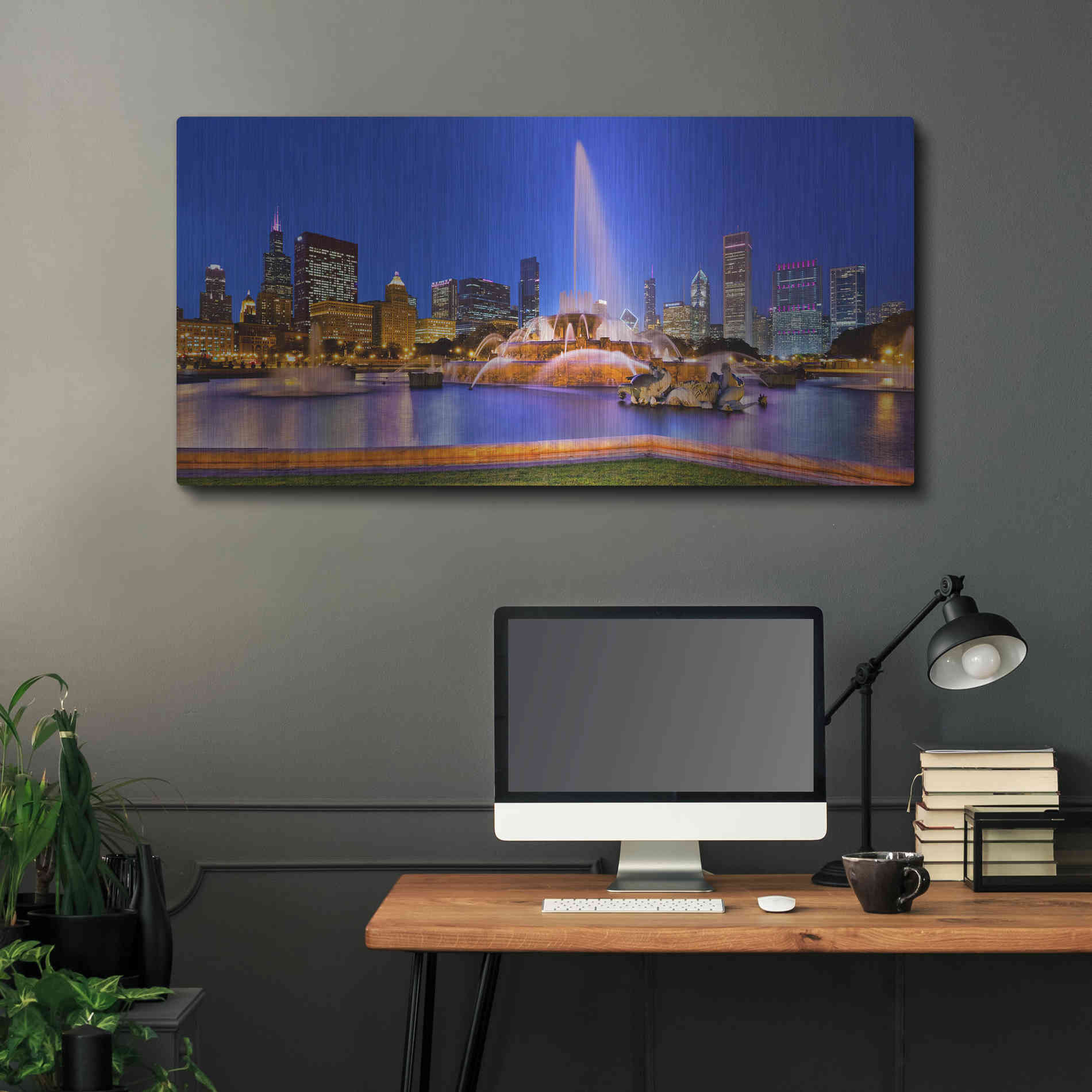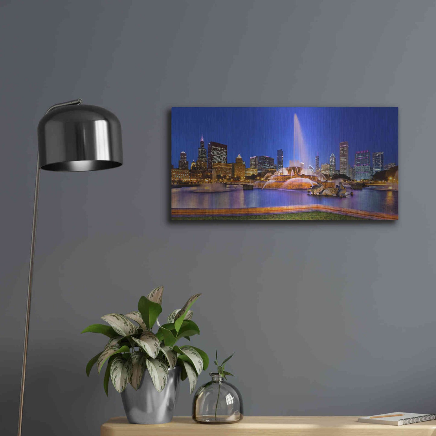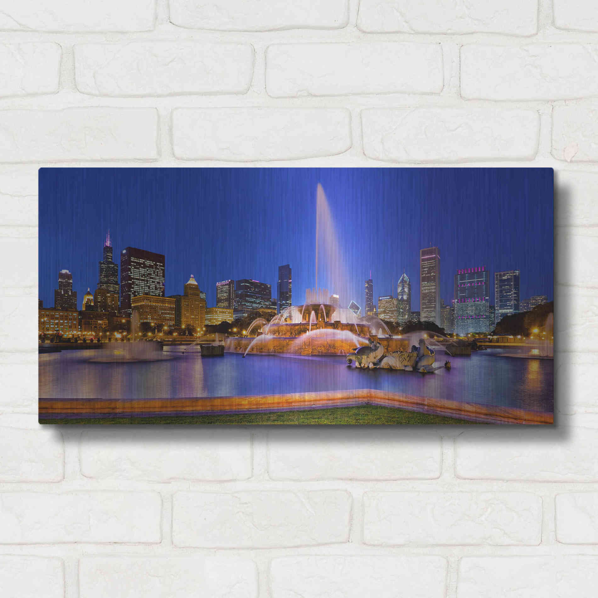 Luxe Metal Art 'Buckingham Fountain Pano,', Metal Wall Art Featuring the Buckingham Fountain at night with the Chicago skyline behind it. Malvin was born in the suburbs of Chicago, but found his inspiration in Boulder Colorado where he studied Geogr