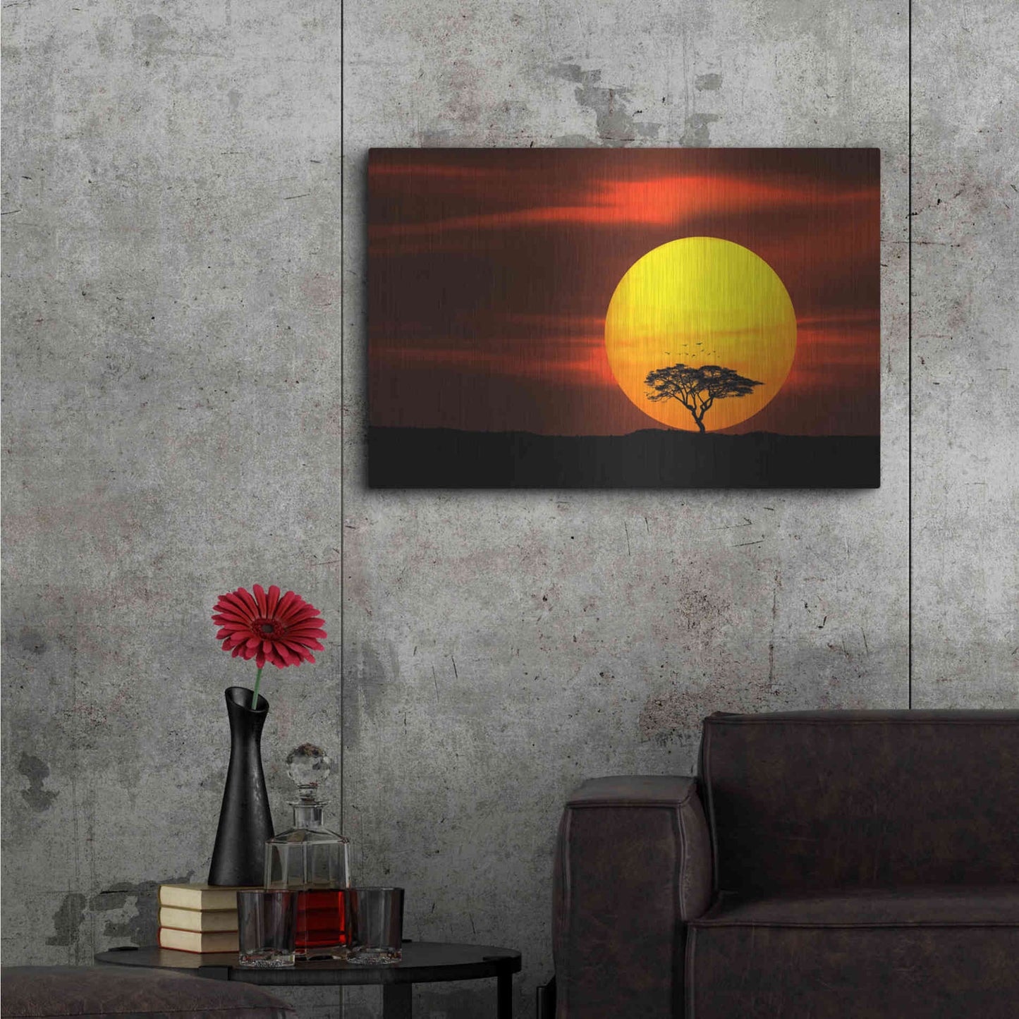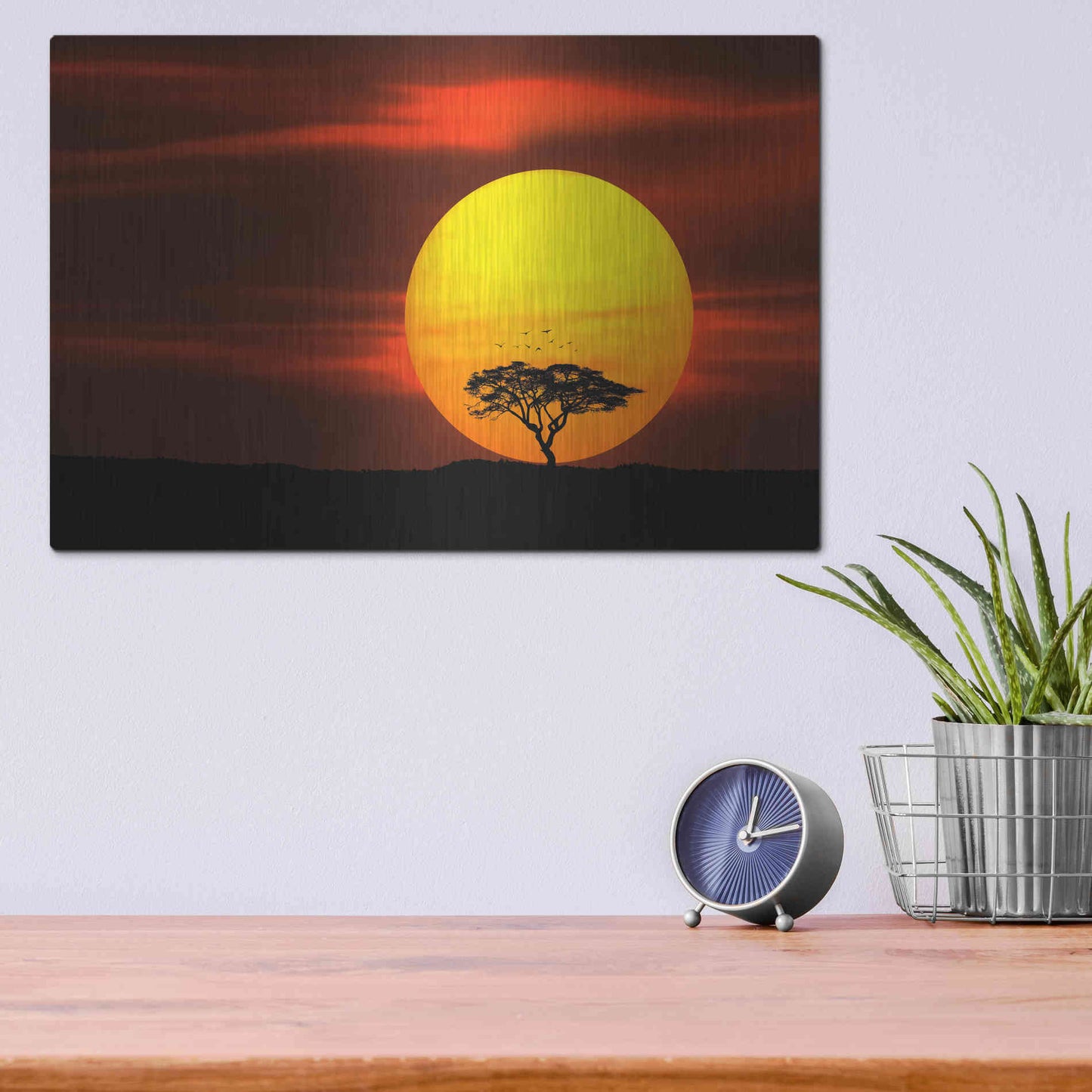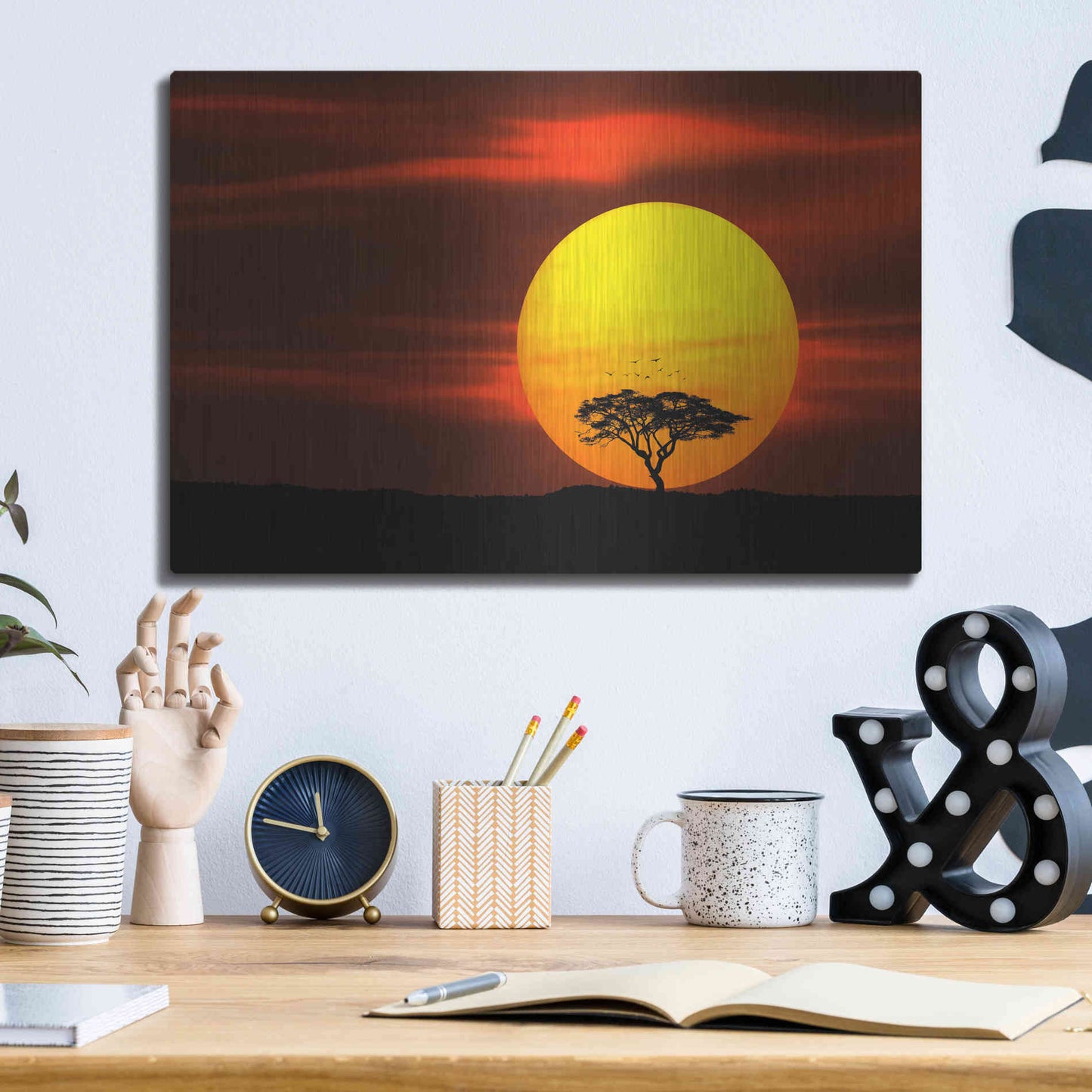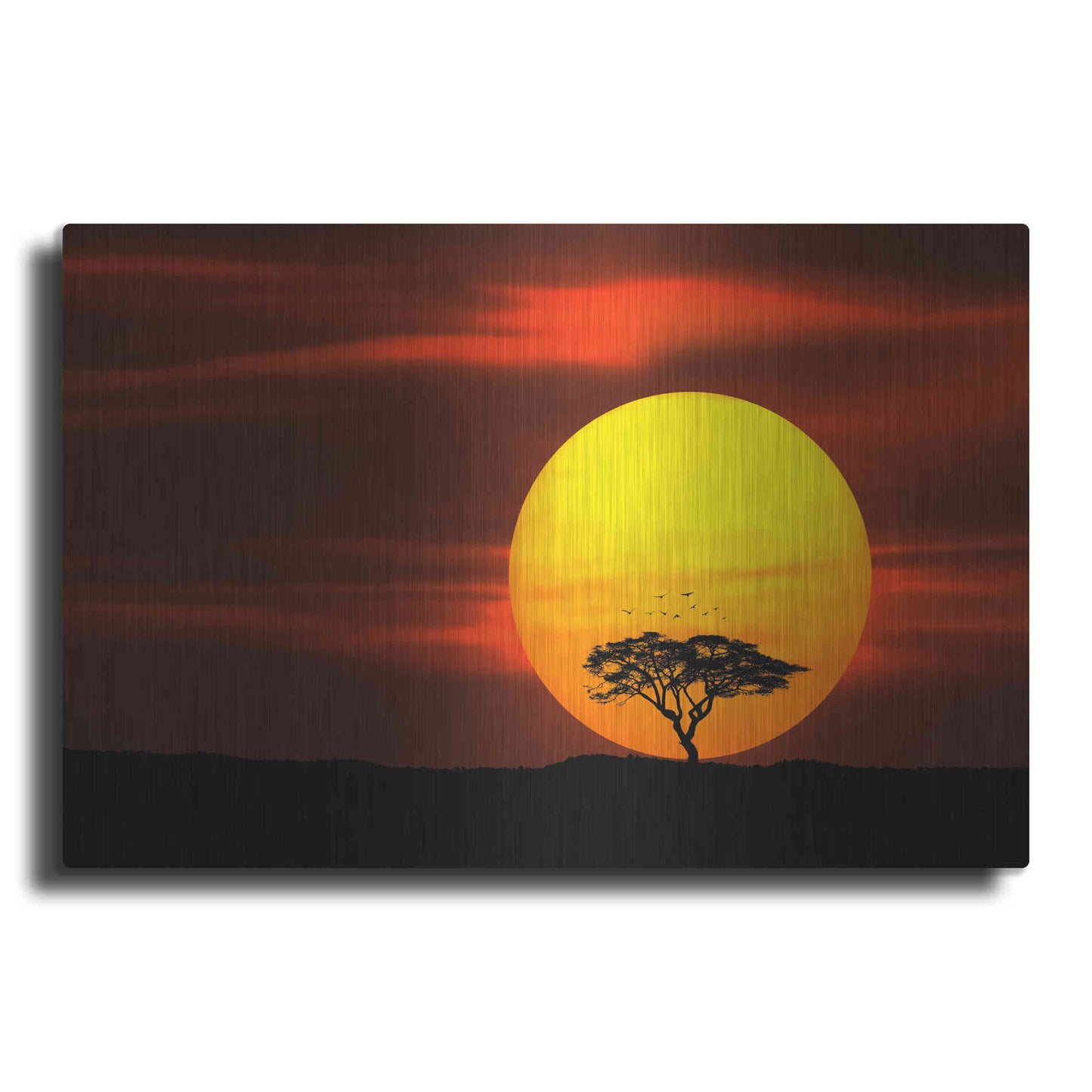 Luxe Metal Art 'Circle of Life', Metal Wall Art Featuring a beautiful composition of a tree against a sunset.