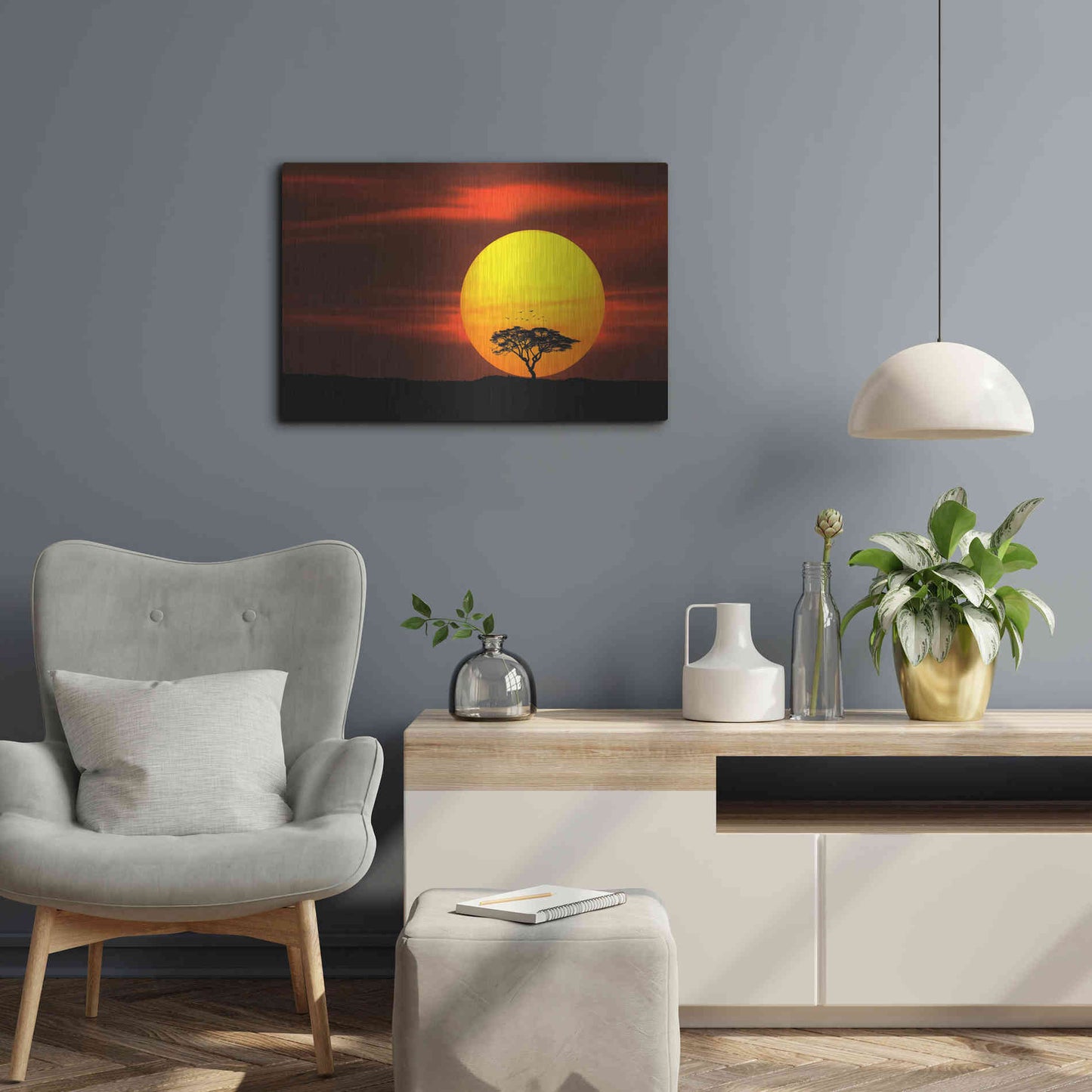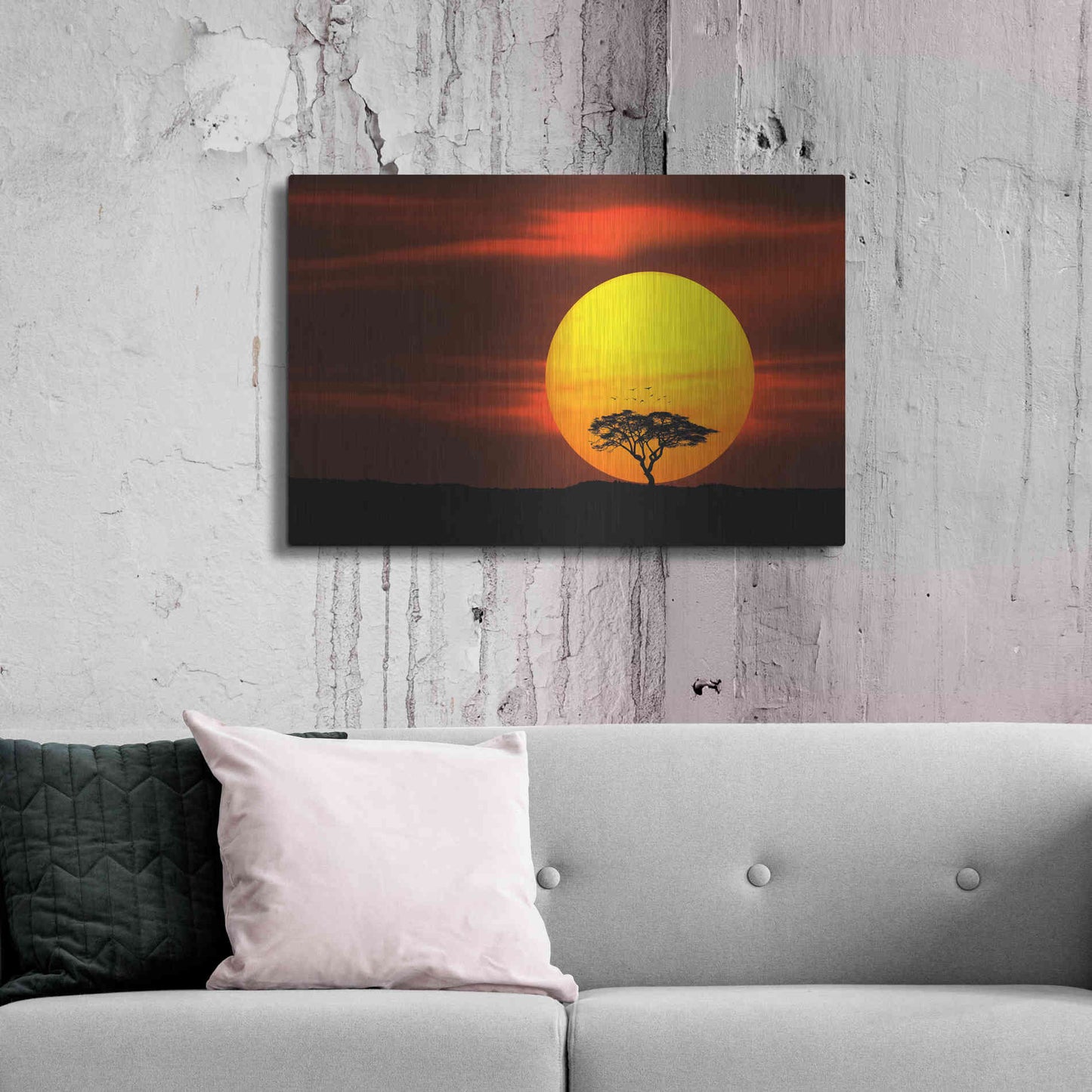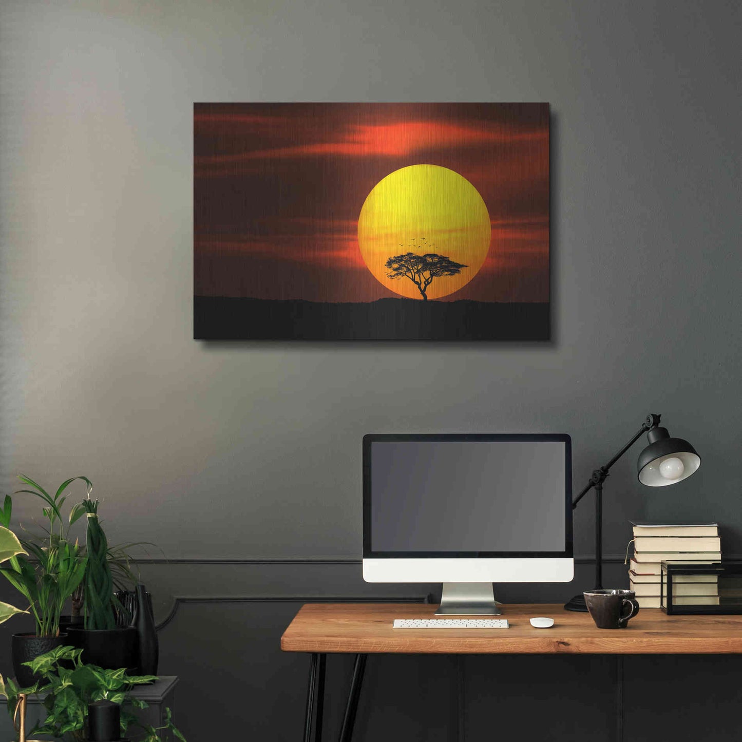 Luxe Metal Art 'Circle of Life', Metal Wall Art Featuring a beautiful composition of a tree against a sunset.