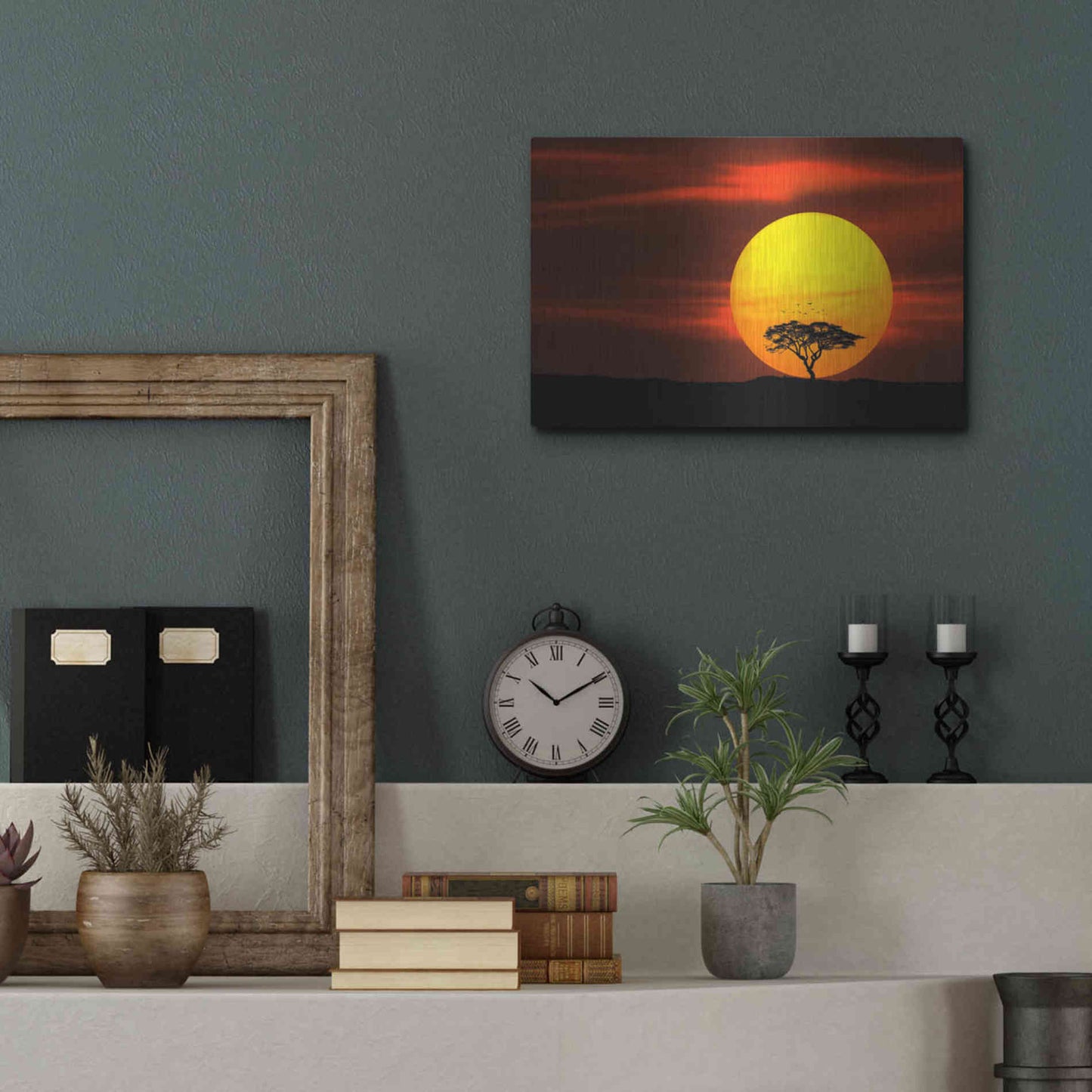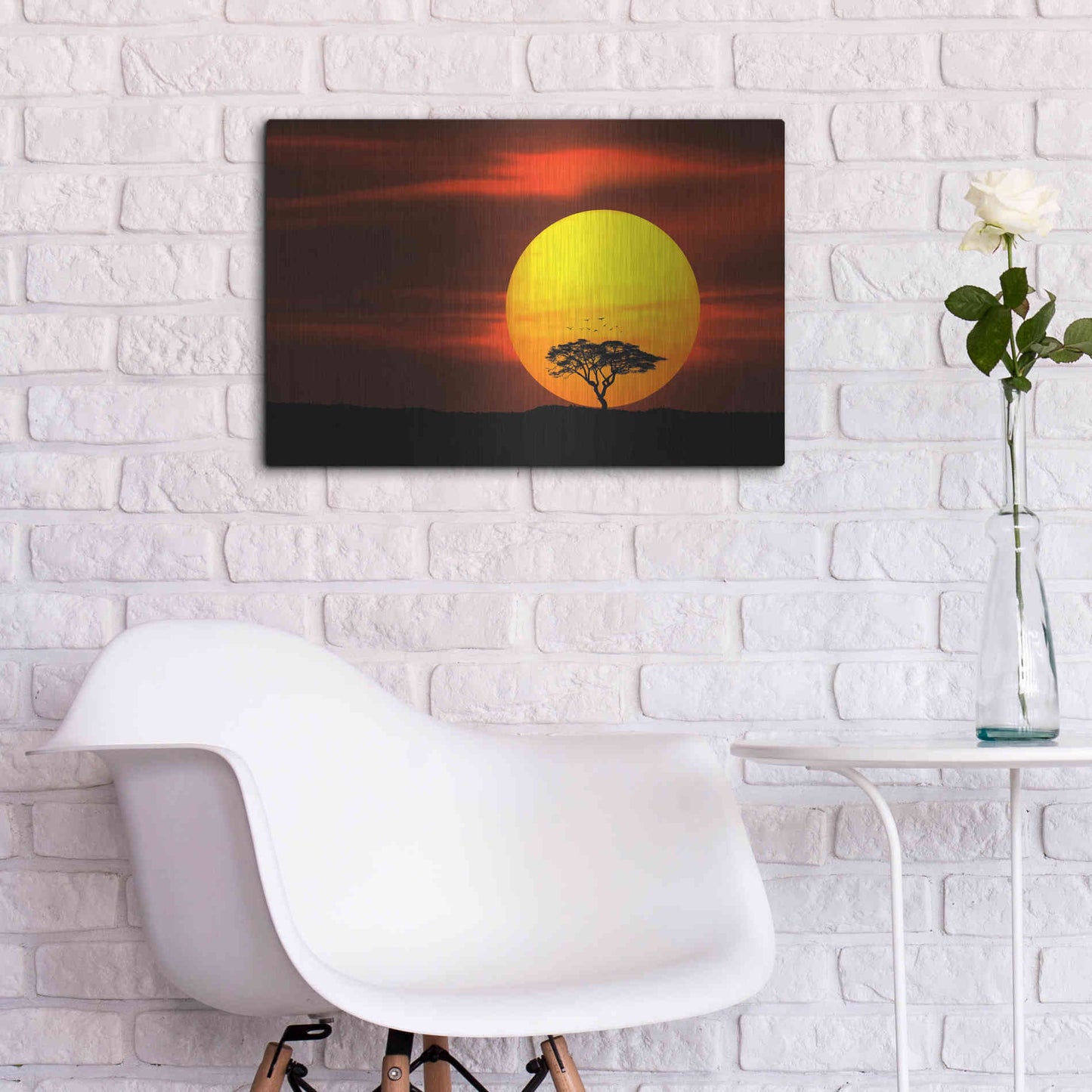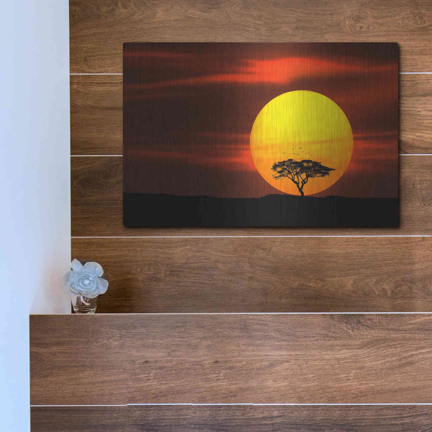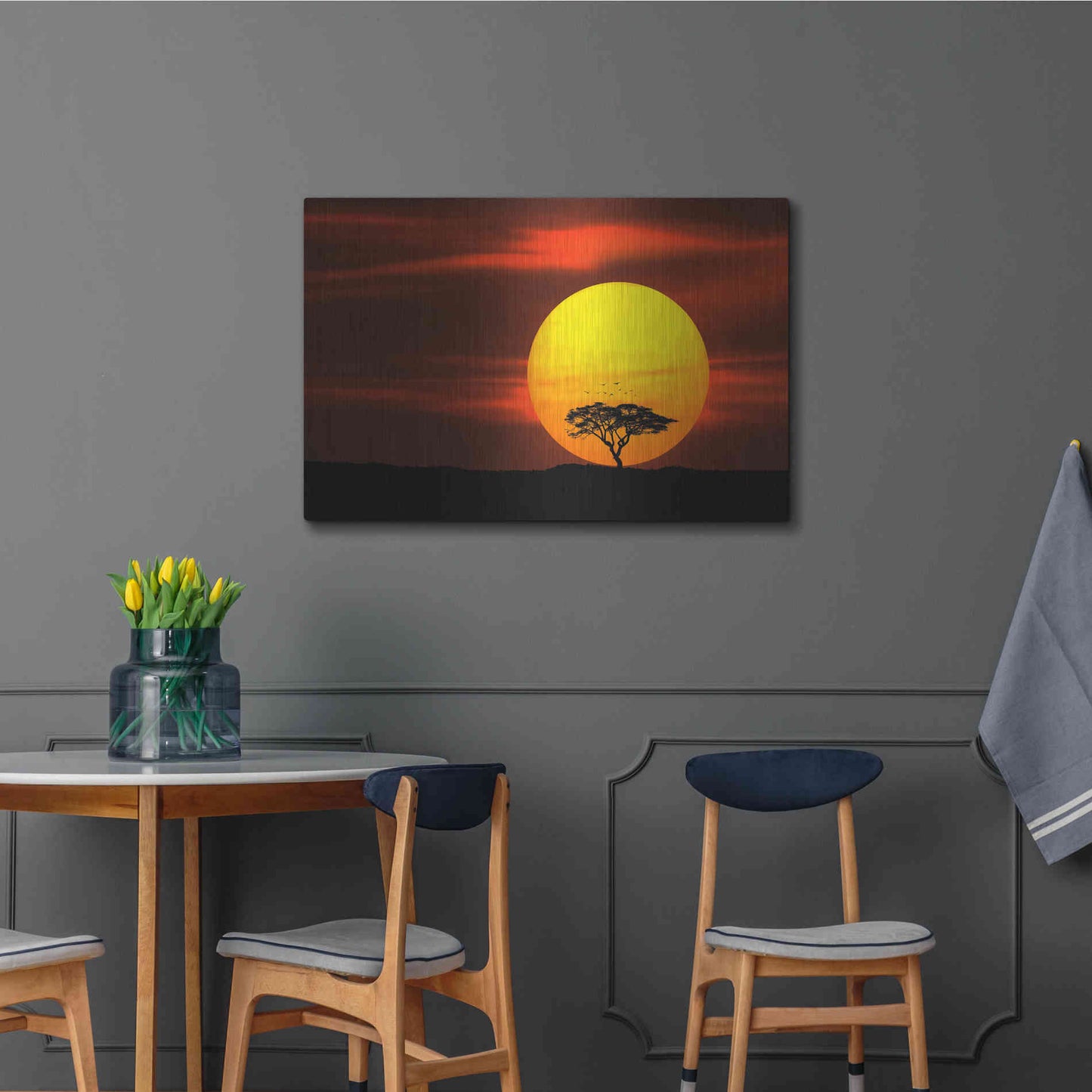 Luxe Metal Art 'Circle of Life', Metal Wall Art Featuring a beautiful composition of a tree against a sunset.