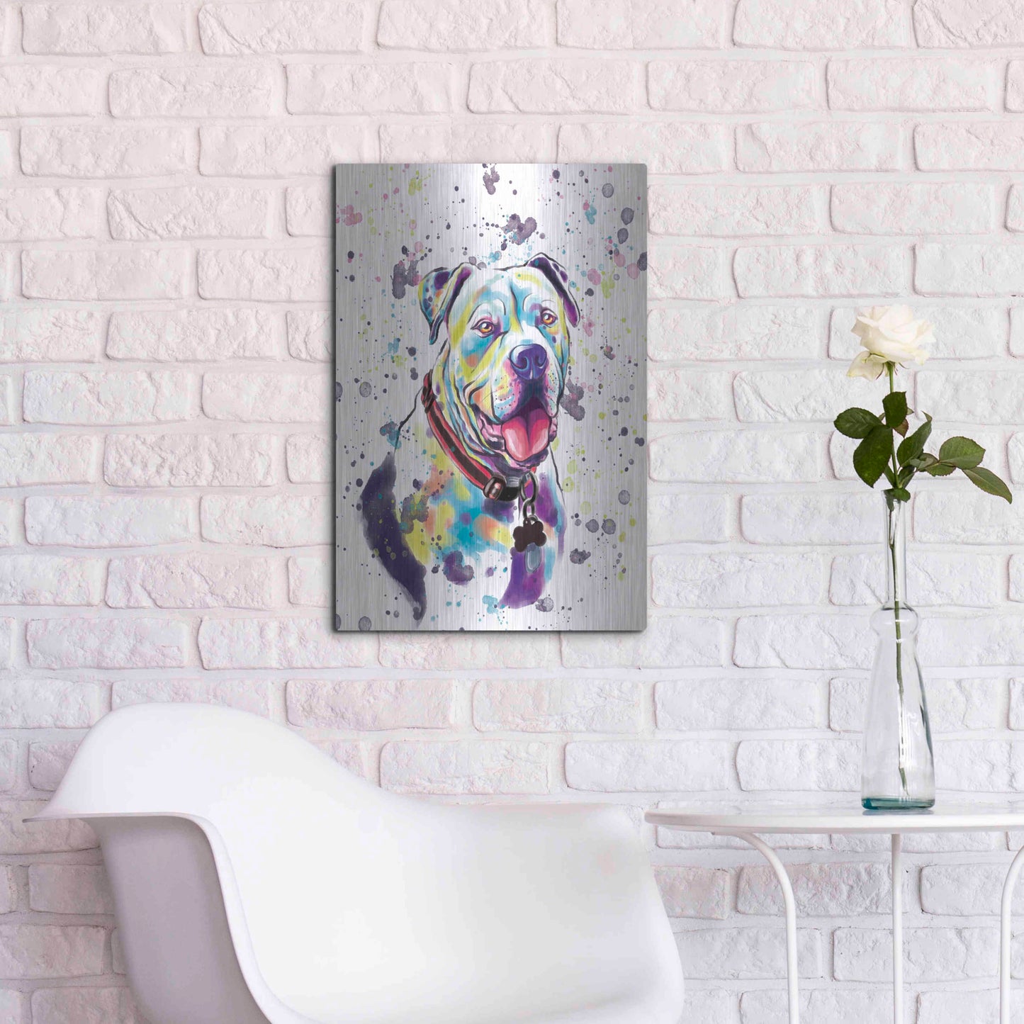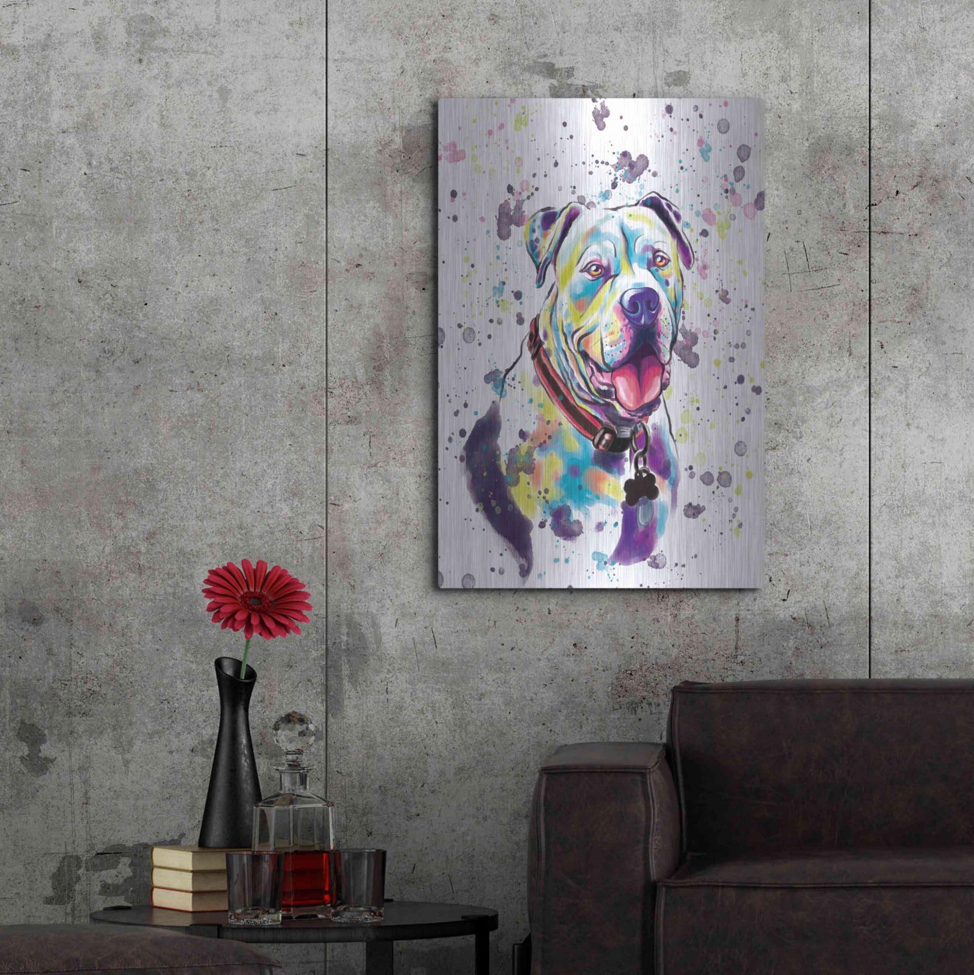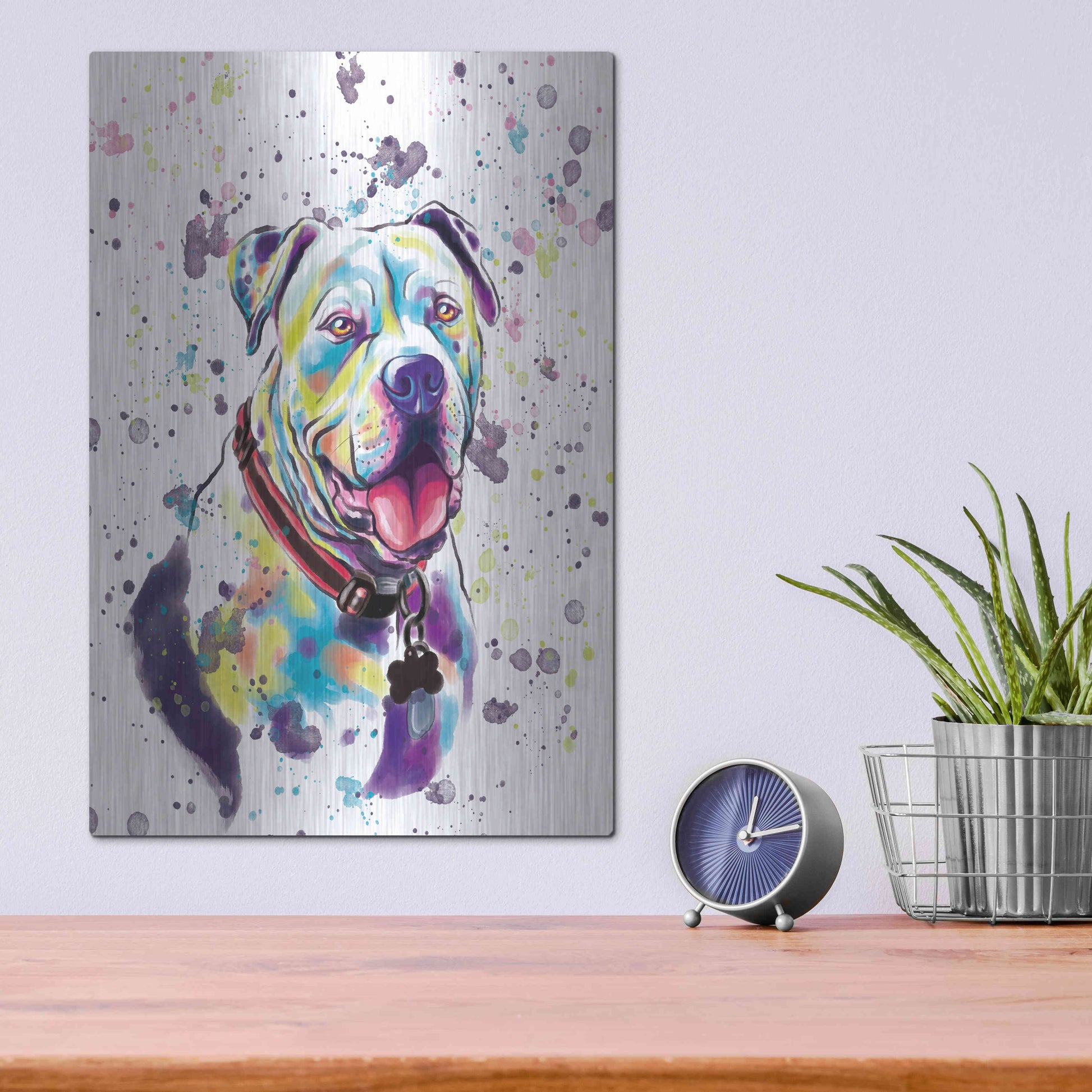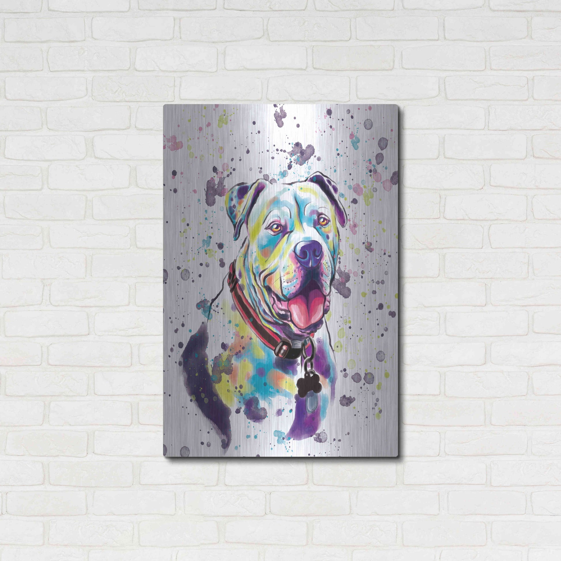 'Colorful Watercolor American Bulldog 2' by Furbaby Affiliates, Metal Wall Art