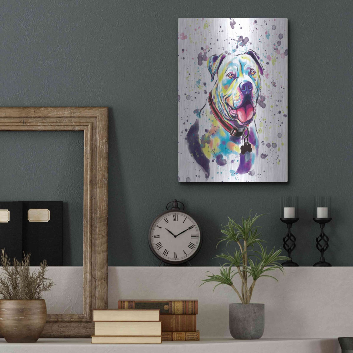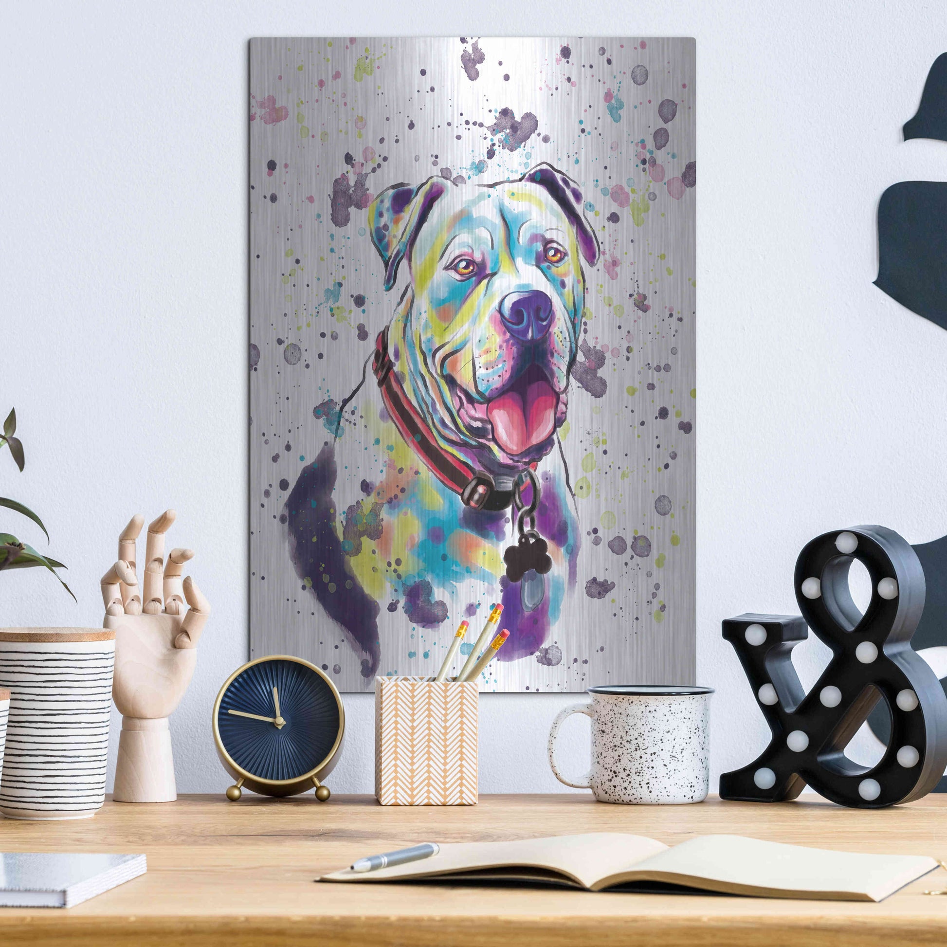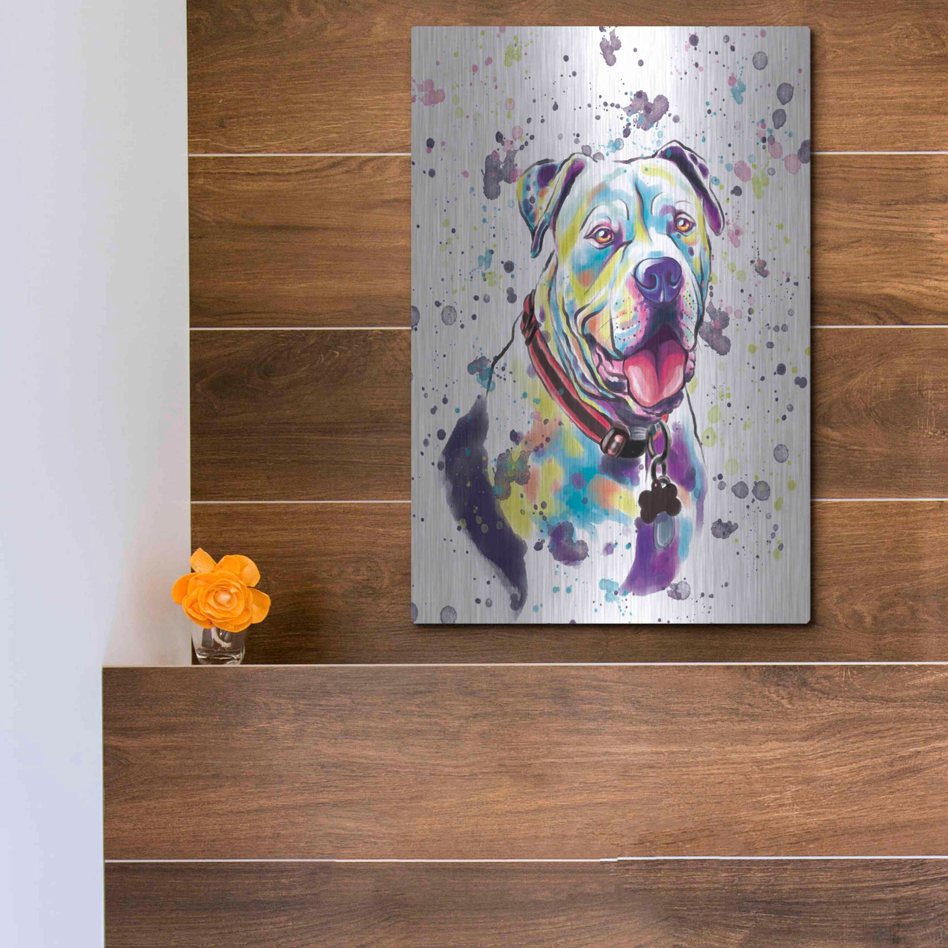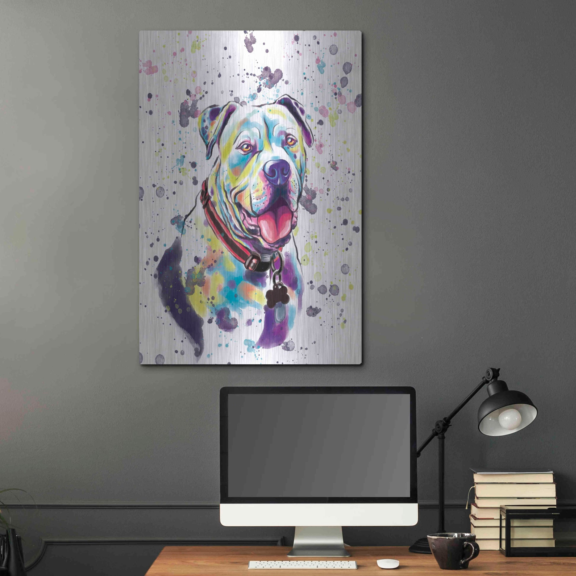 'Colorful Watercolor American Bulldog 2' by Furbaby Affiliates, Metal Wall Art