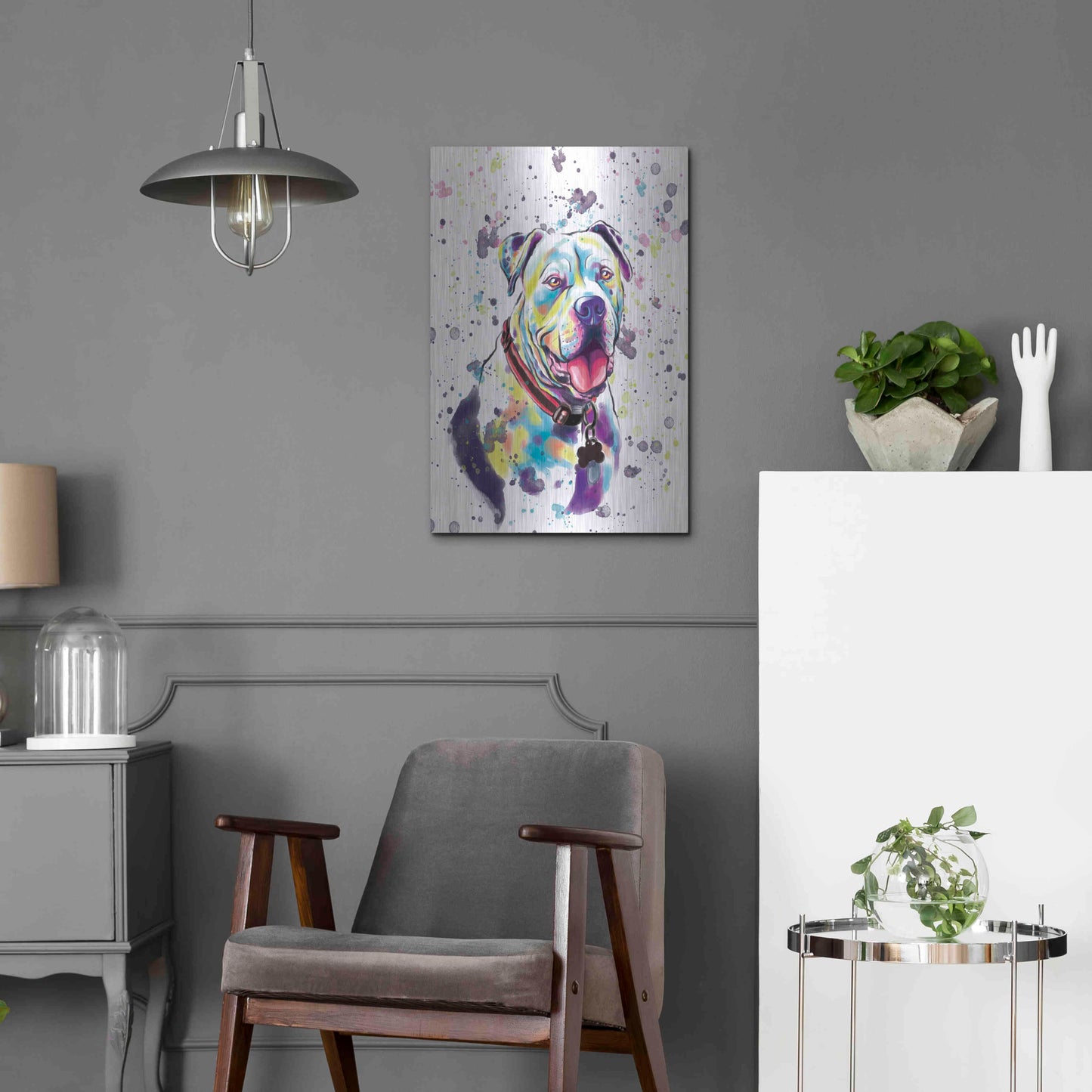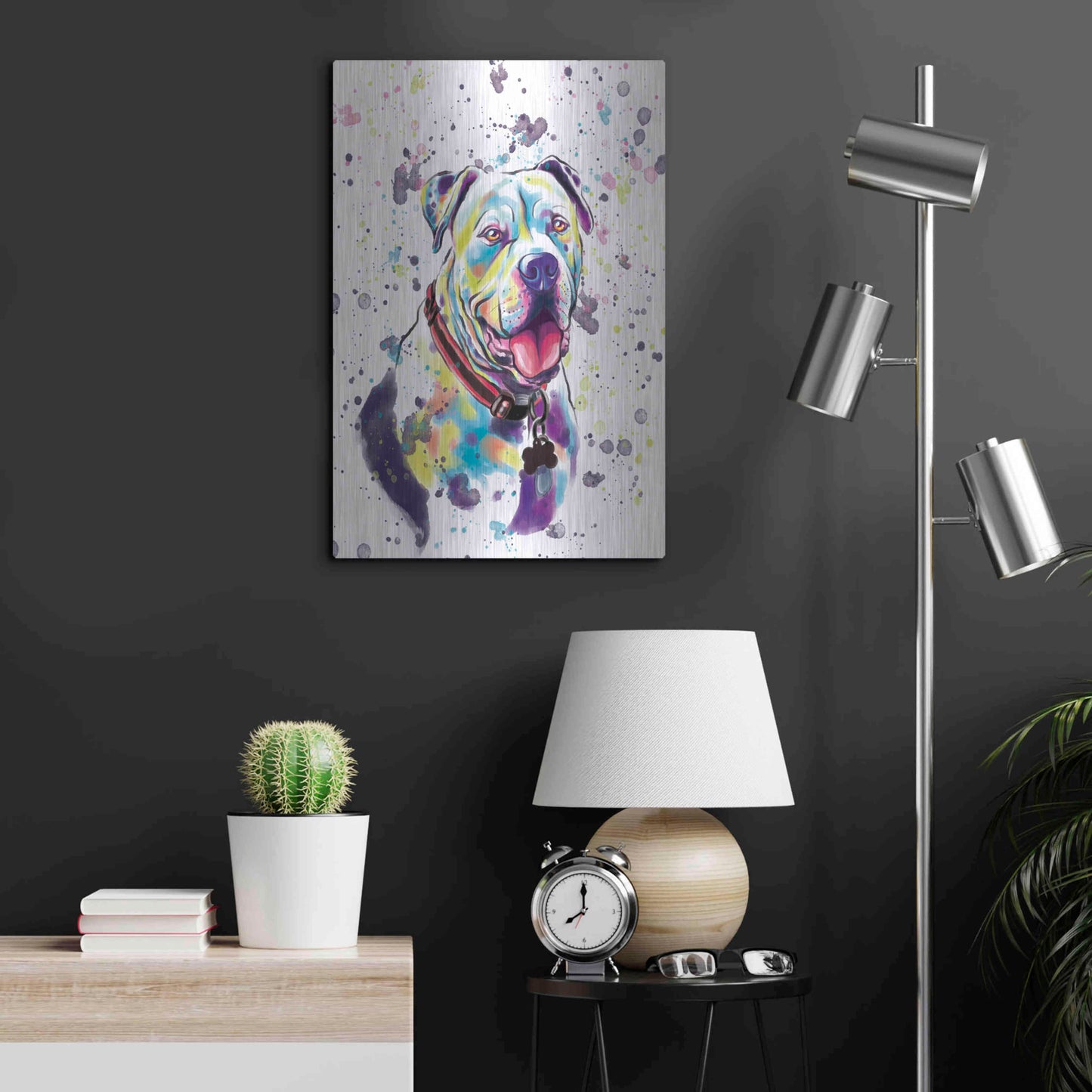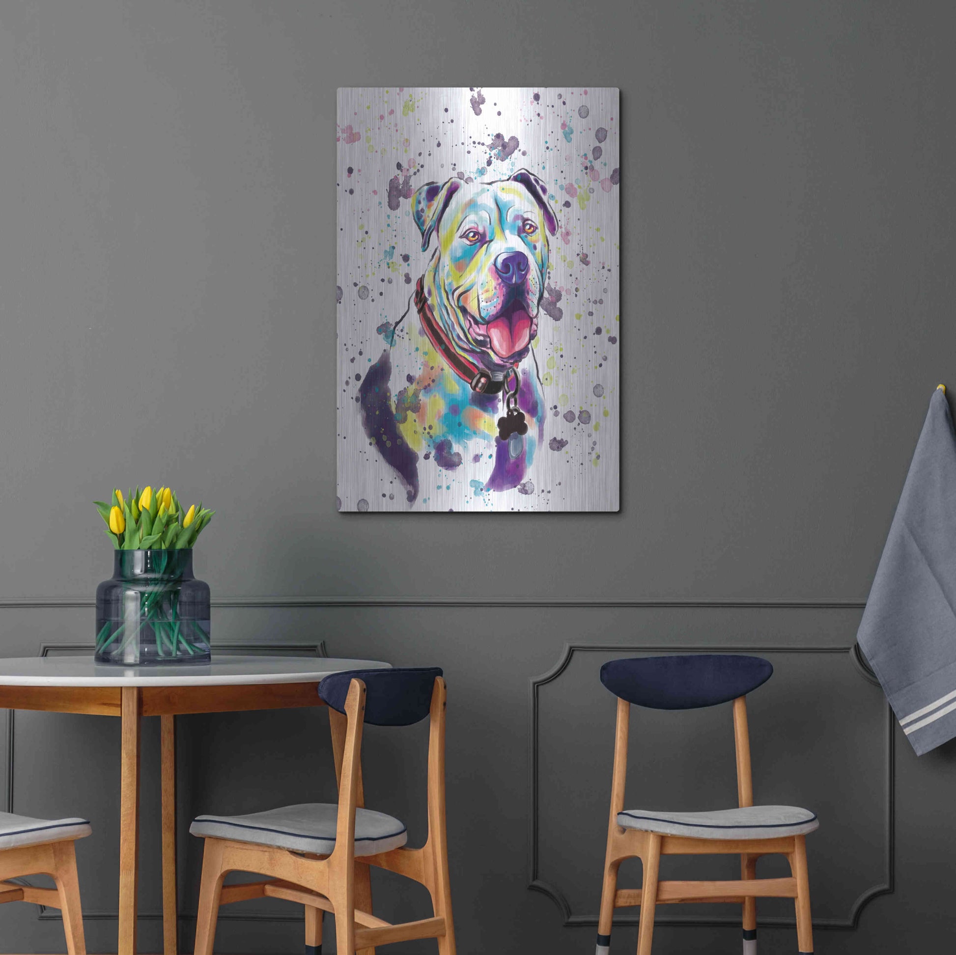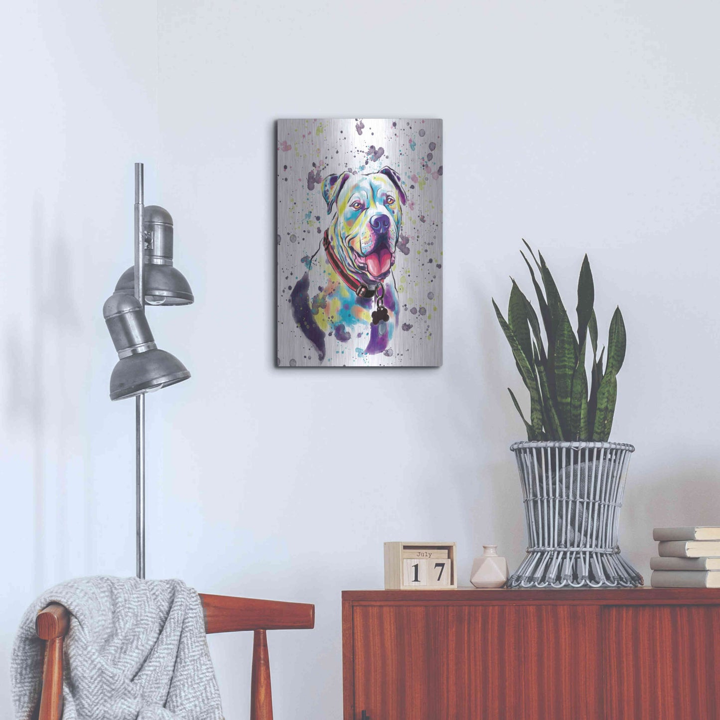 'Colorful Watercolor American Bulldog 2' by Furbaby Affiliates, Metal Wall Art