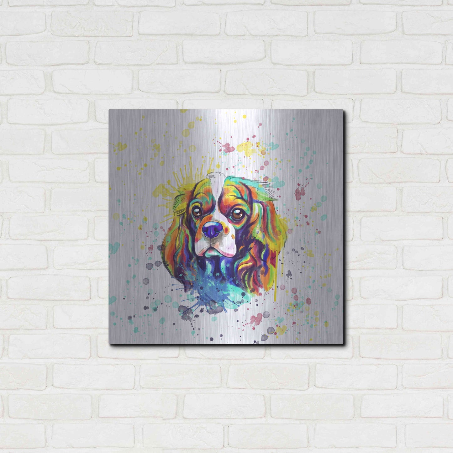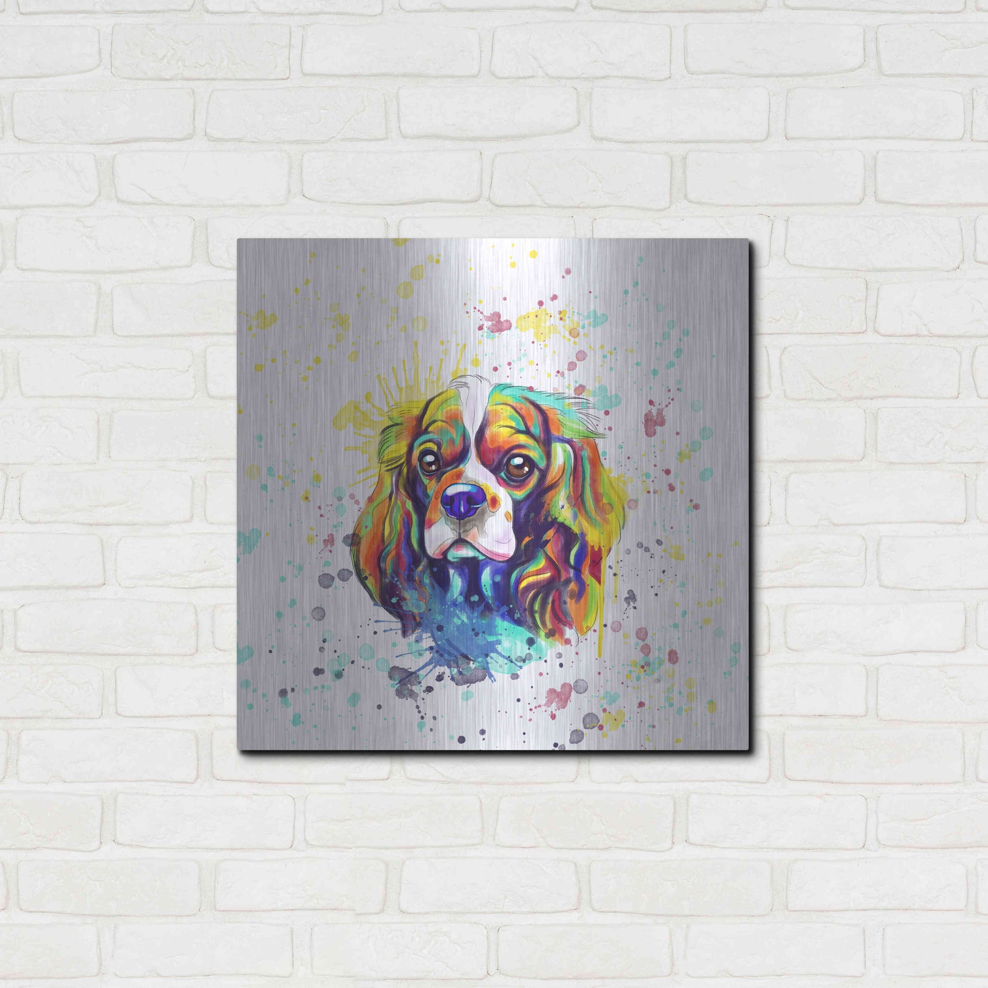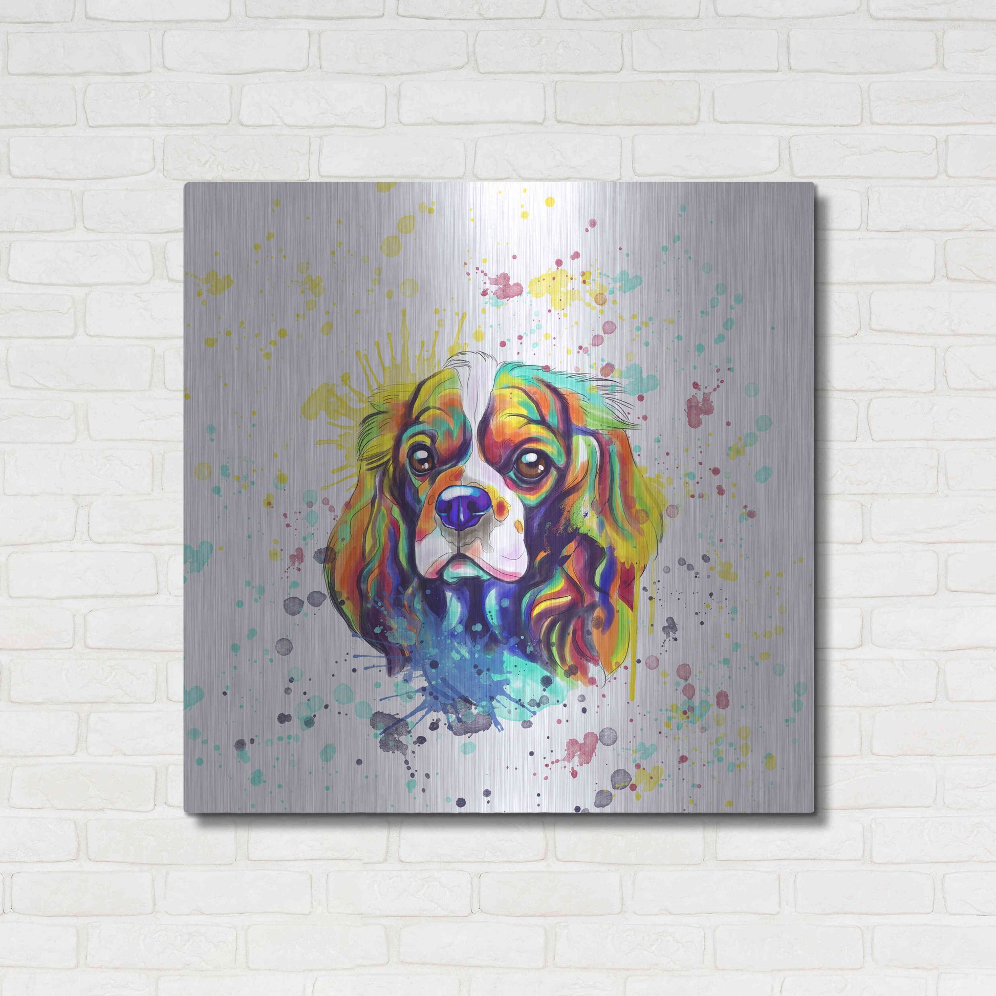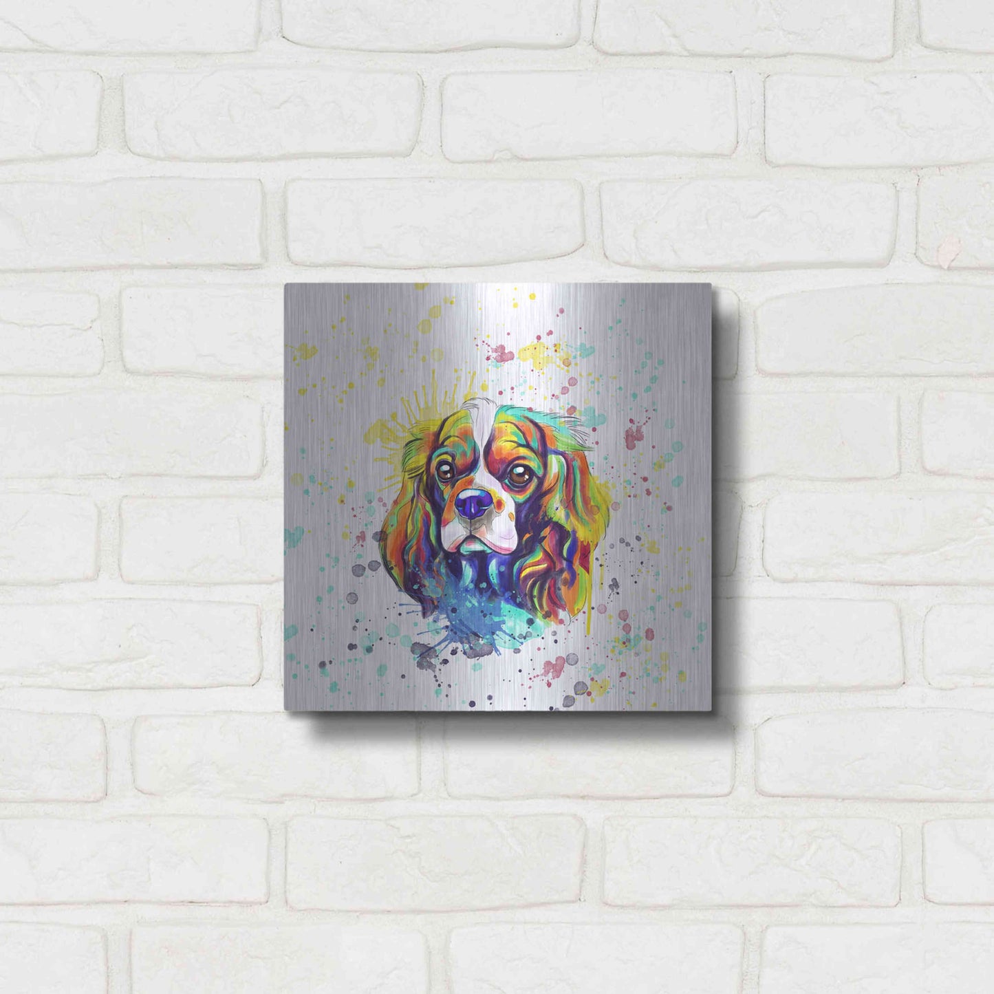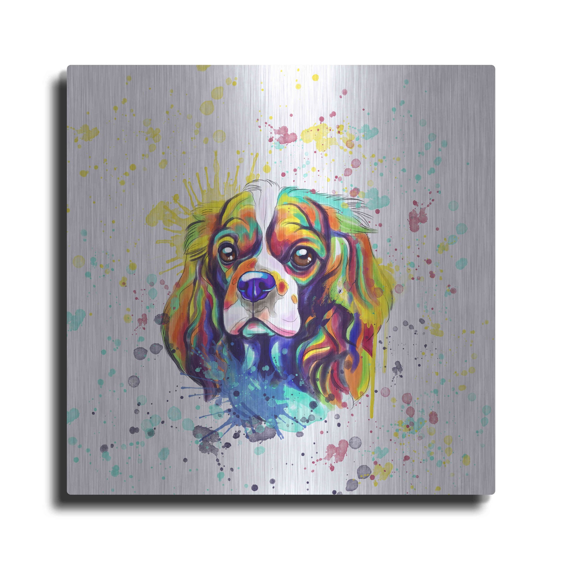 'Colorful Watercolor Cavalier King Charles Spaniel' by Furbaby Affiliates, Metal Wall Art