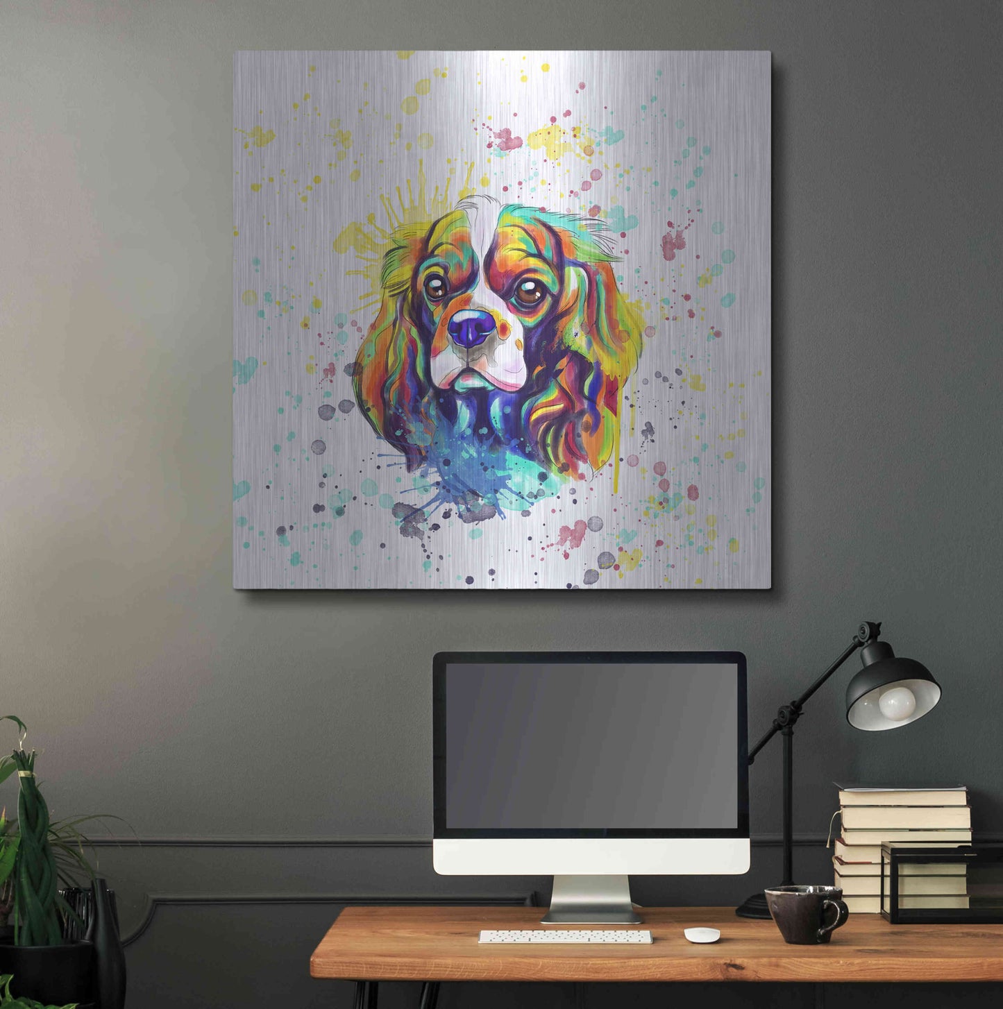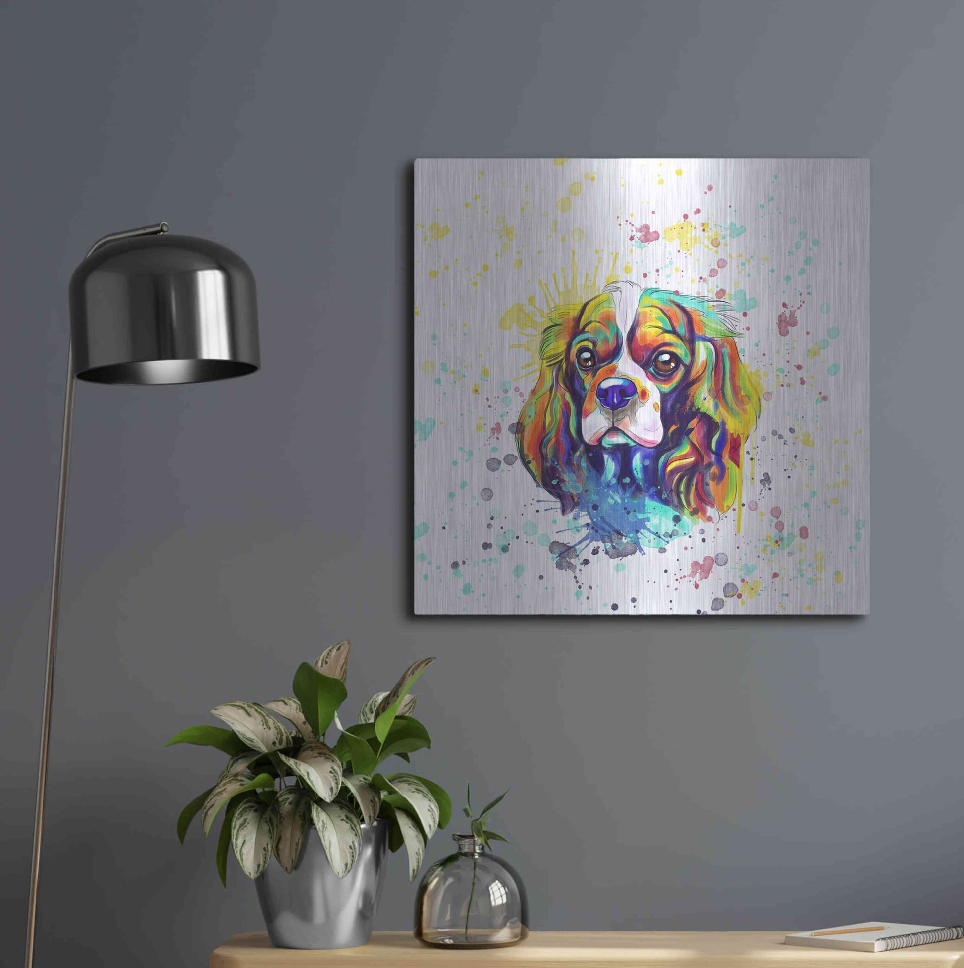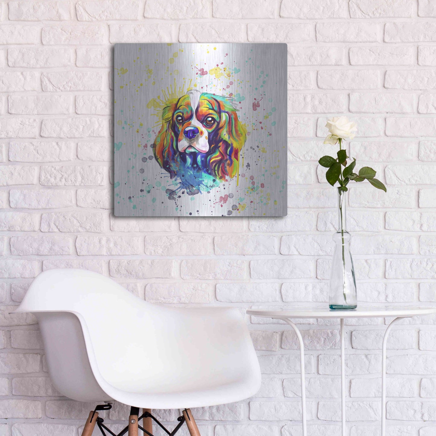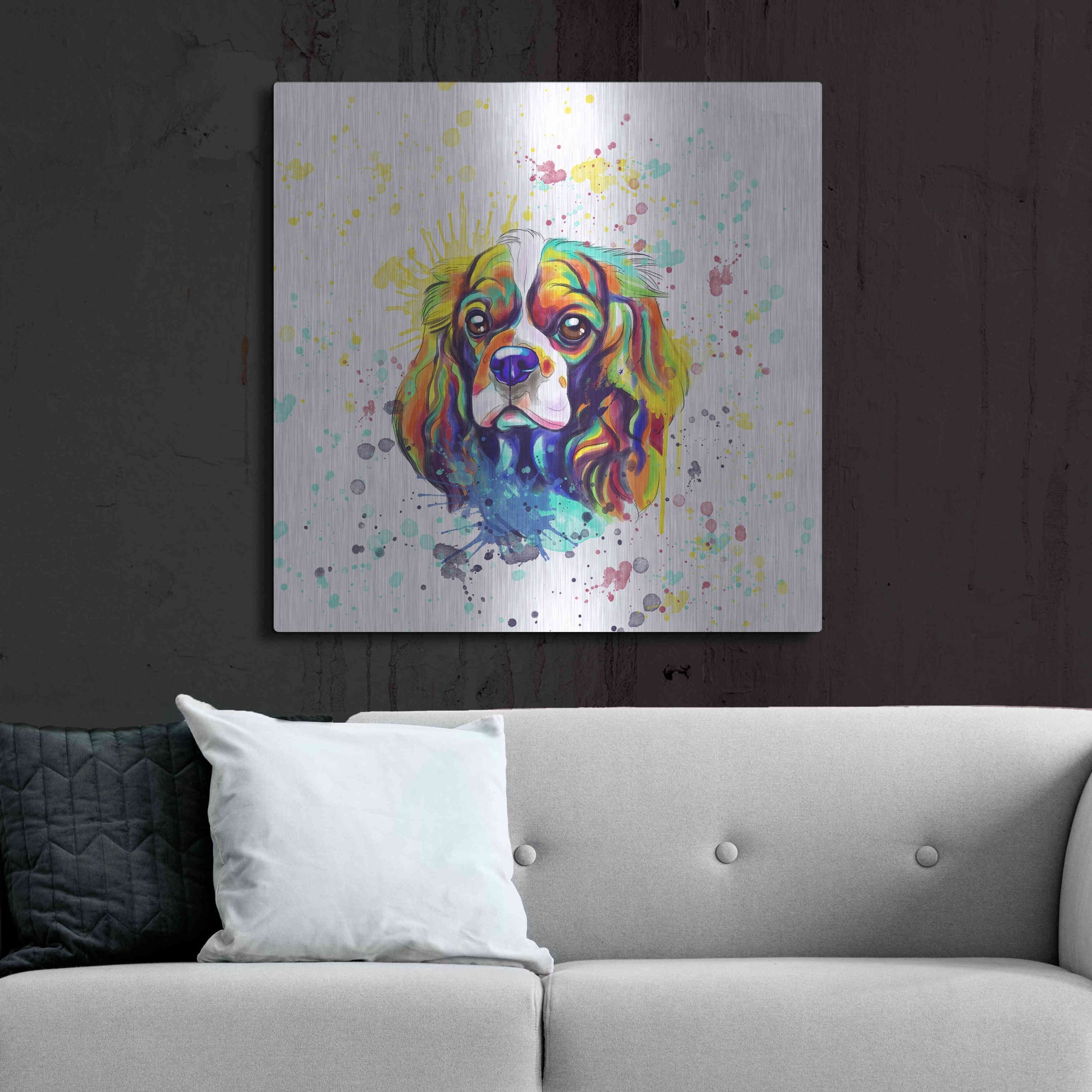 'Colorful Watercolor Cavalier King Charles Spaniel' by Furbaby Affiliates, Metal Wall Art