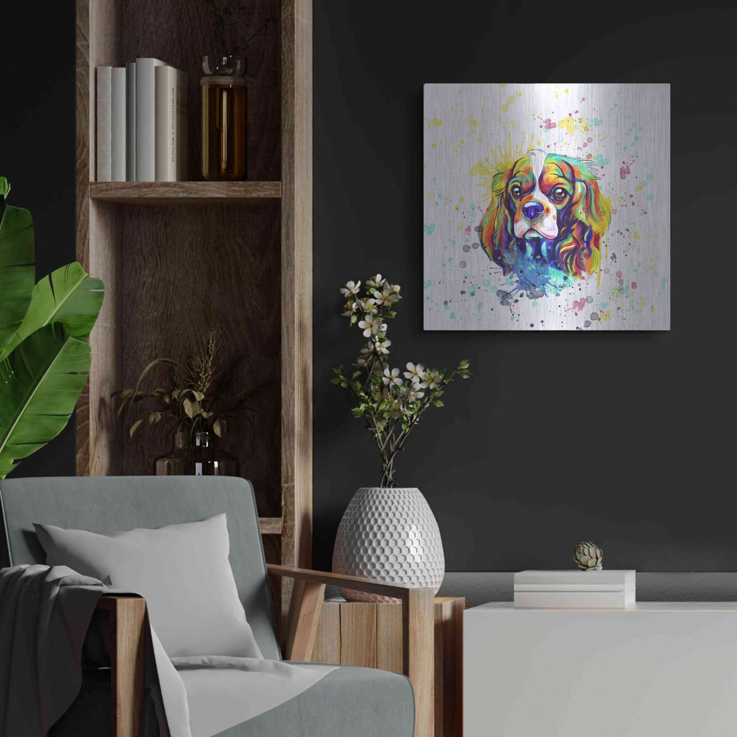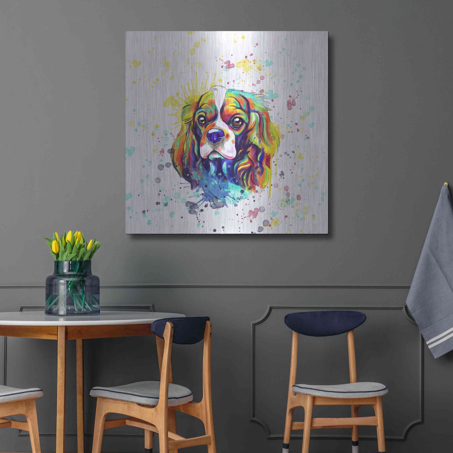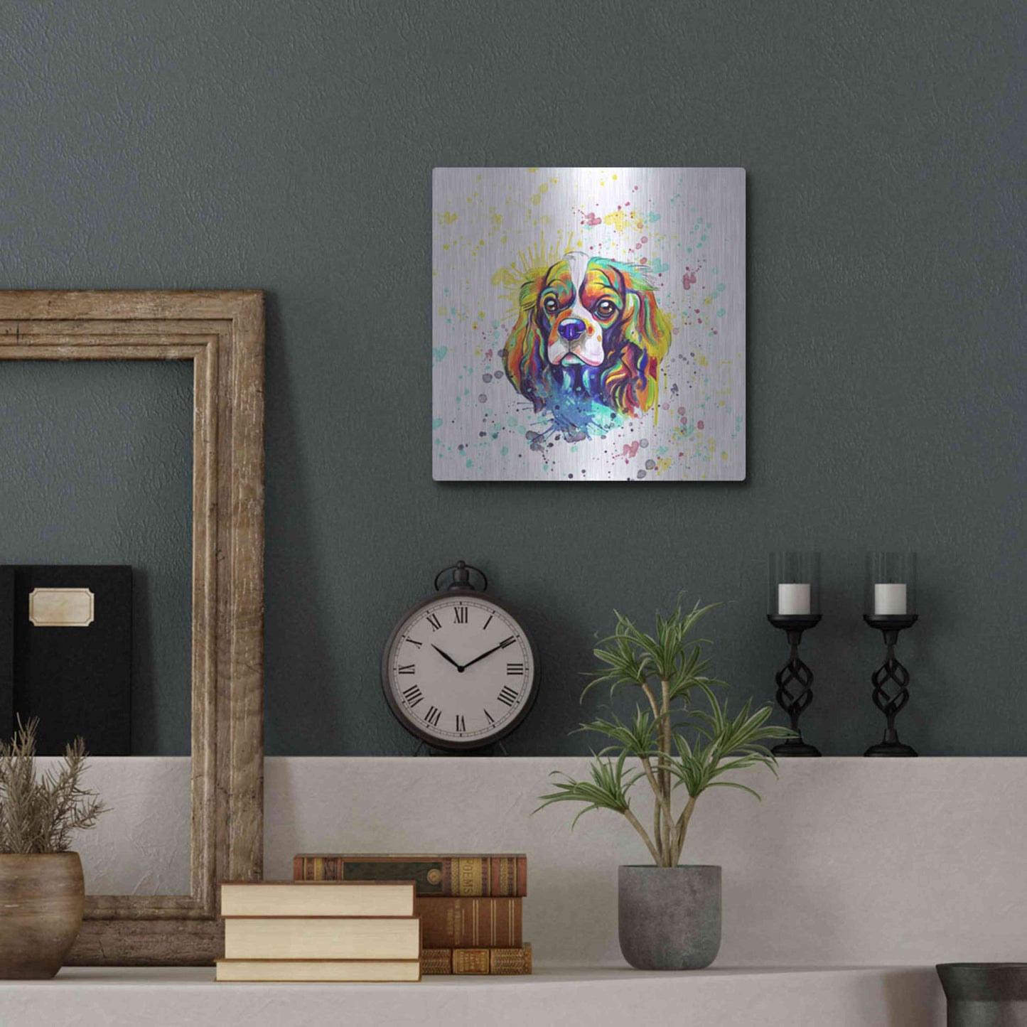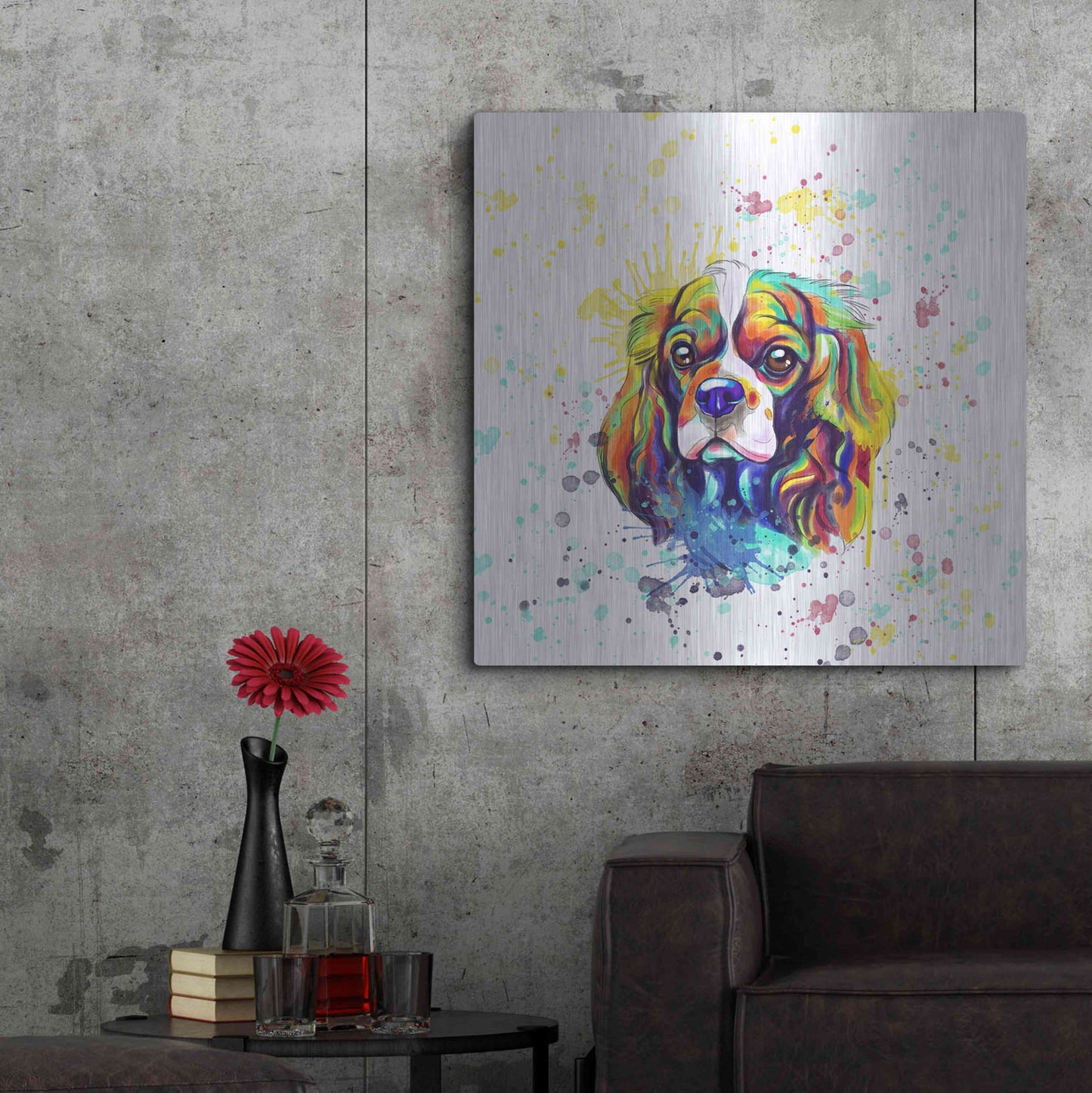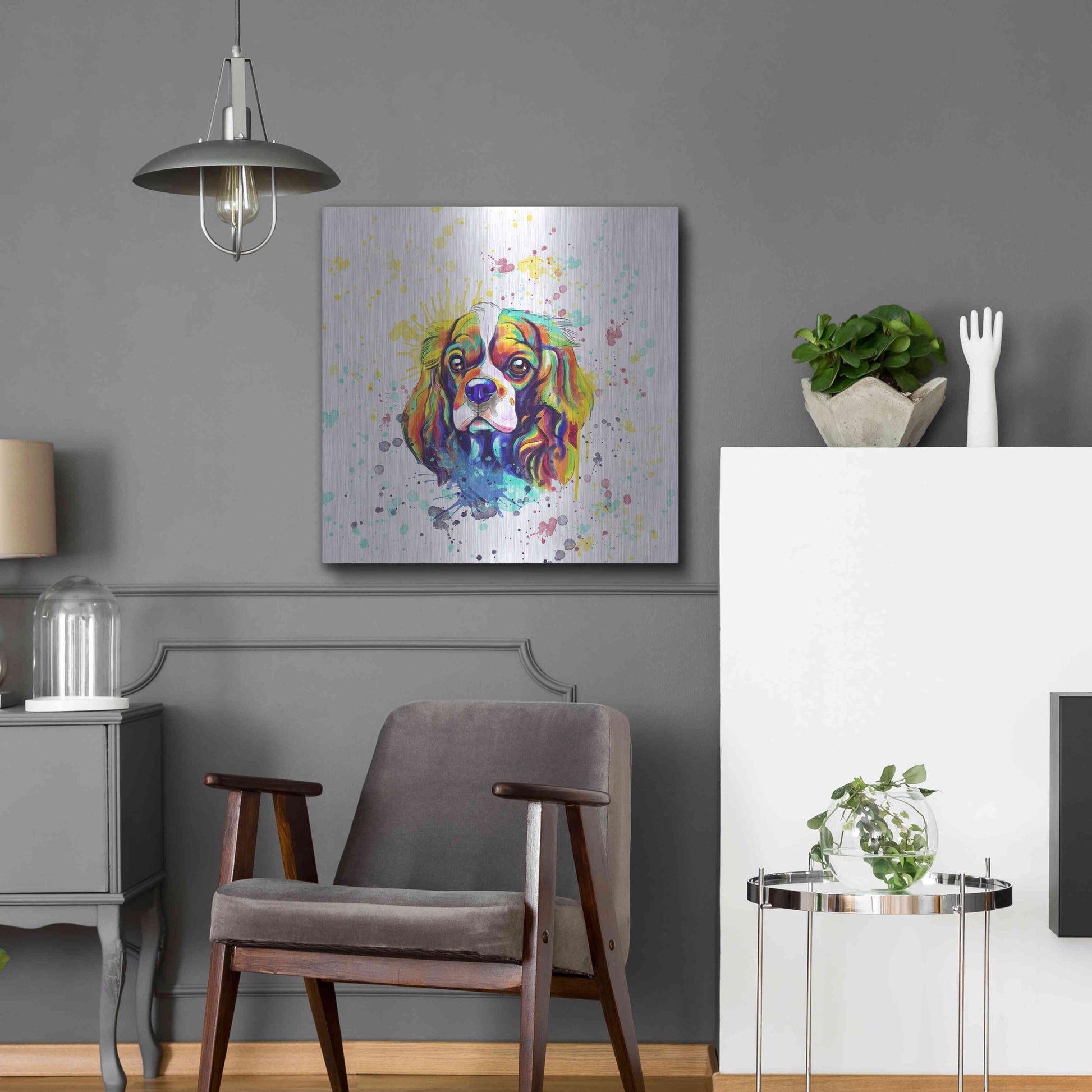'Colorful Watercolor Cavalier King Charles Spaniel' by Furbaby Affiliates, Metal Wall Art