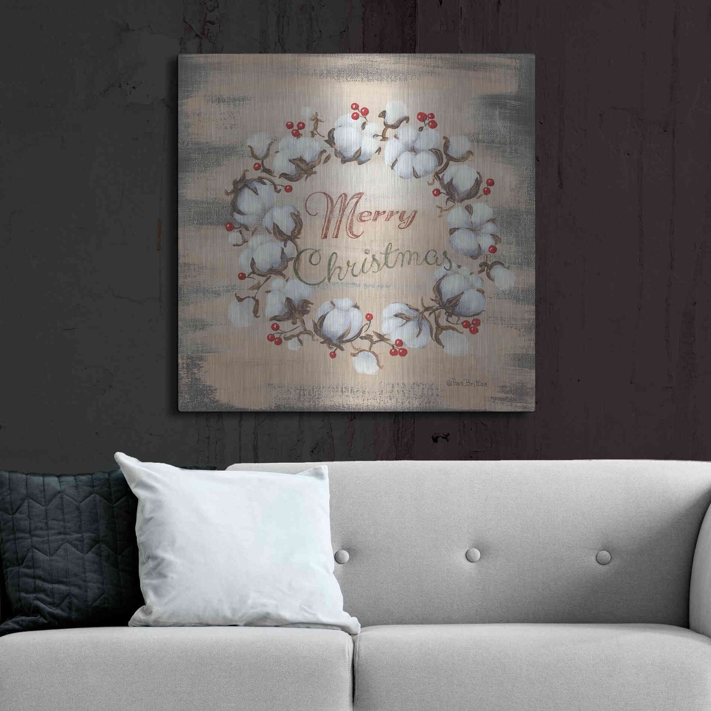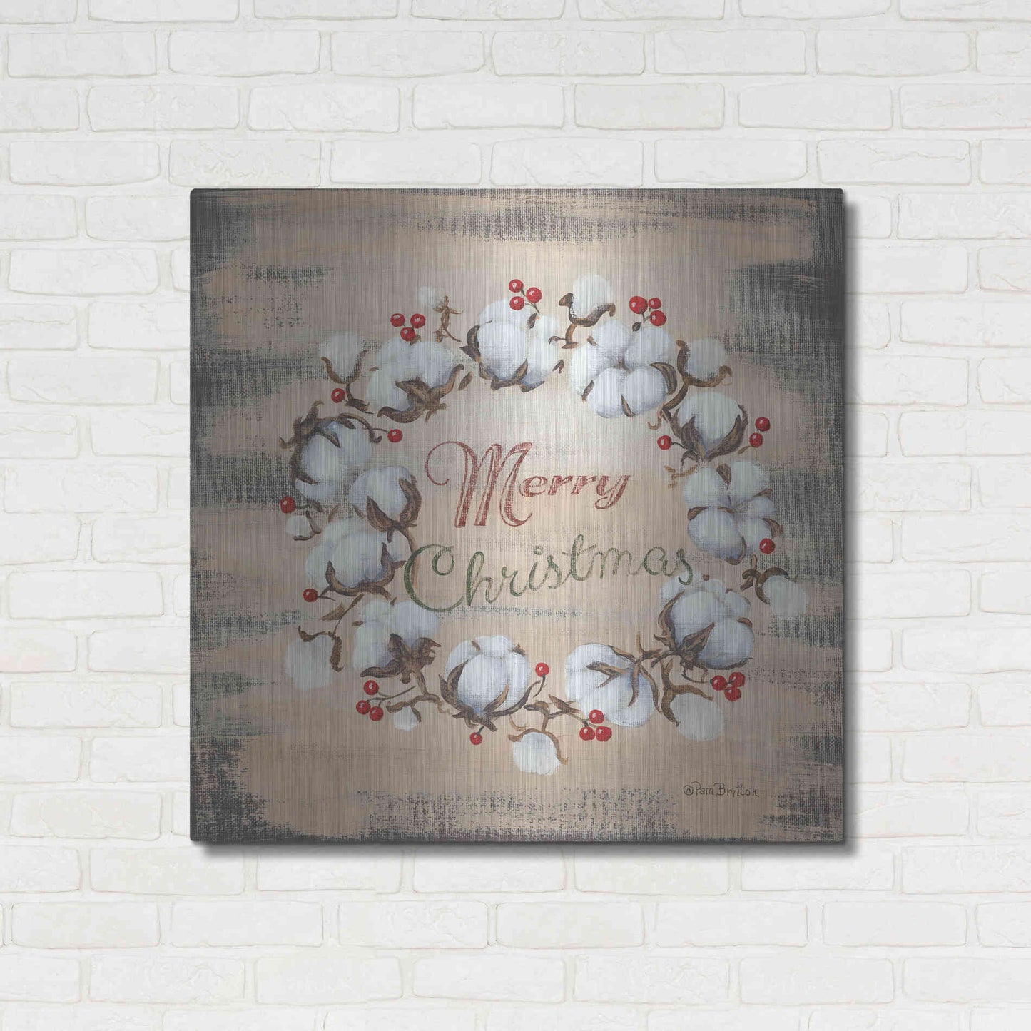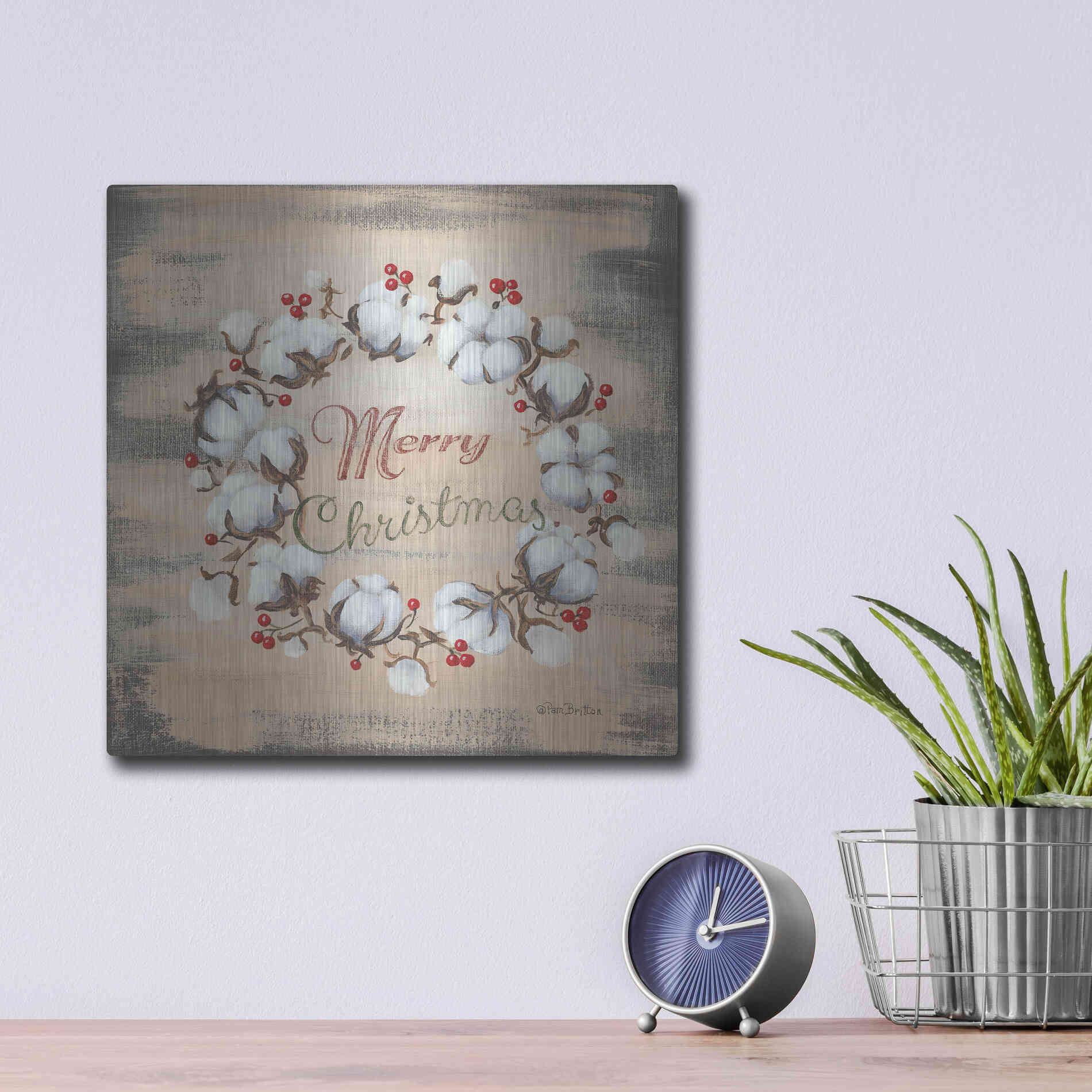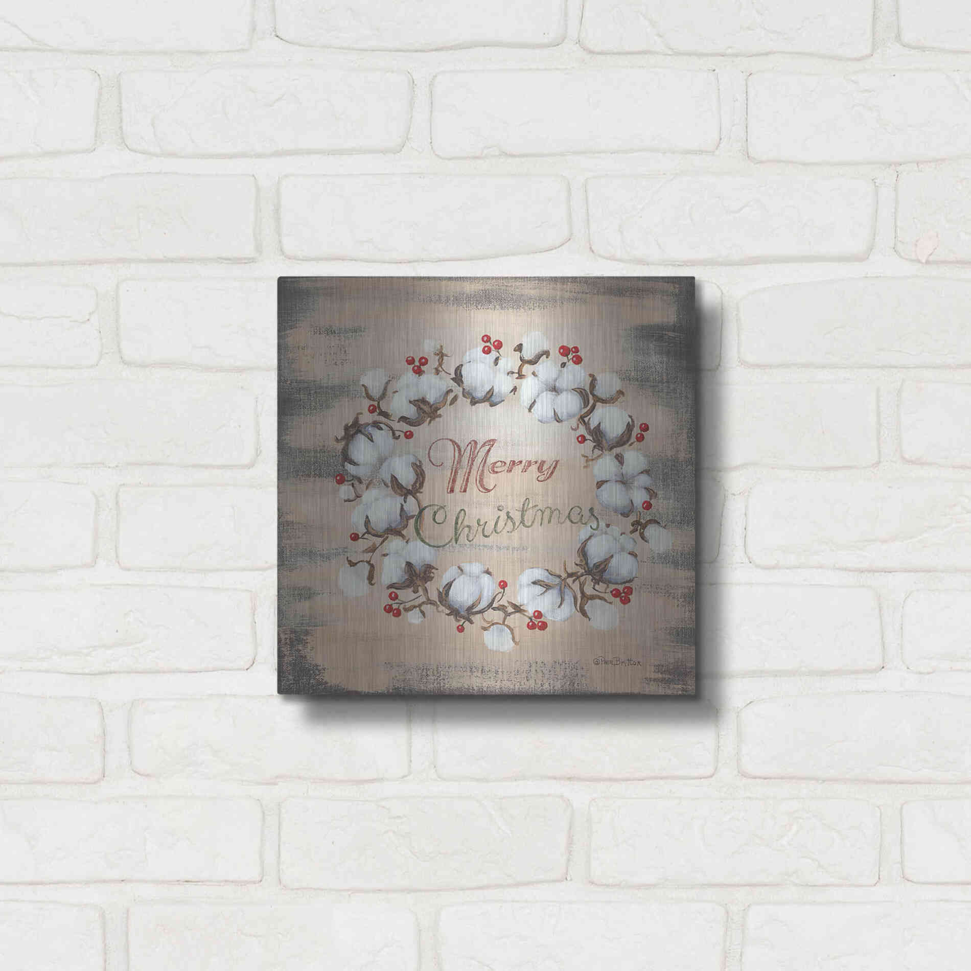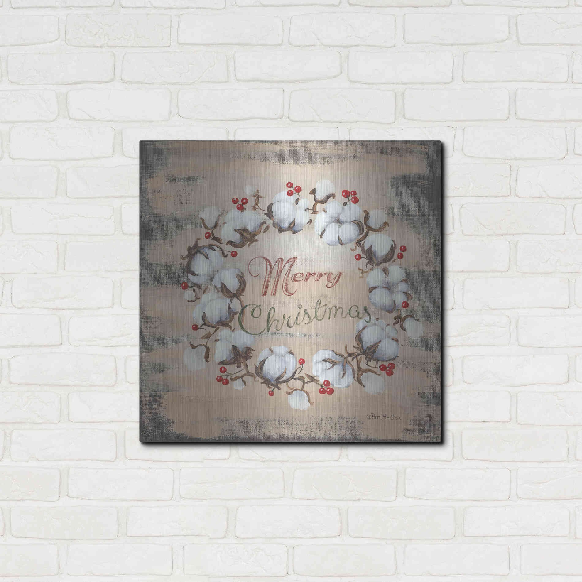 'Cotton Wreath Holiday' by Pam Britton, Metal Wall Art