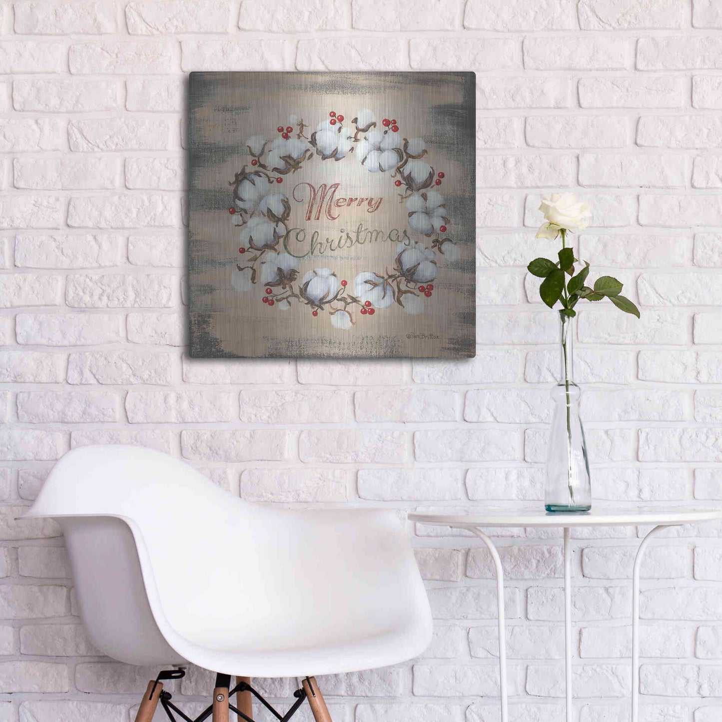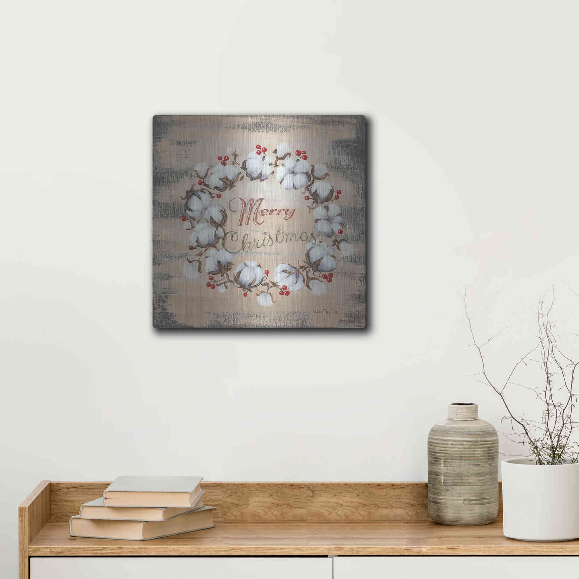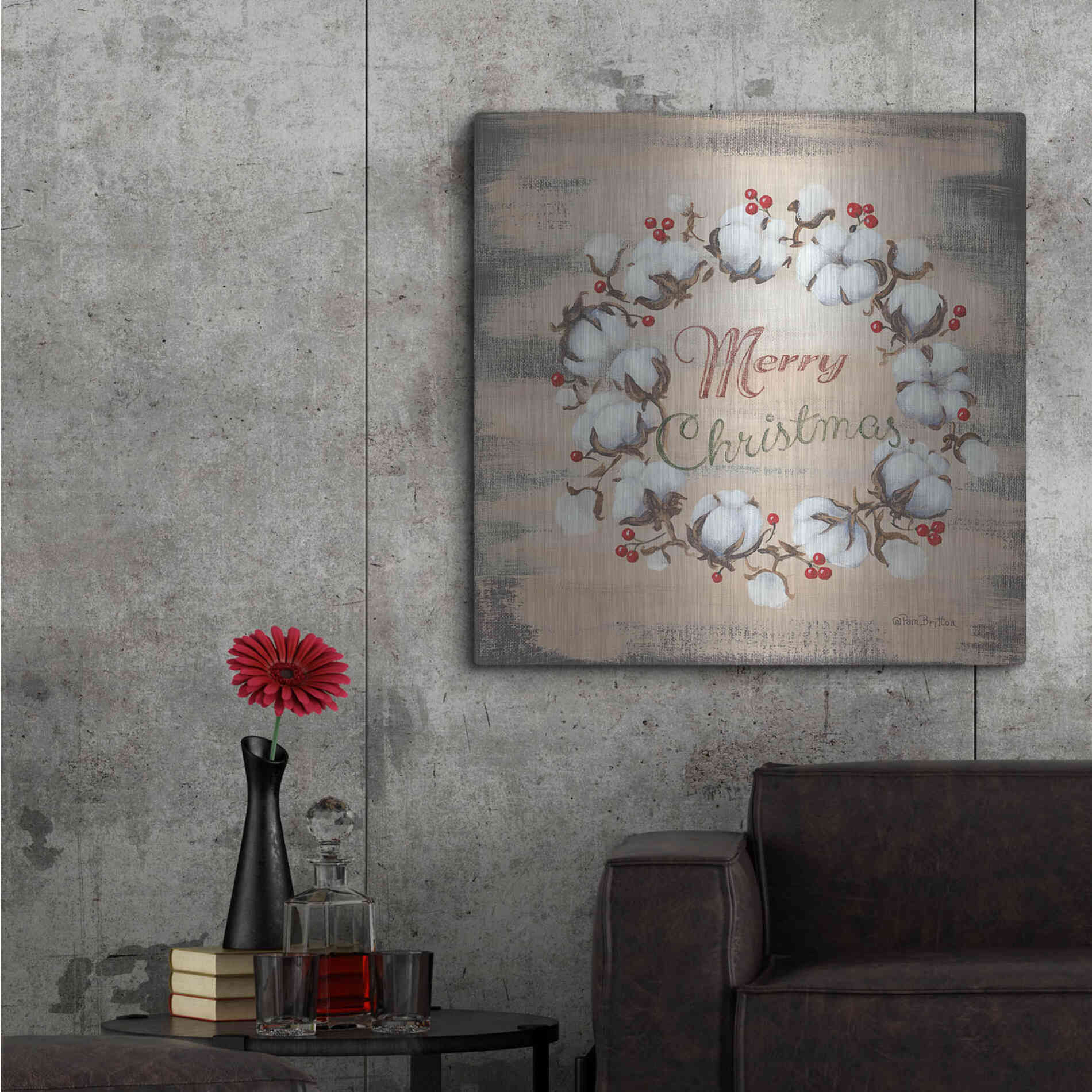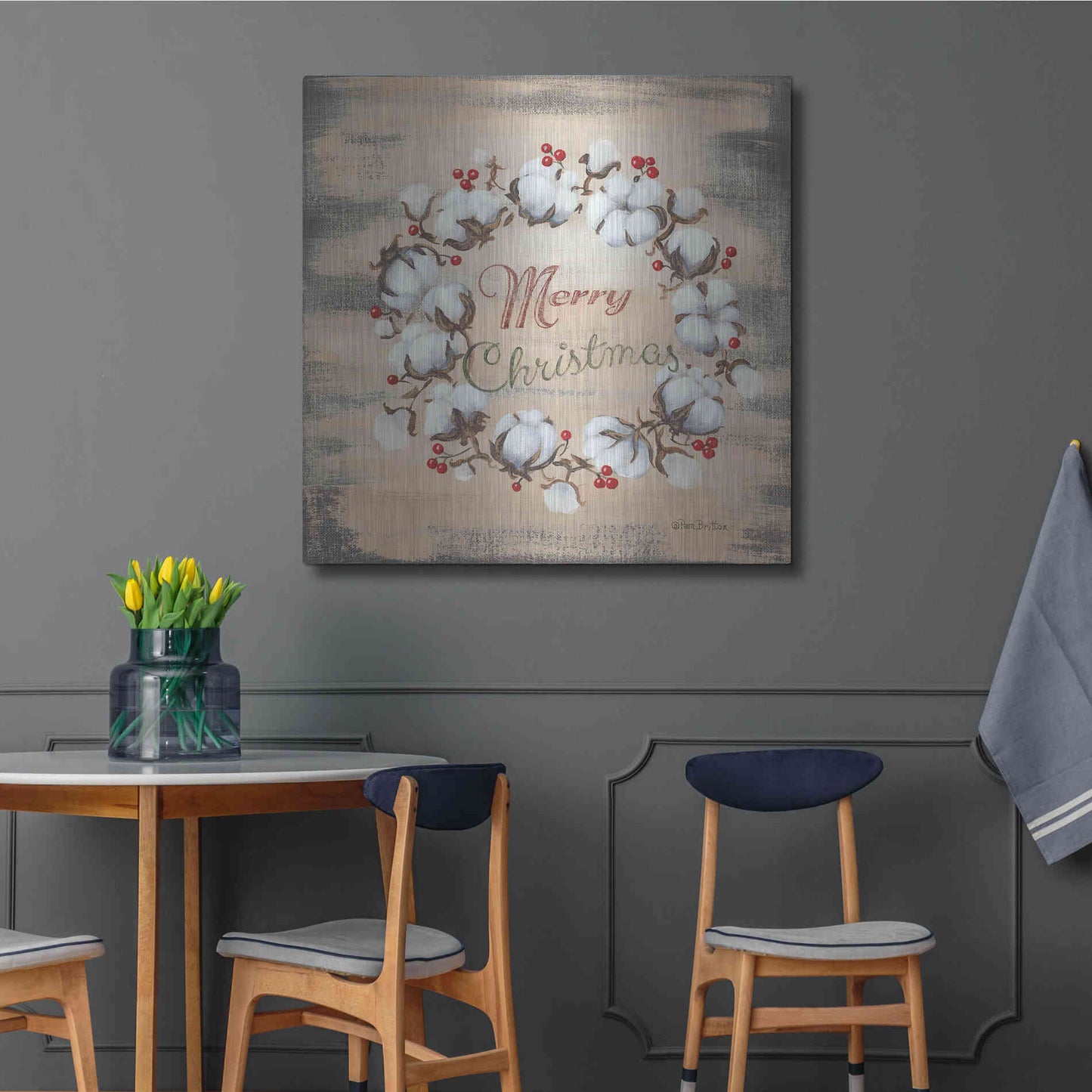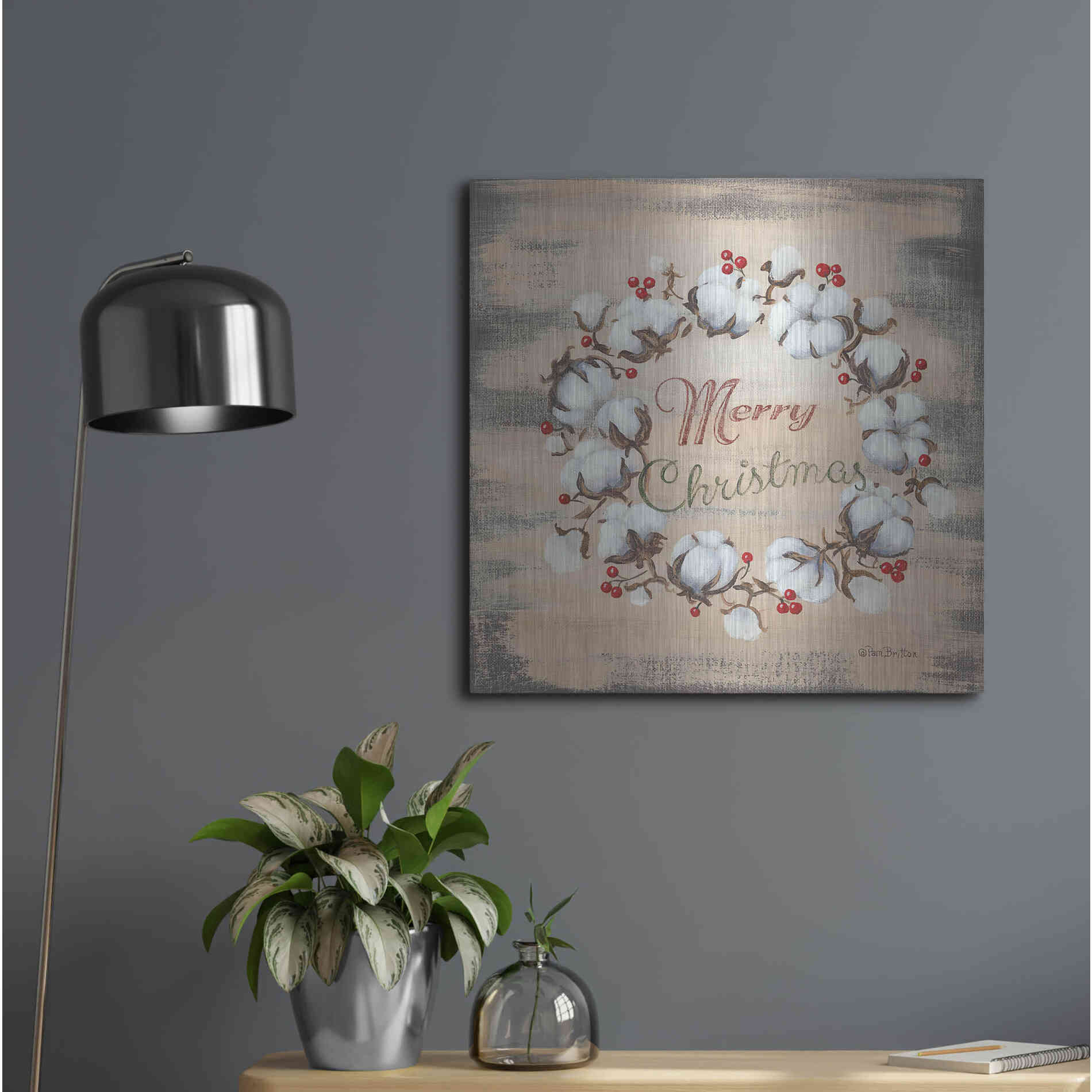 'Cotton Wreath Holiday' by Pam Britton, Metal Wall Art