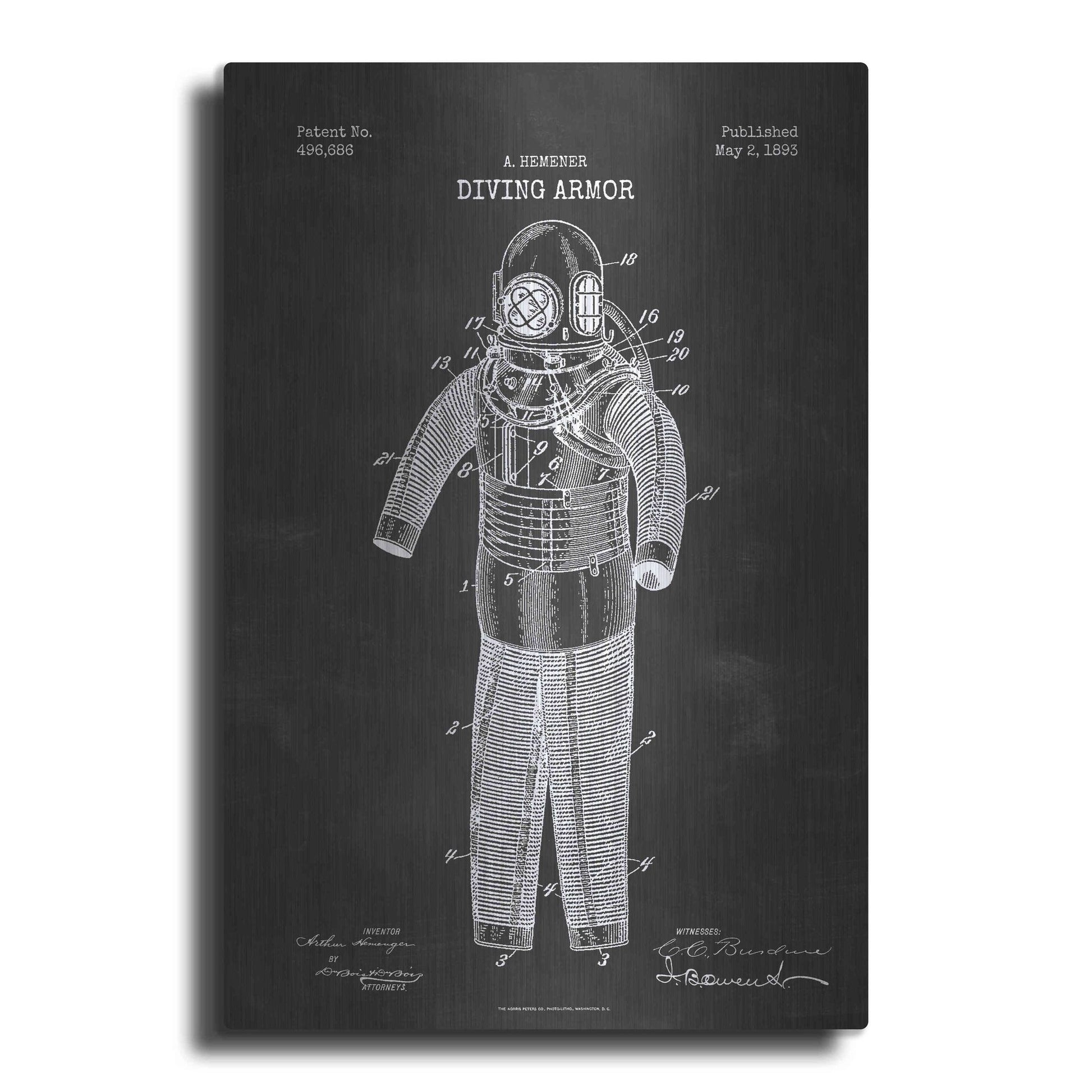 Diving Armor Blueprint Chalkboard Patent' Metal Wall Art
