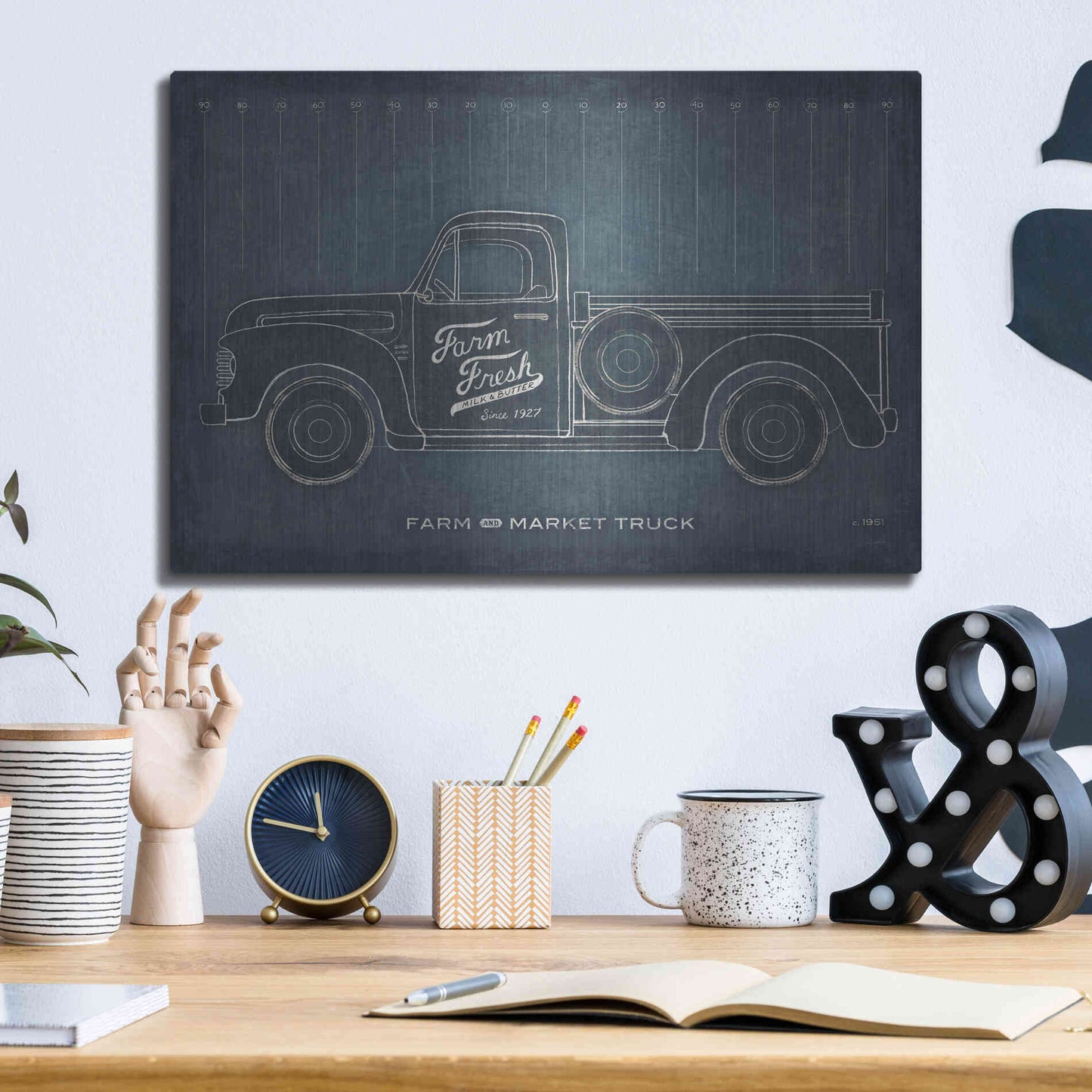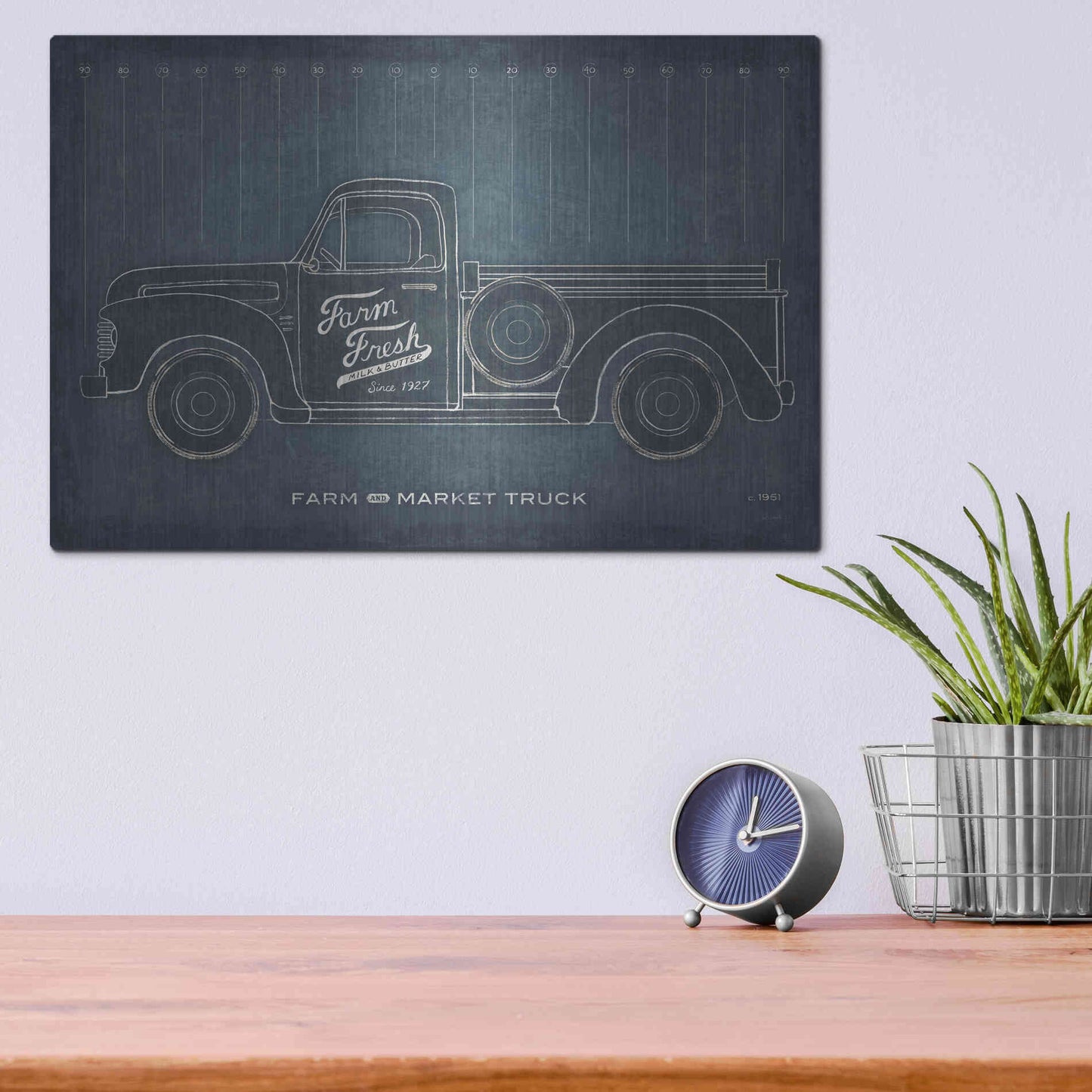 Luxe Metal Art 'Farm Truck Blueprint' by Sue Schlabach, Metal Wall Art