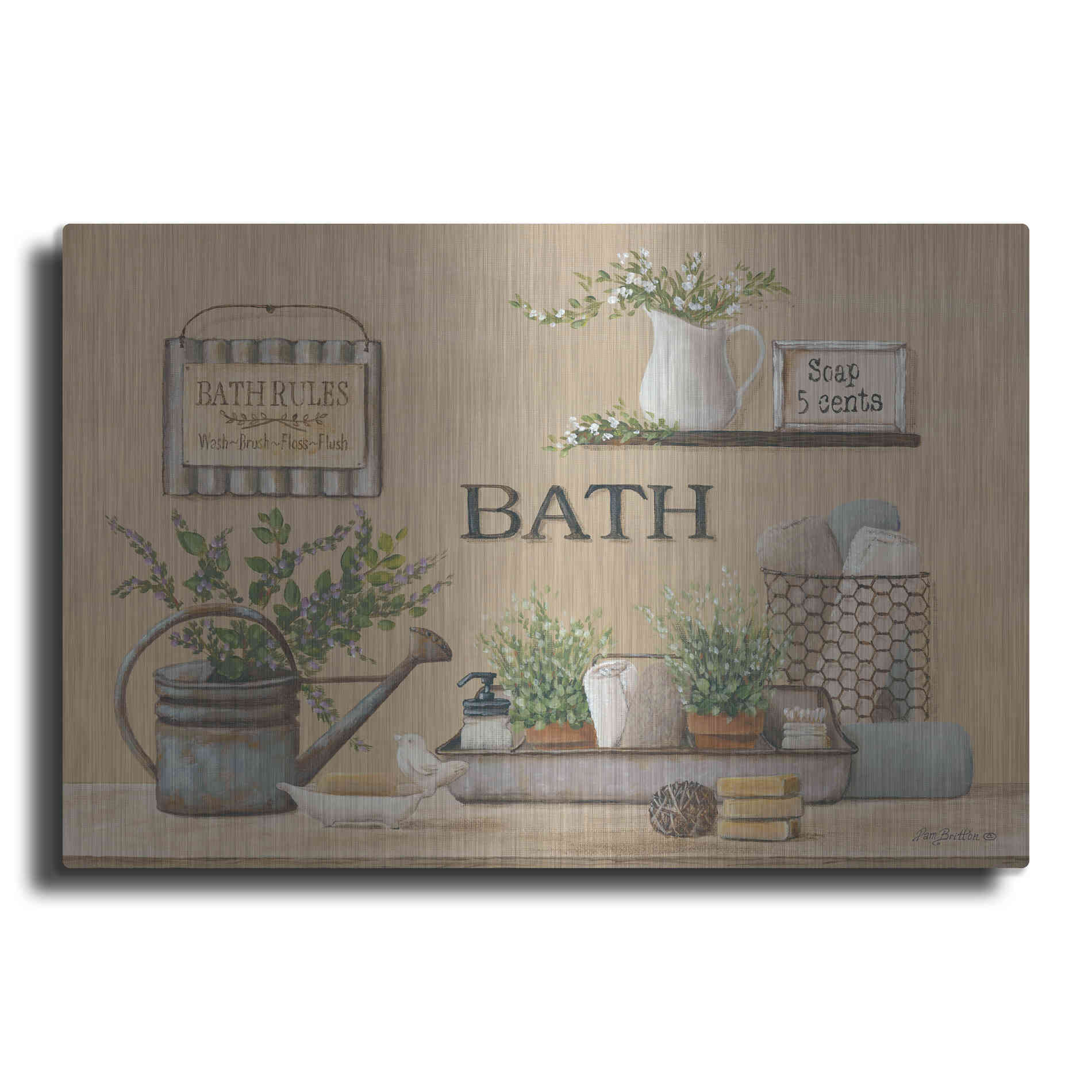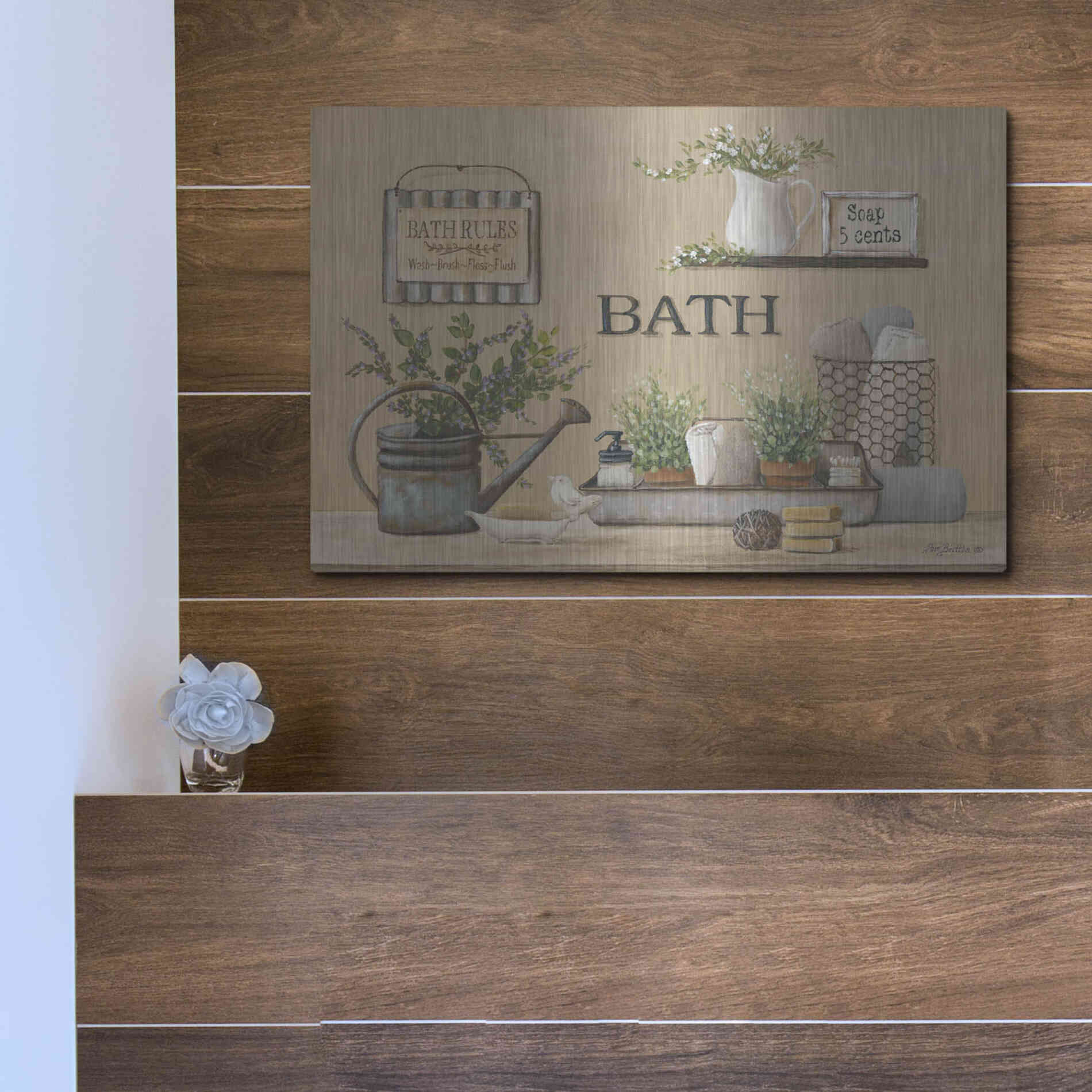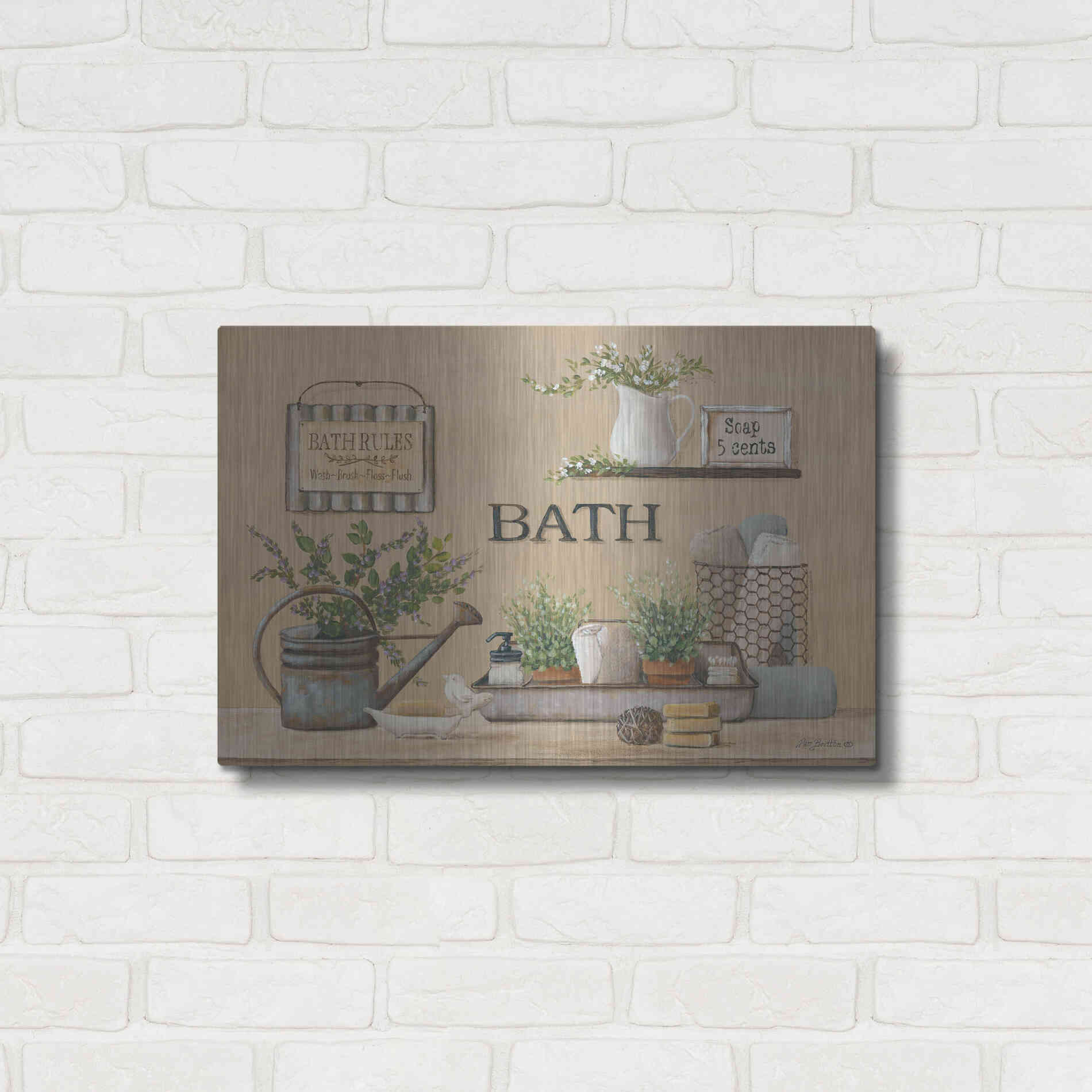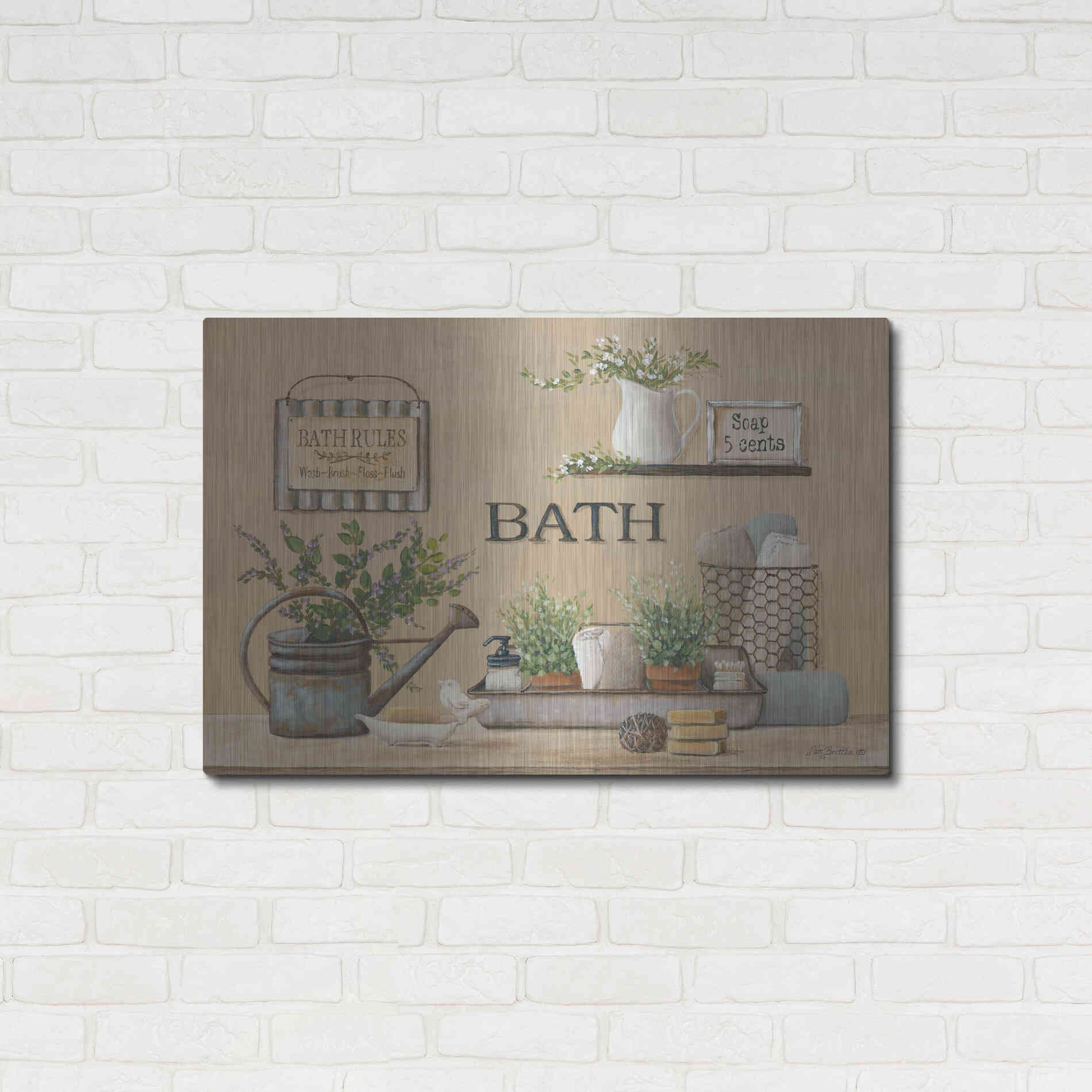 'Farmhouse Bath II' by Pam Britton, Metal Wall Art