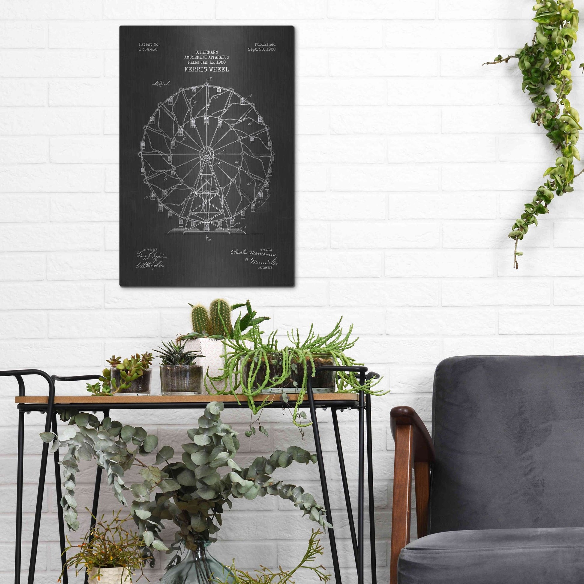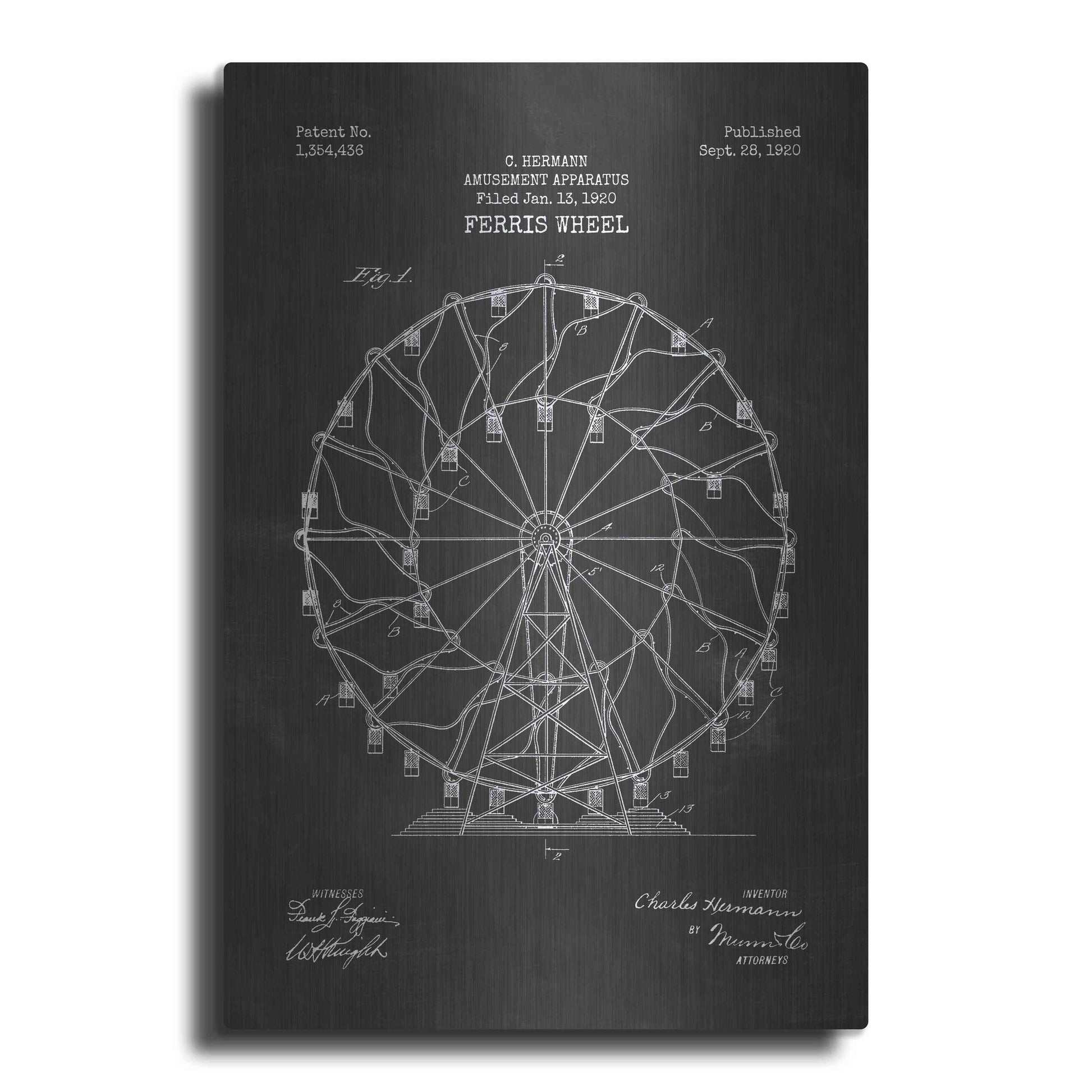 Ferris Wheel, 1920 Blueprint Chalkboard Patent' Metal Wall Art