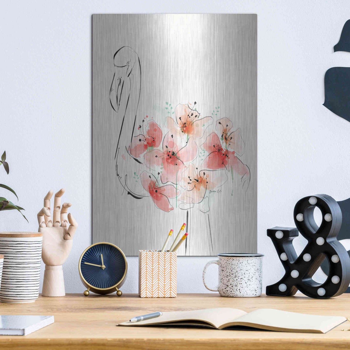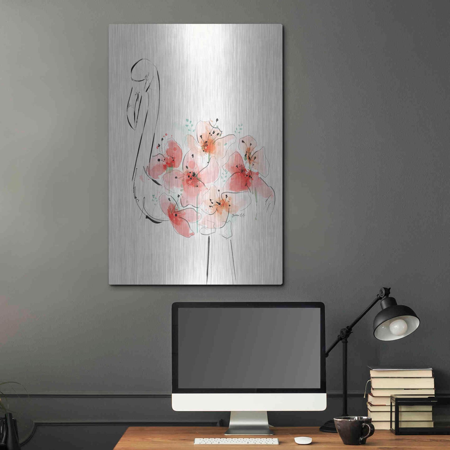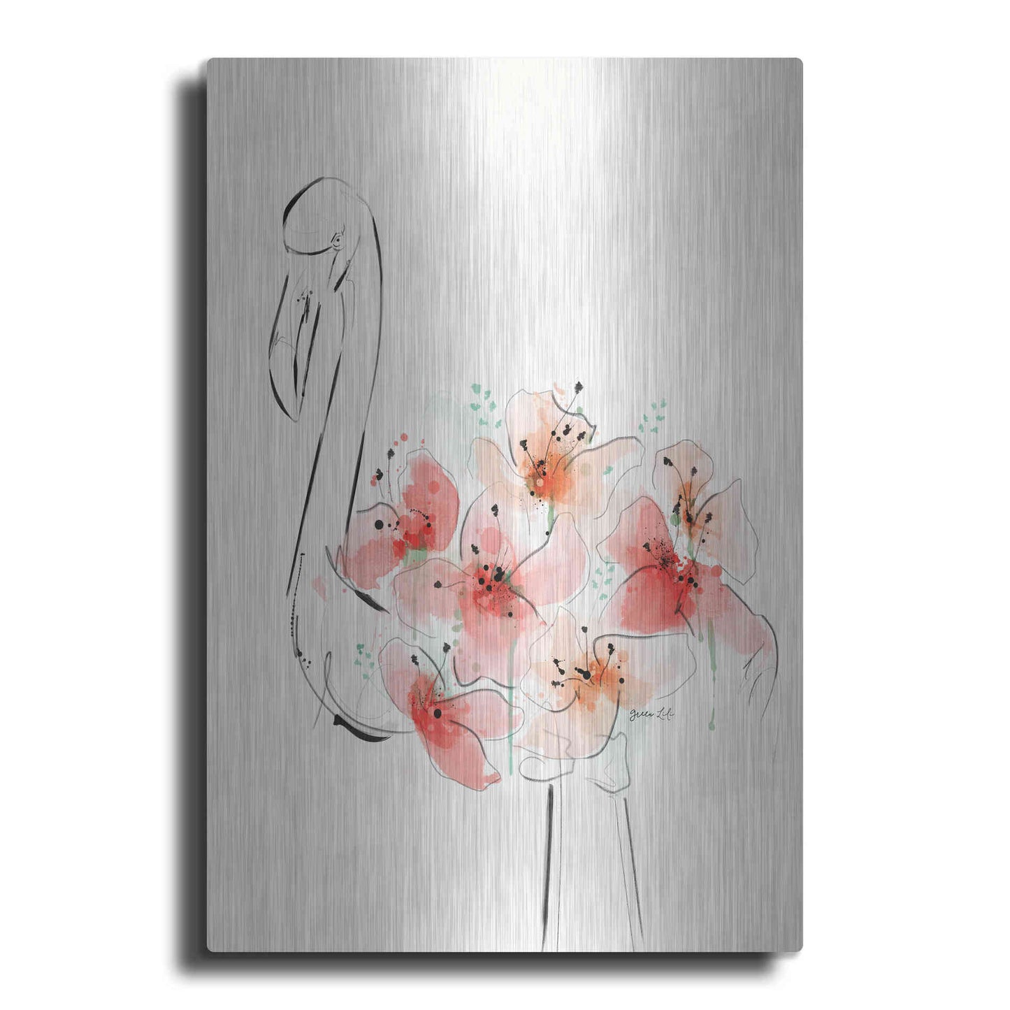 'Flamingo Flowers' by Green Lili, Metal Wall Art