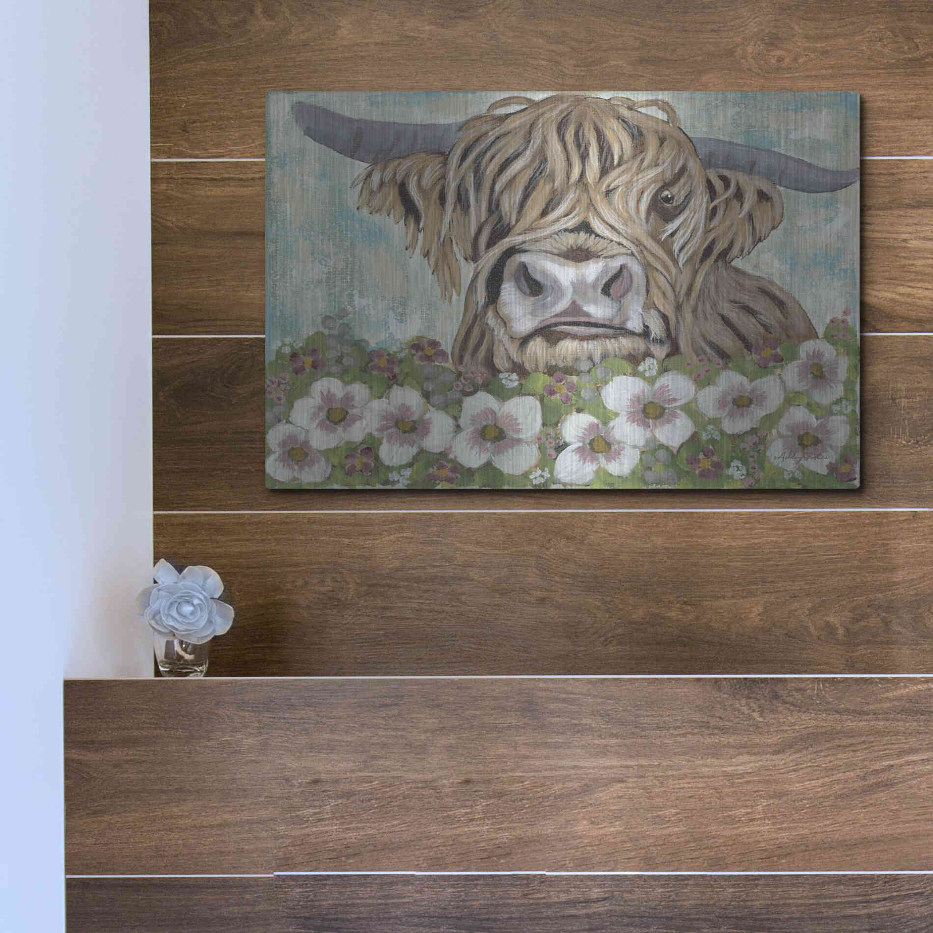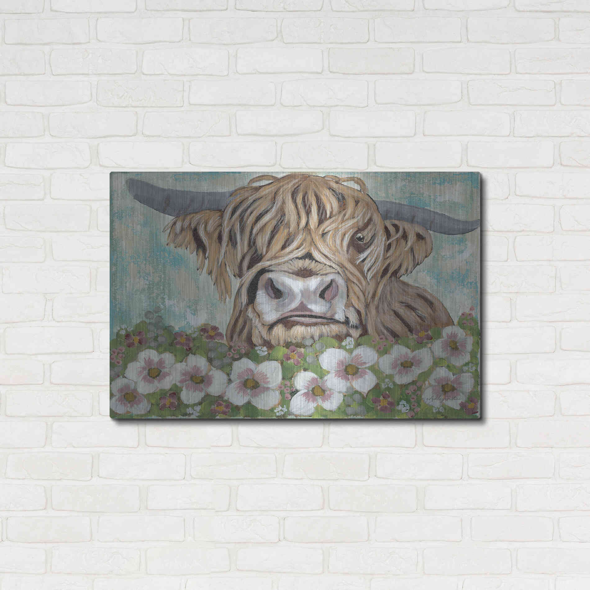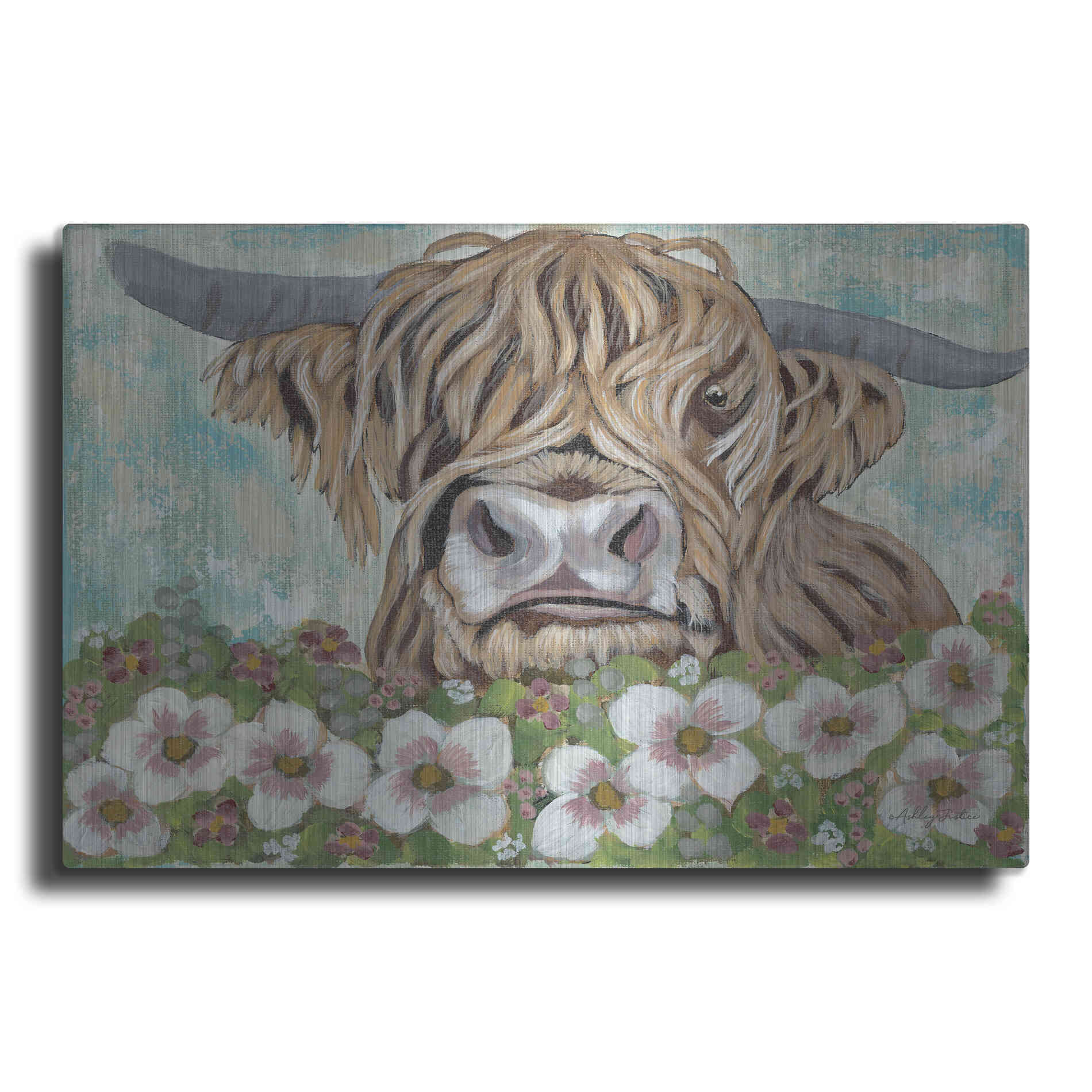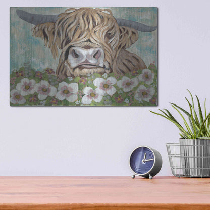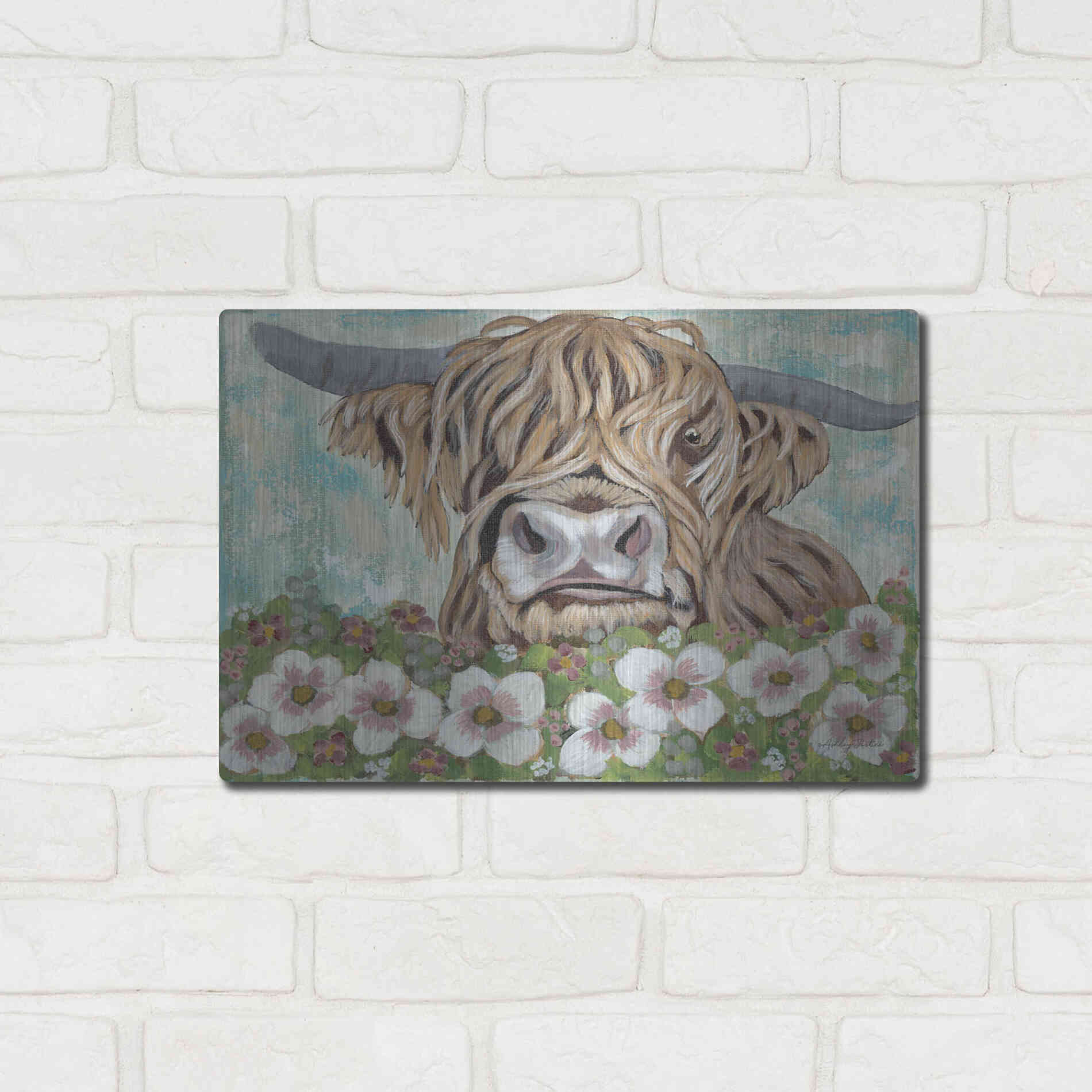 'Floral Highland Cow' by Ashley Justice, Metal Wall Art