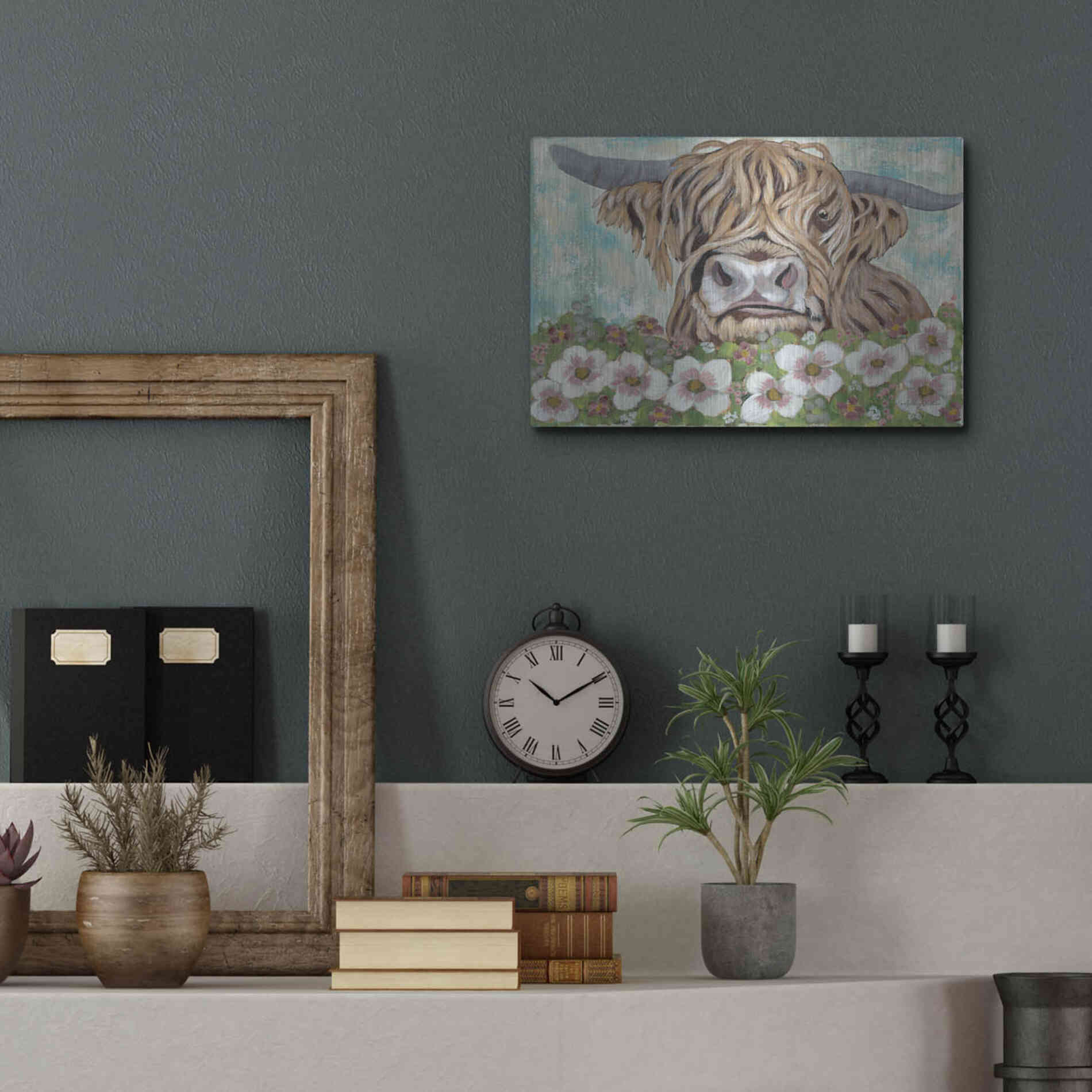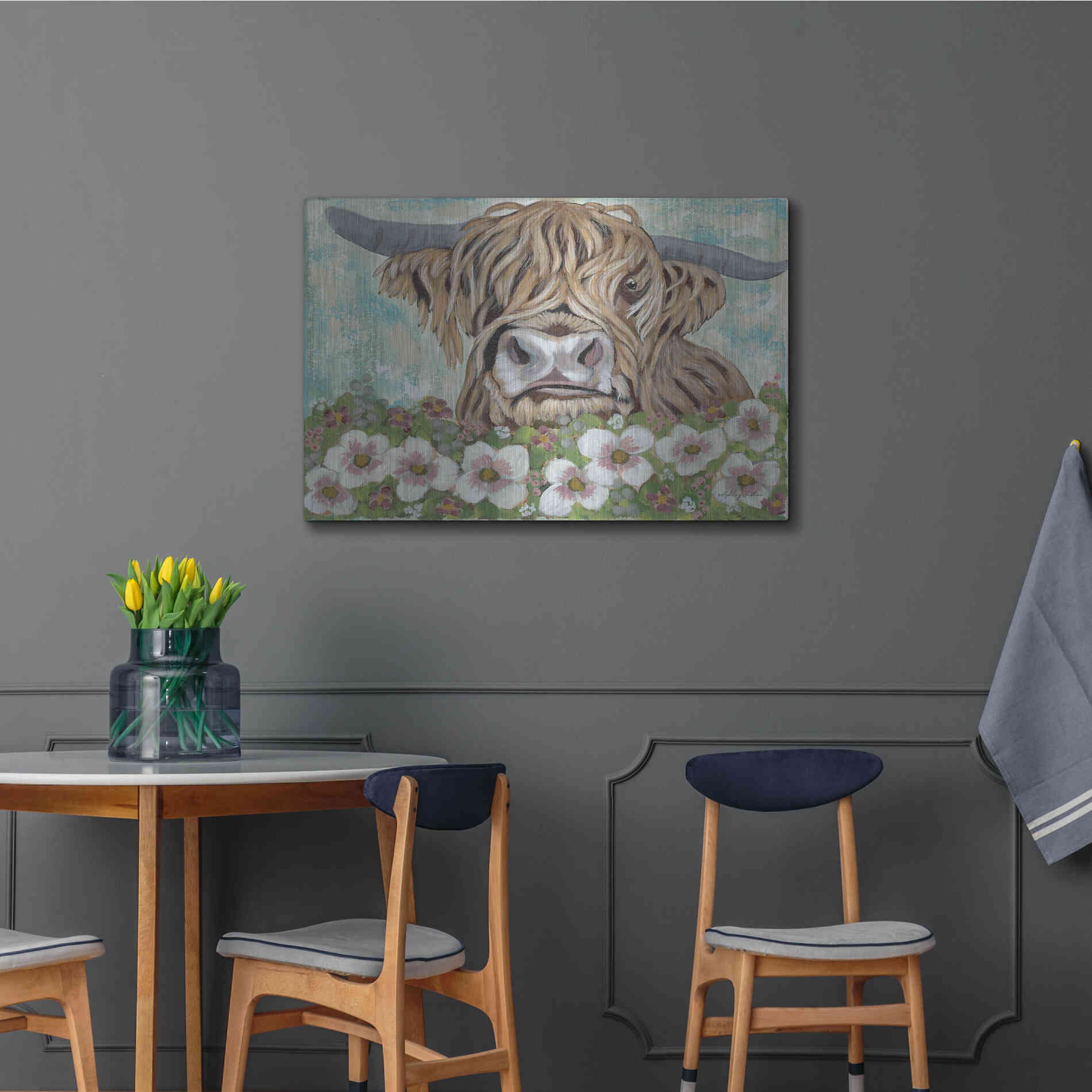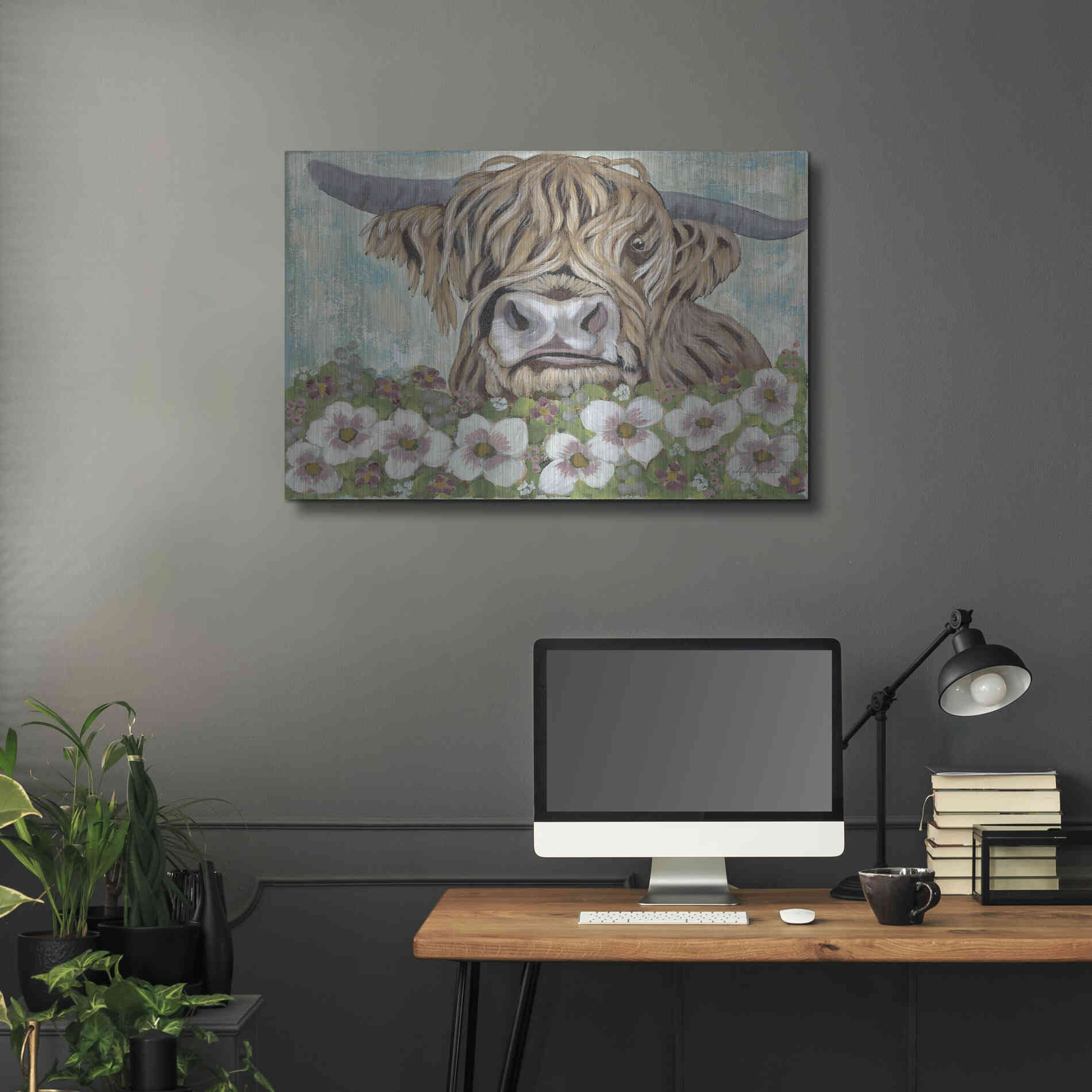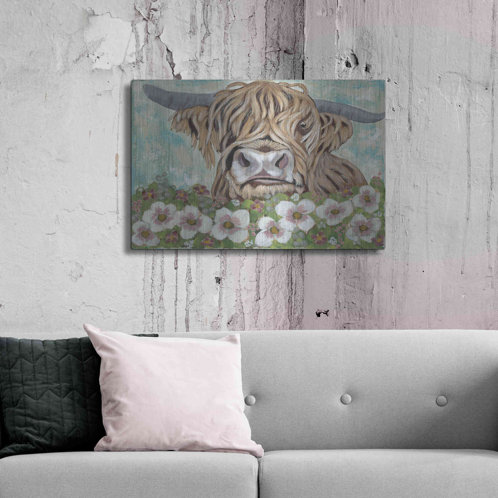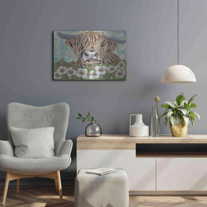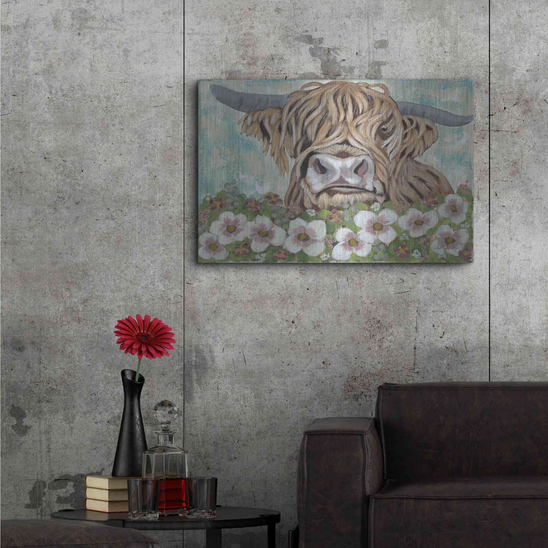 'Floral Highland Cow' by Ashley Justice, Metal Wall Art