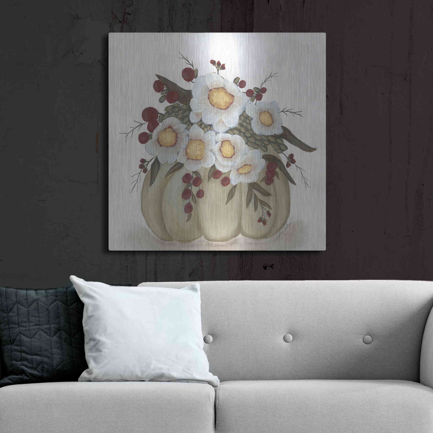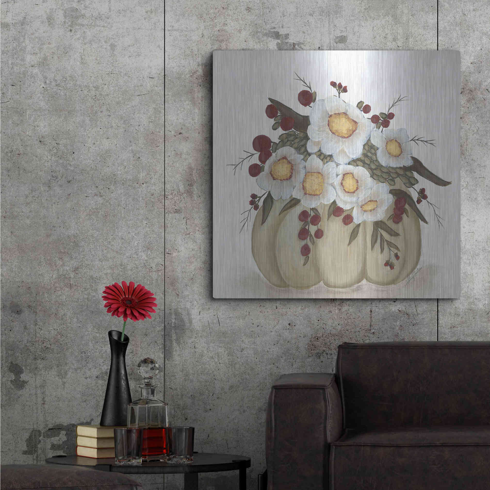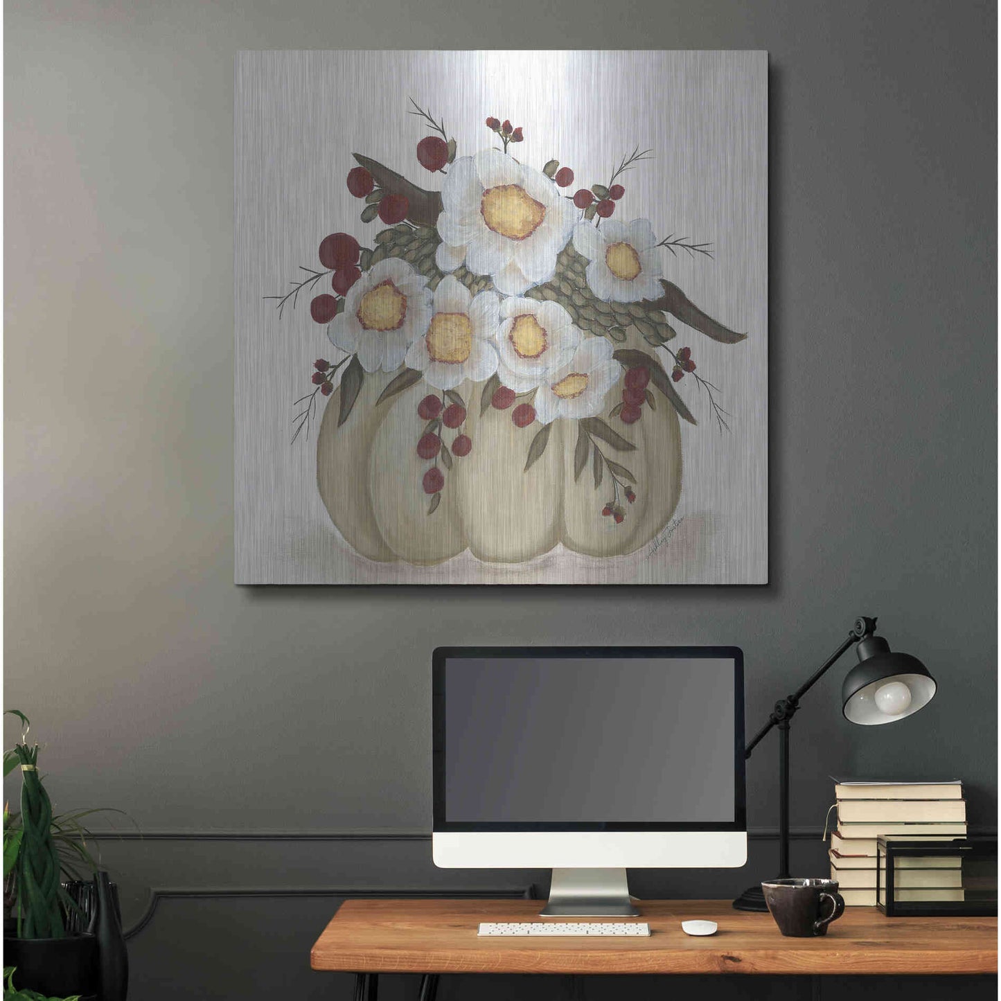 Luxe Metal Art 'Floral Pumpkin' by Ashley Justice, Metal Wall Art