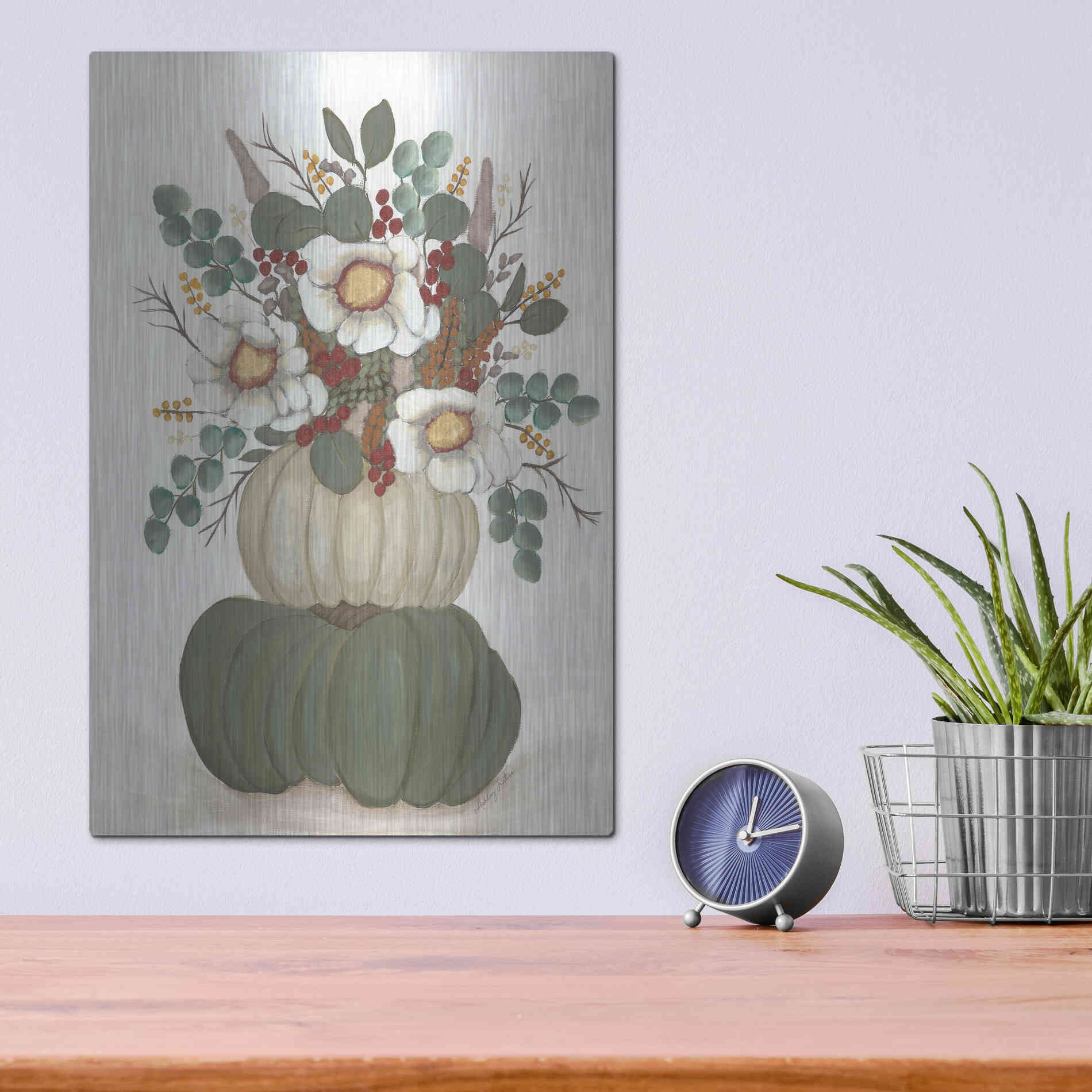 Luxe Metal Art 'Floral Pumpkin Stack' by Ashley Justice, Metal Wall Art