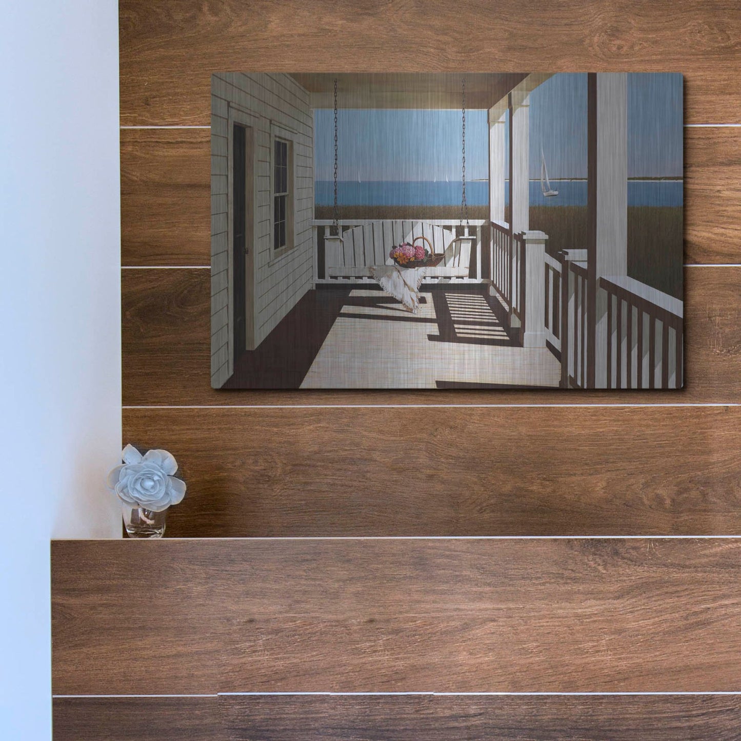 'Flower Basket On Swing Chair' by Zhen-Huan Lu, Metal Wall Art