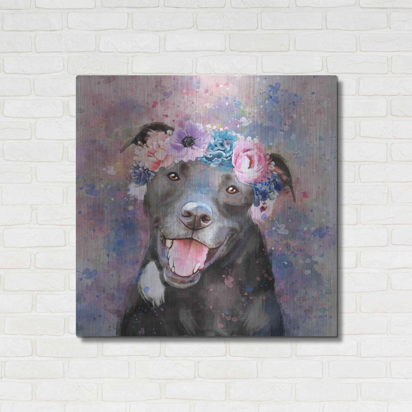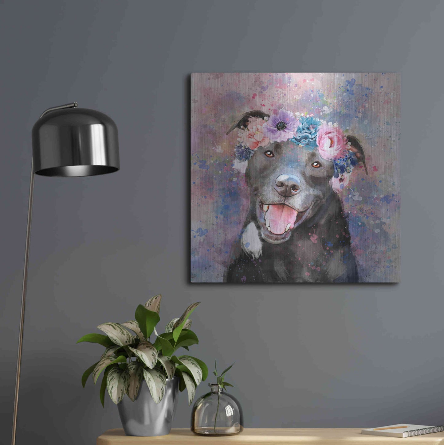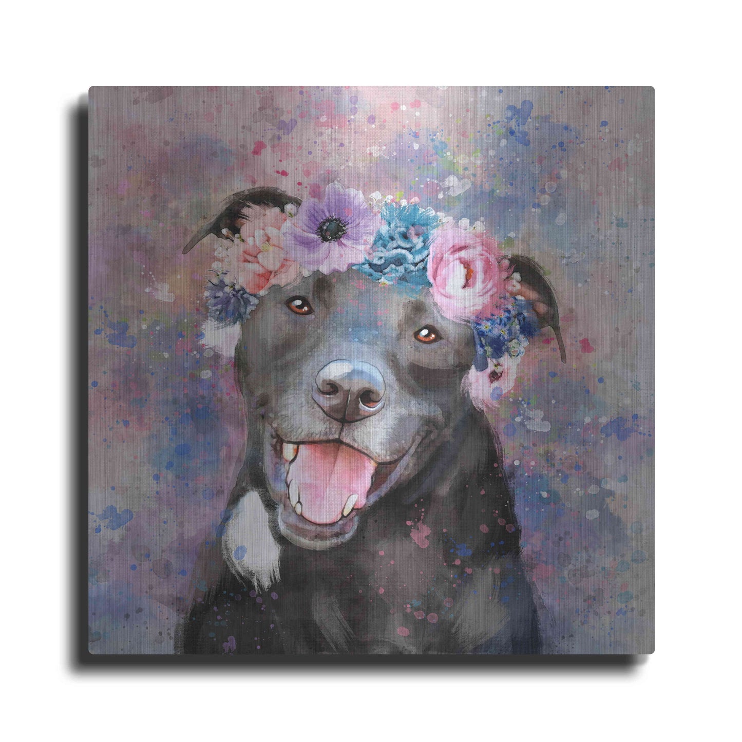 'Flower Crown Staffordshire Terrier' by Furbaby Affiliates, Metal Wall Art
