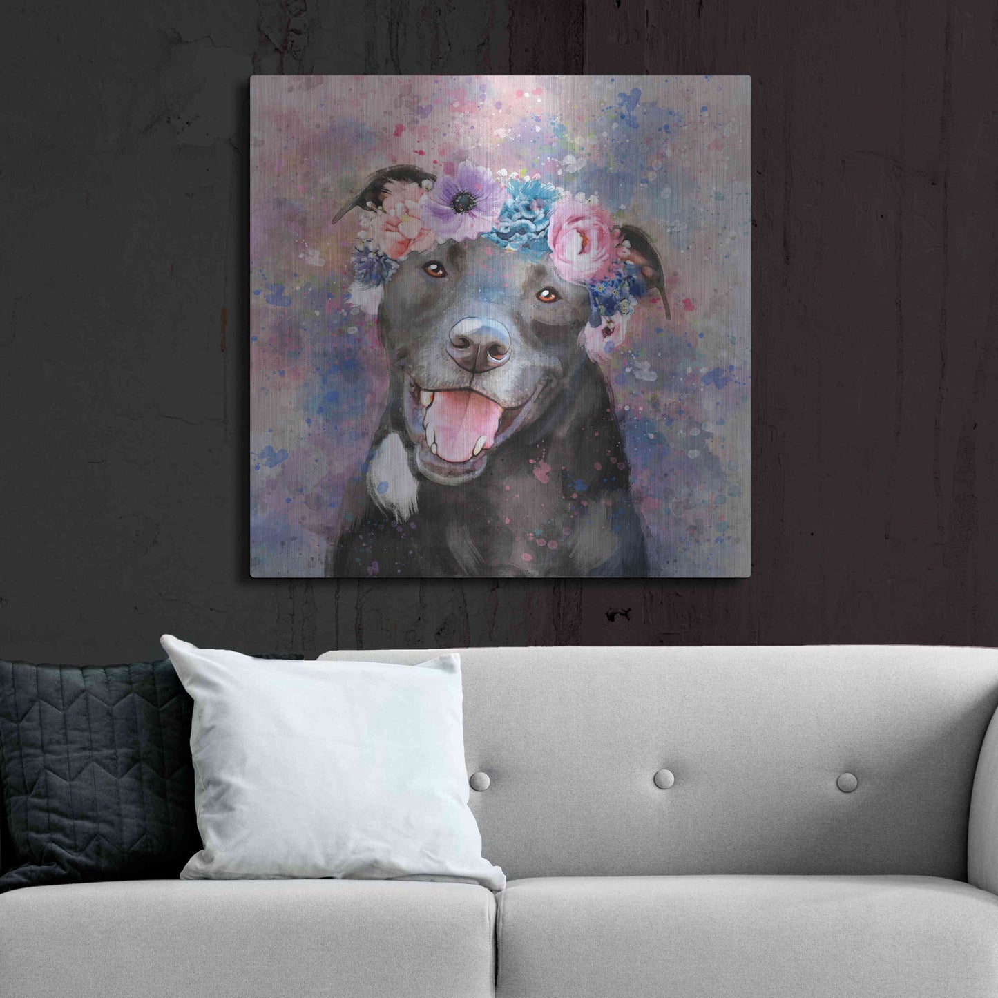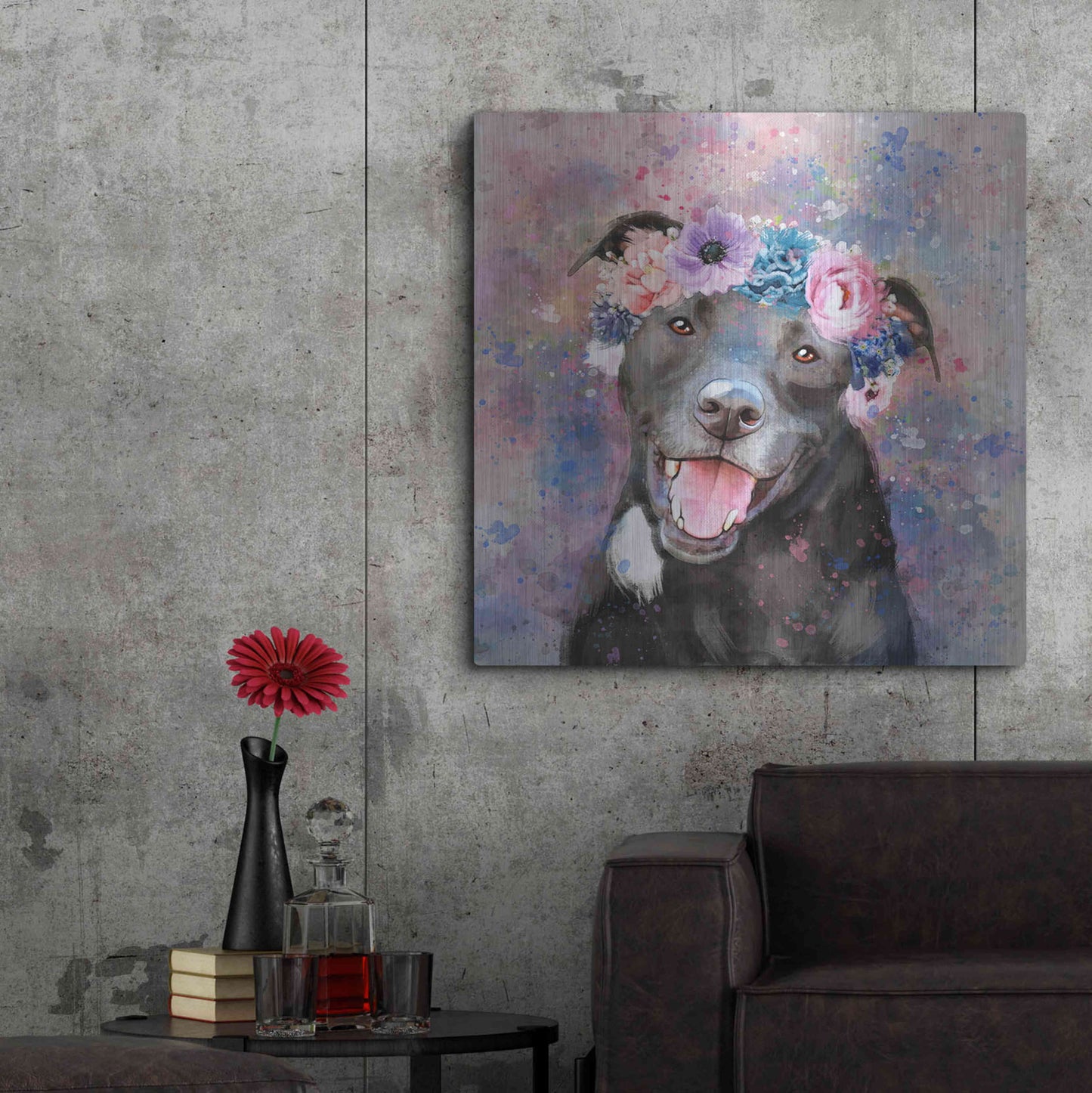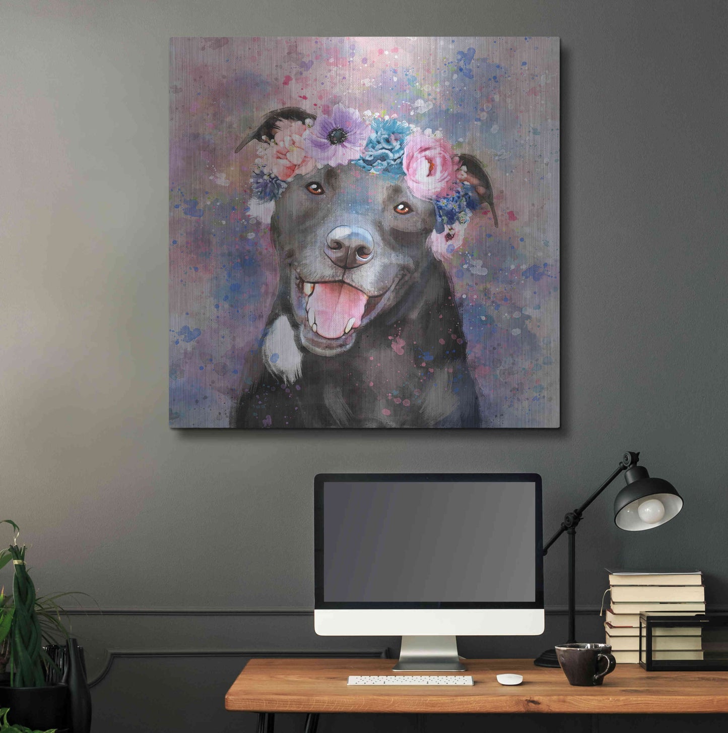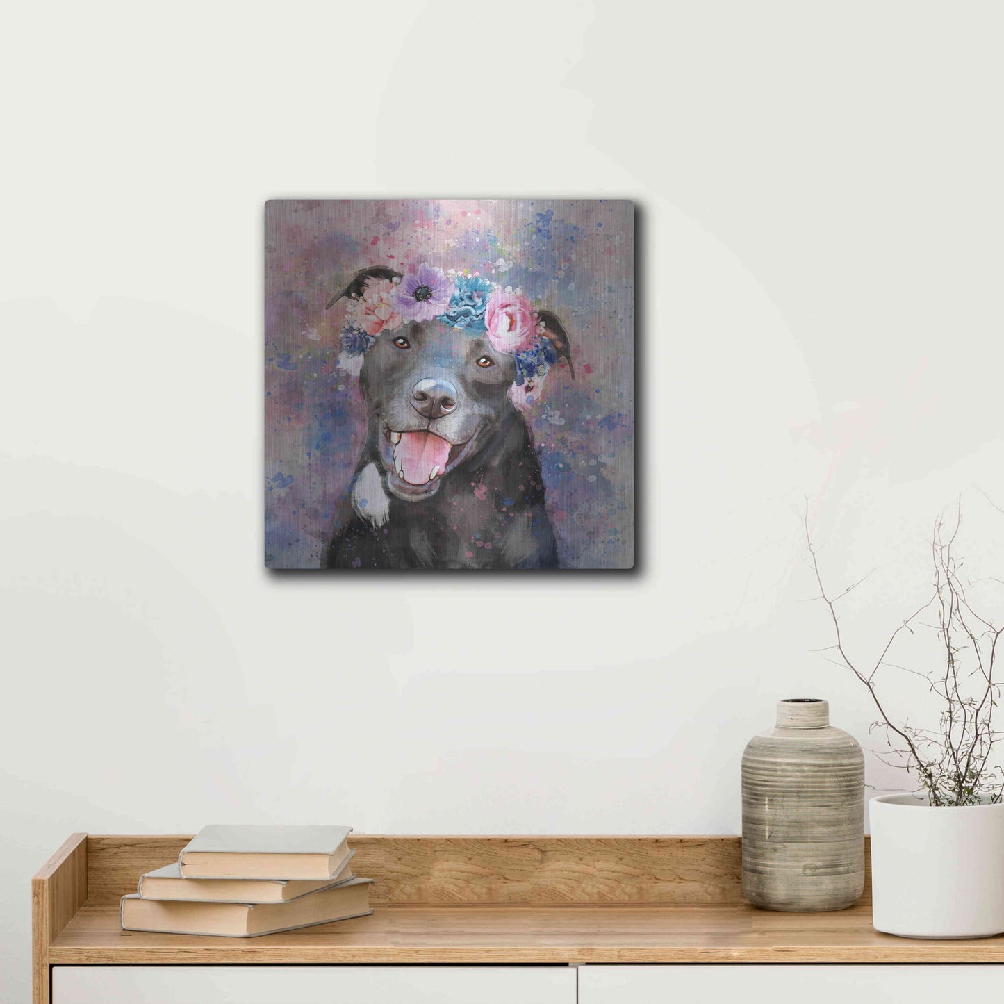 'Flower Crown Staffordshire Terrier' by Furbaby Affiliates, Metal Wall Art