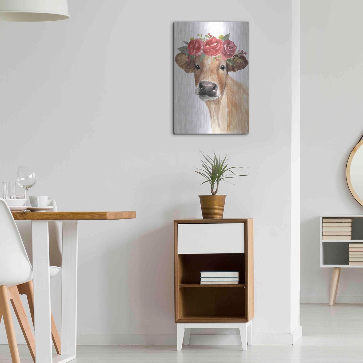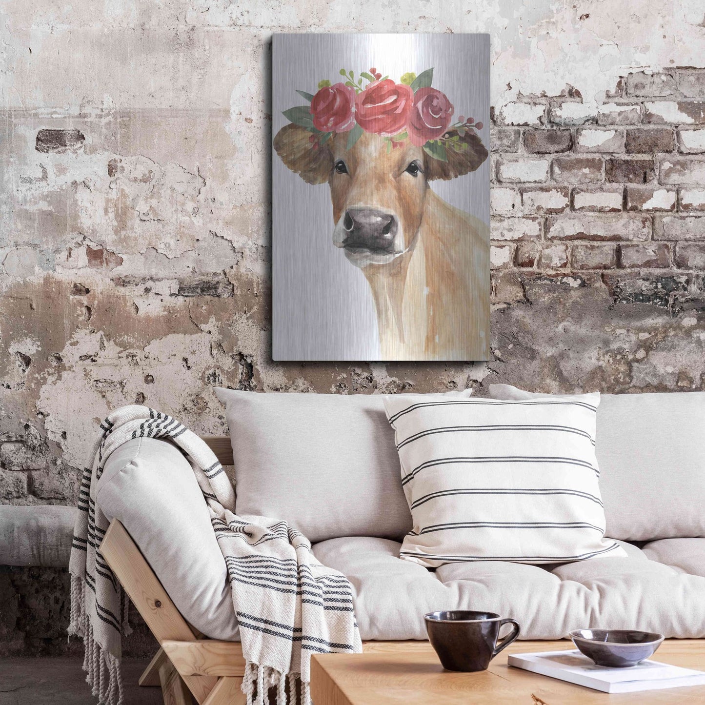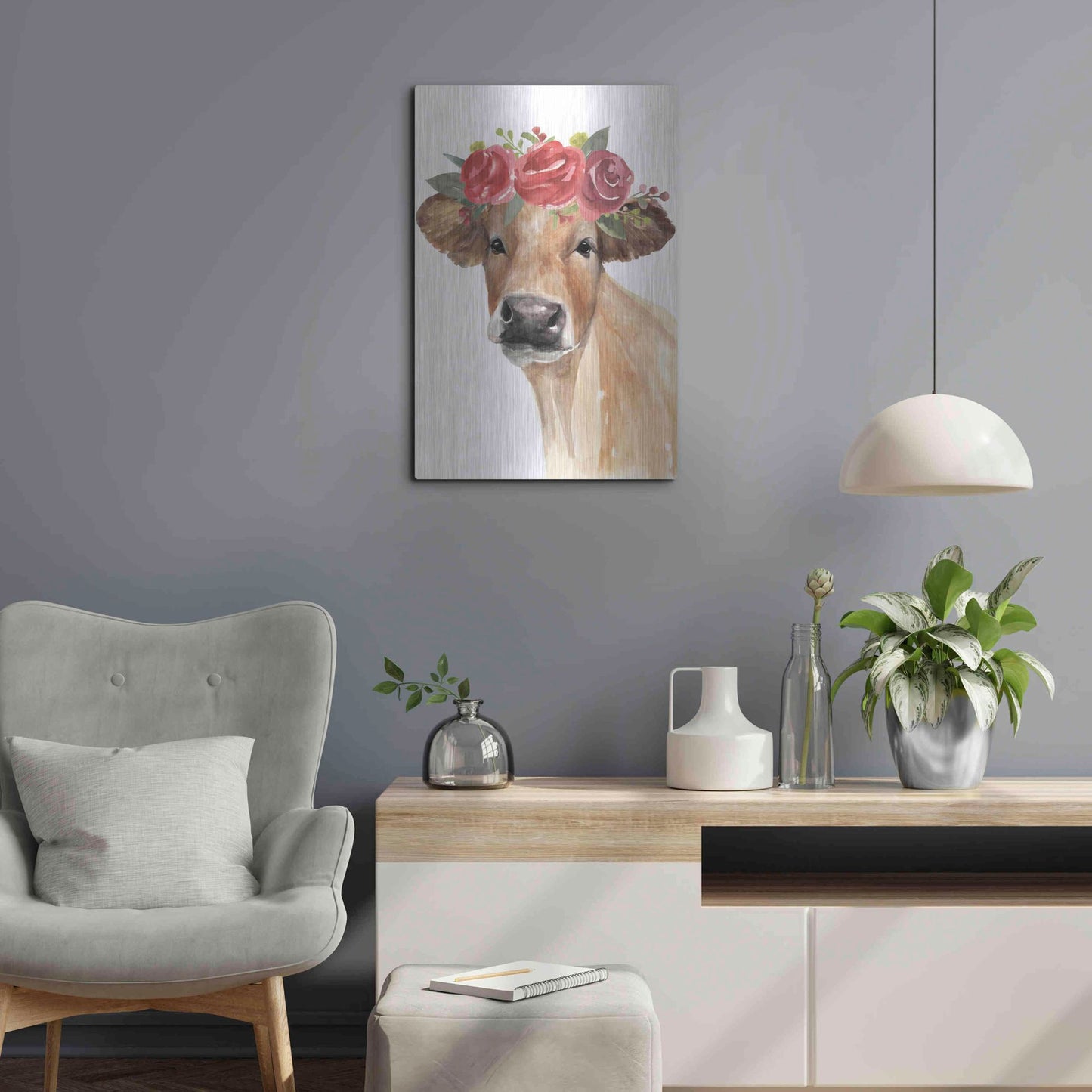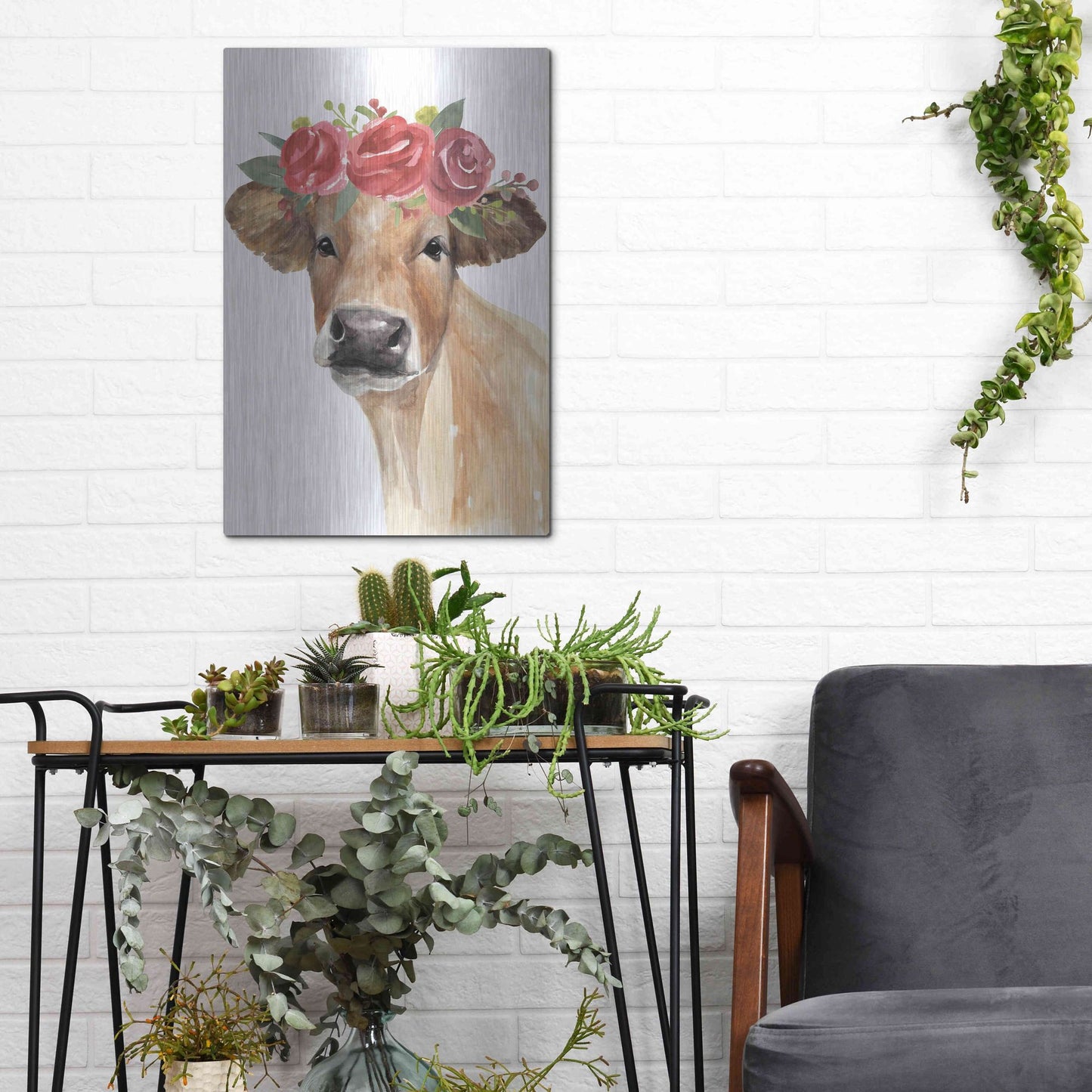 'Flowered Cow II' by Annie Warren, Metal Wall Art