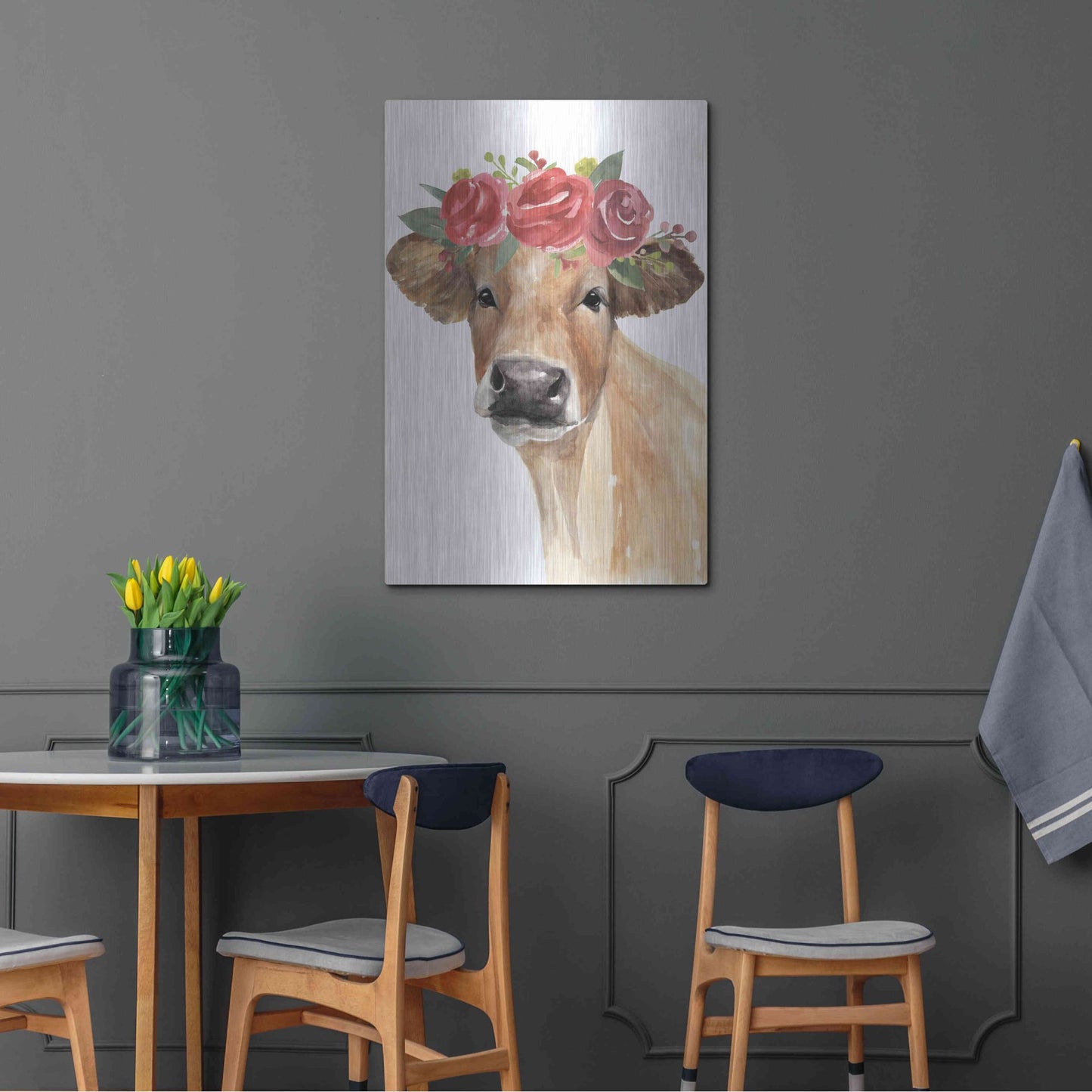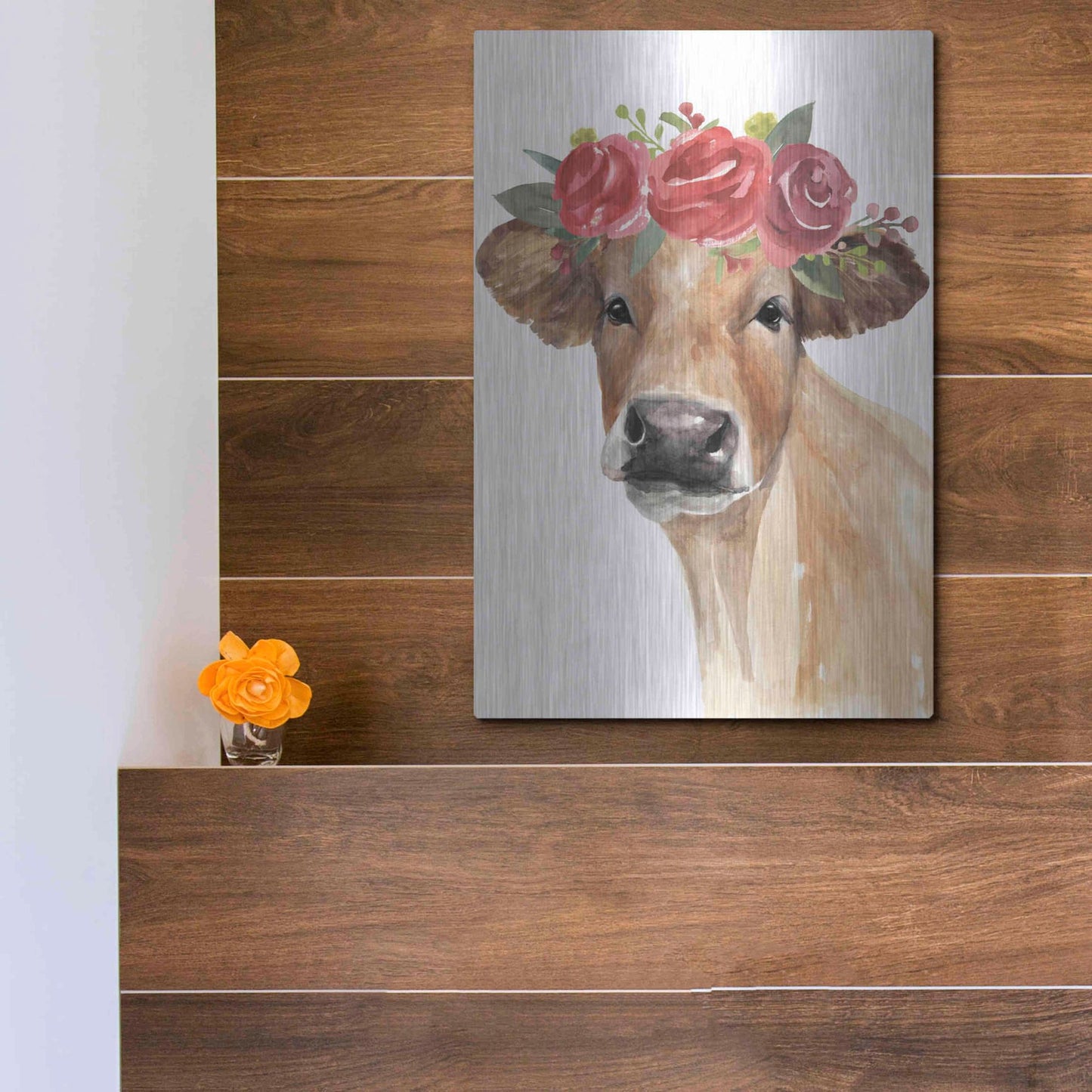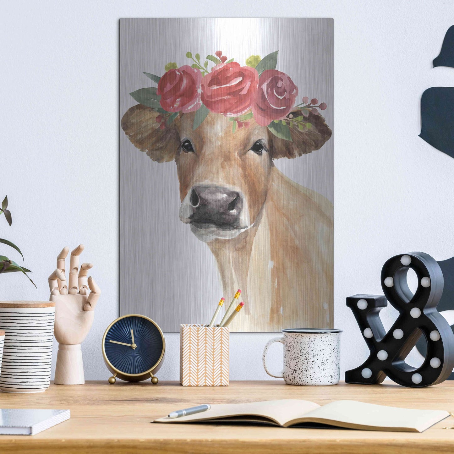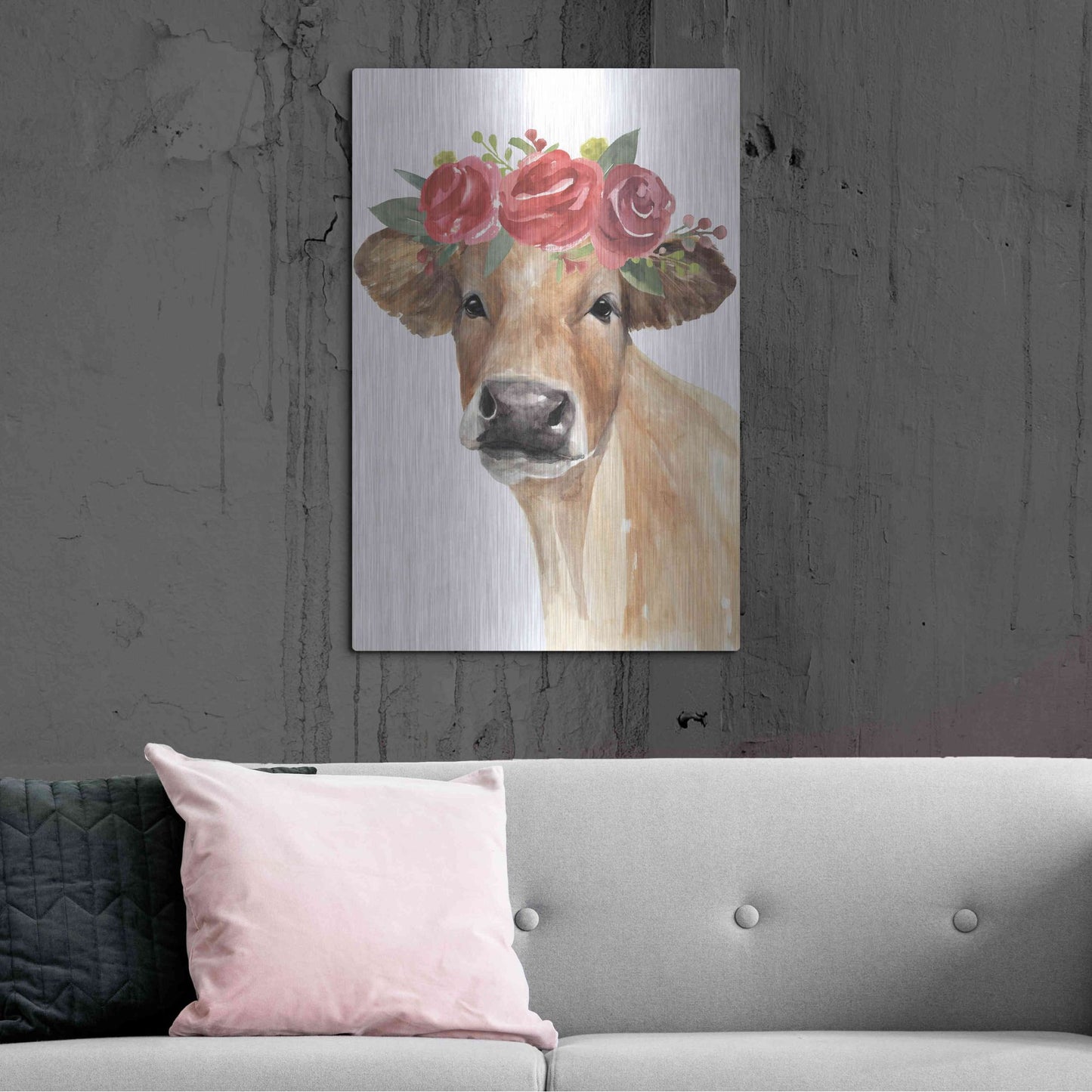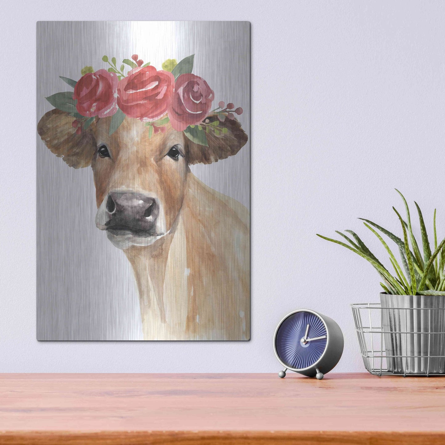 'Flowered Cow II' by Annie Warren, Metal Wall Art