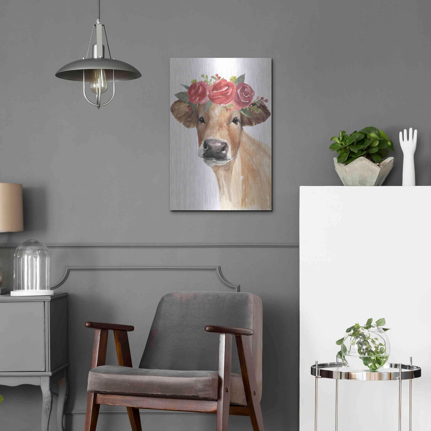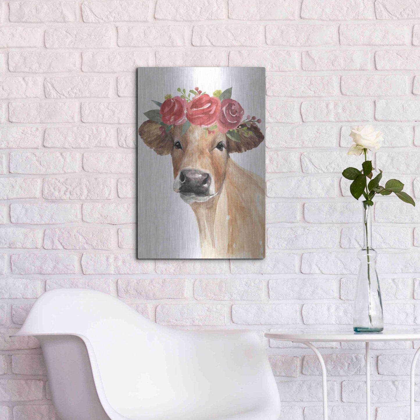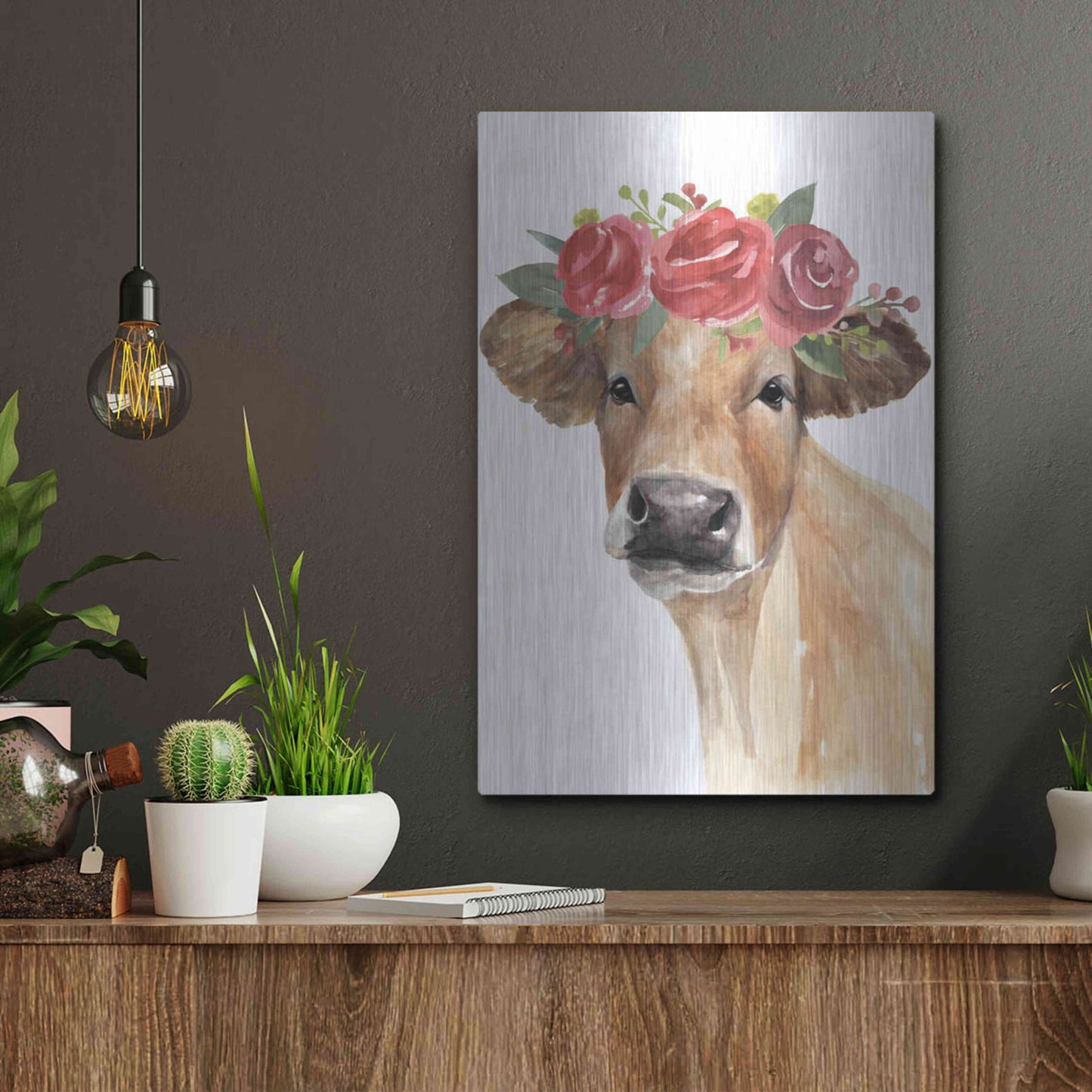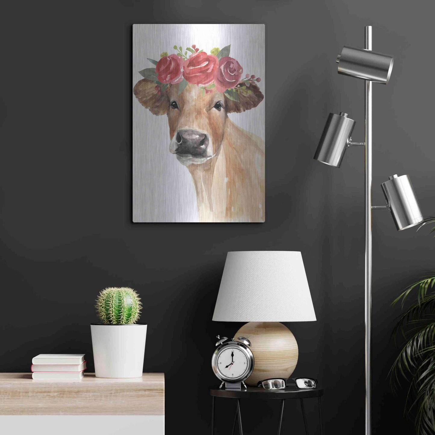'Flowered Cow II' by Annie Warren, Metal Wall Art