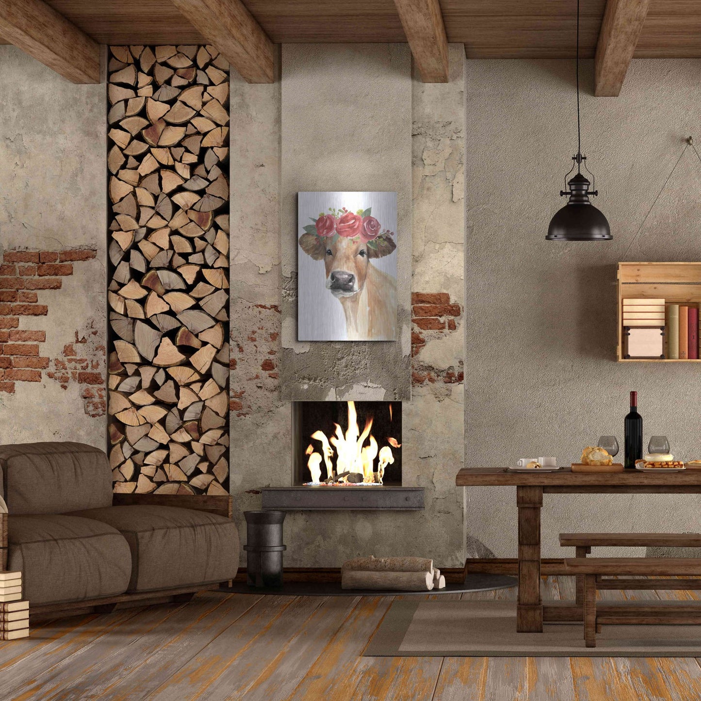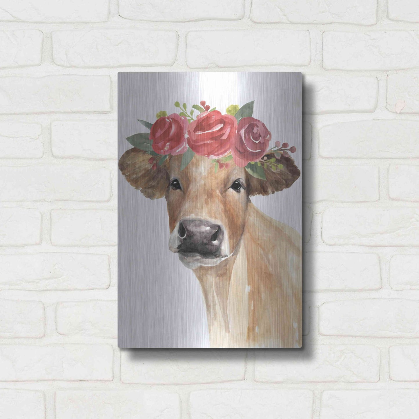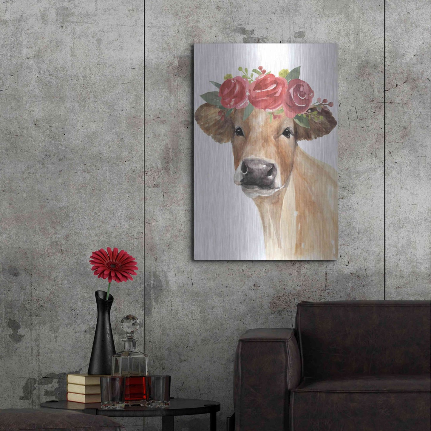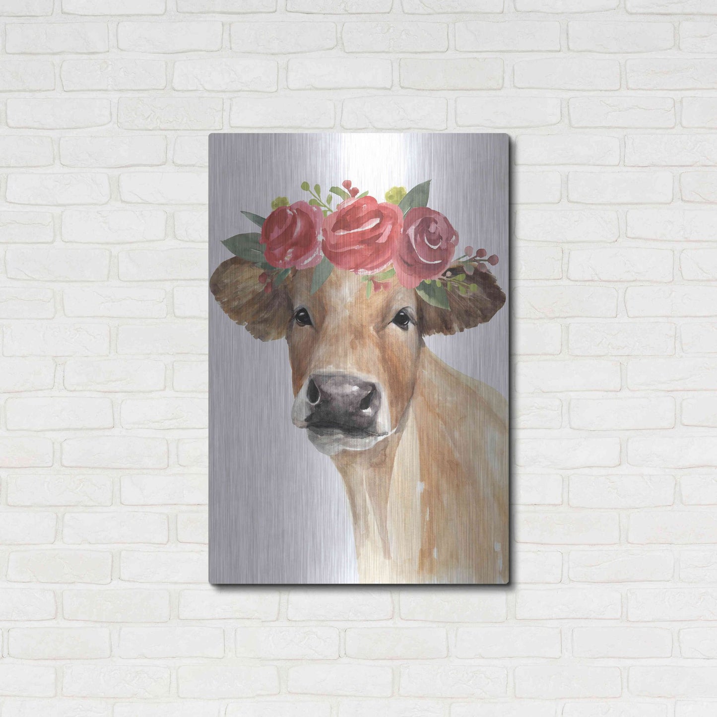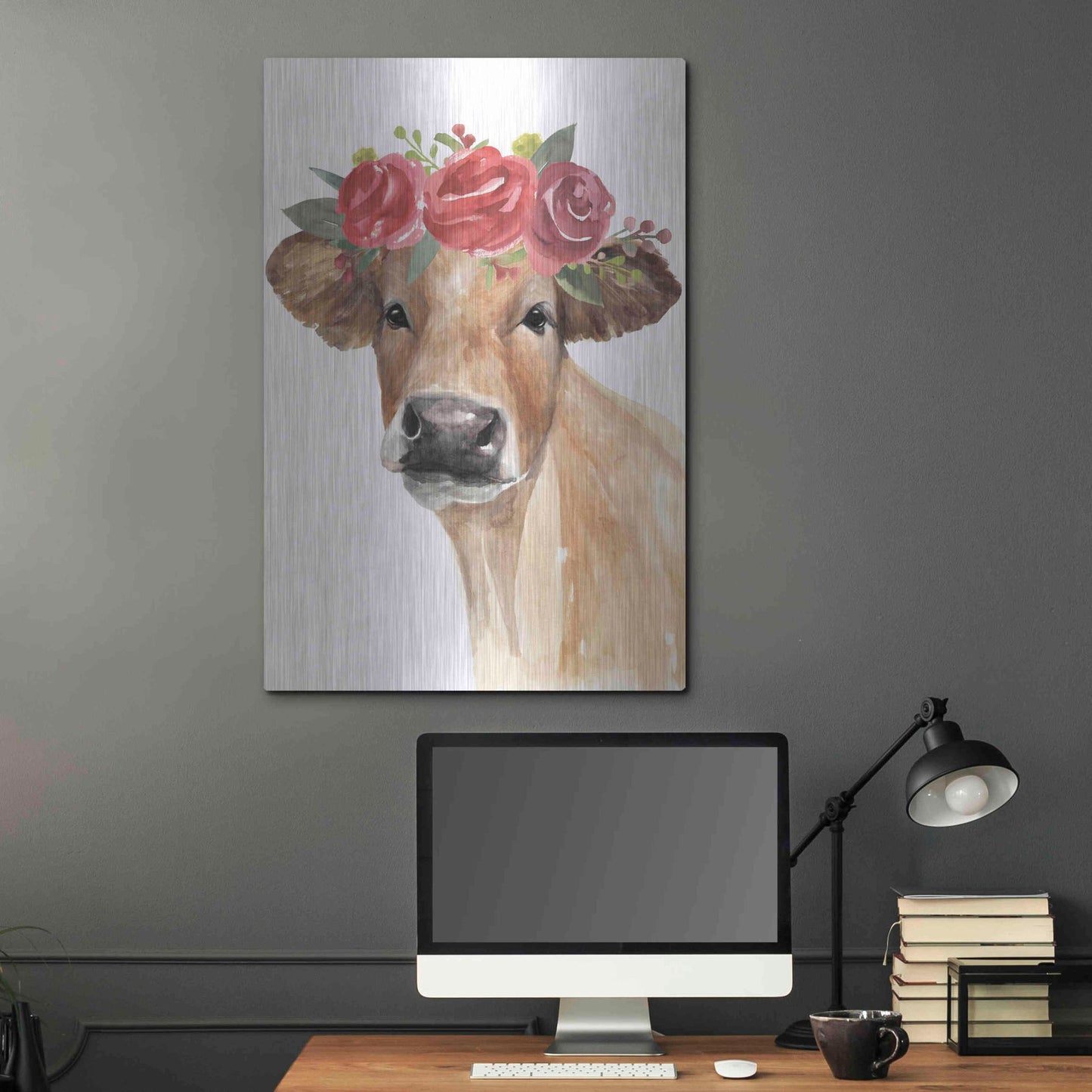 'Flowered Cow II' by Annie Warren, Metal Wall Art