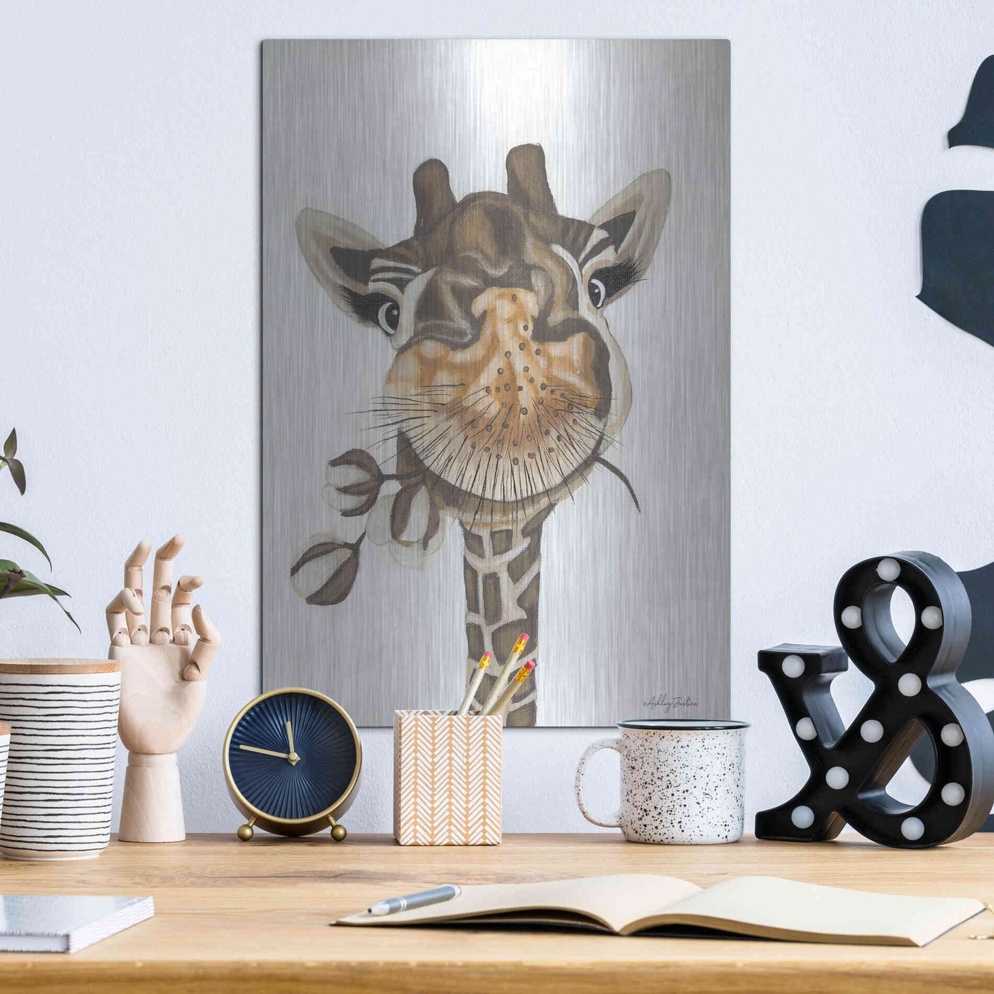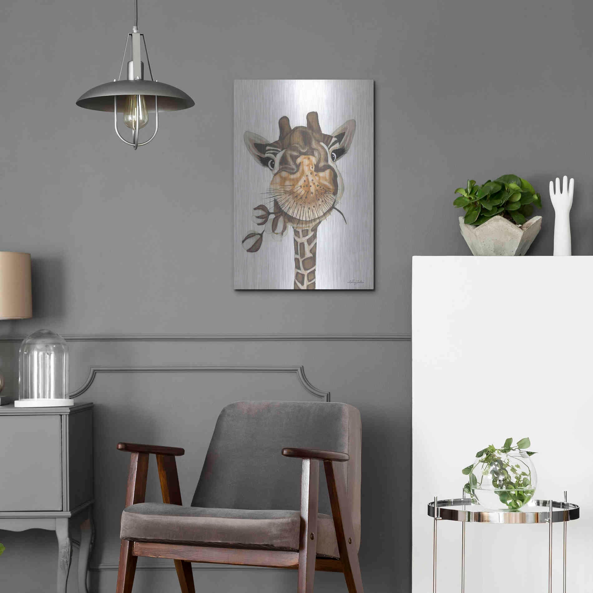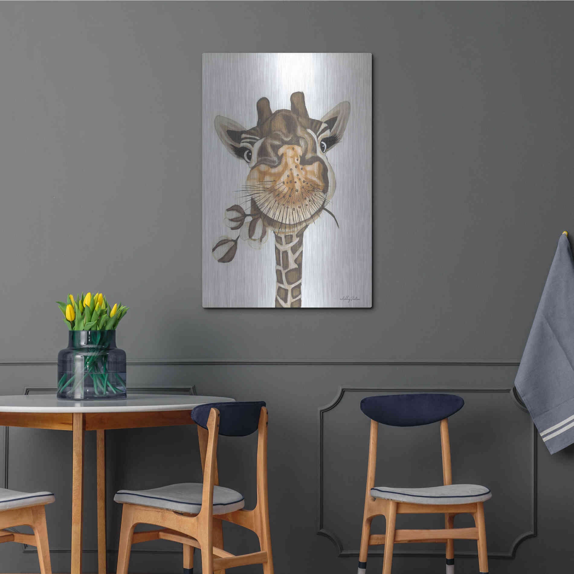 Luxe Metal Art 'Giraffe with Cotton' by Ashley Justice, Metal Wall Art
