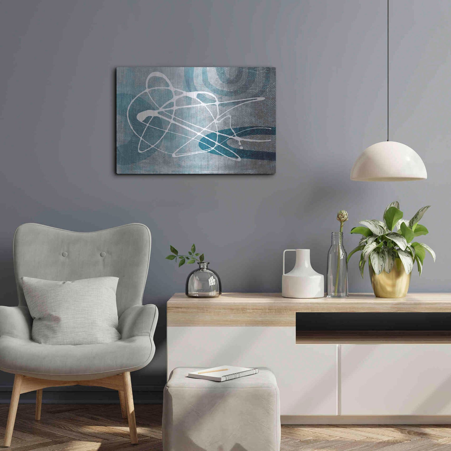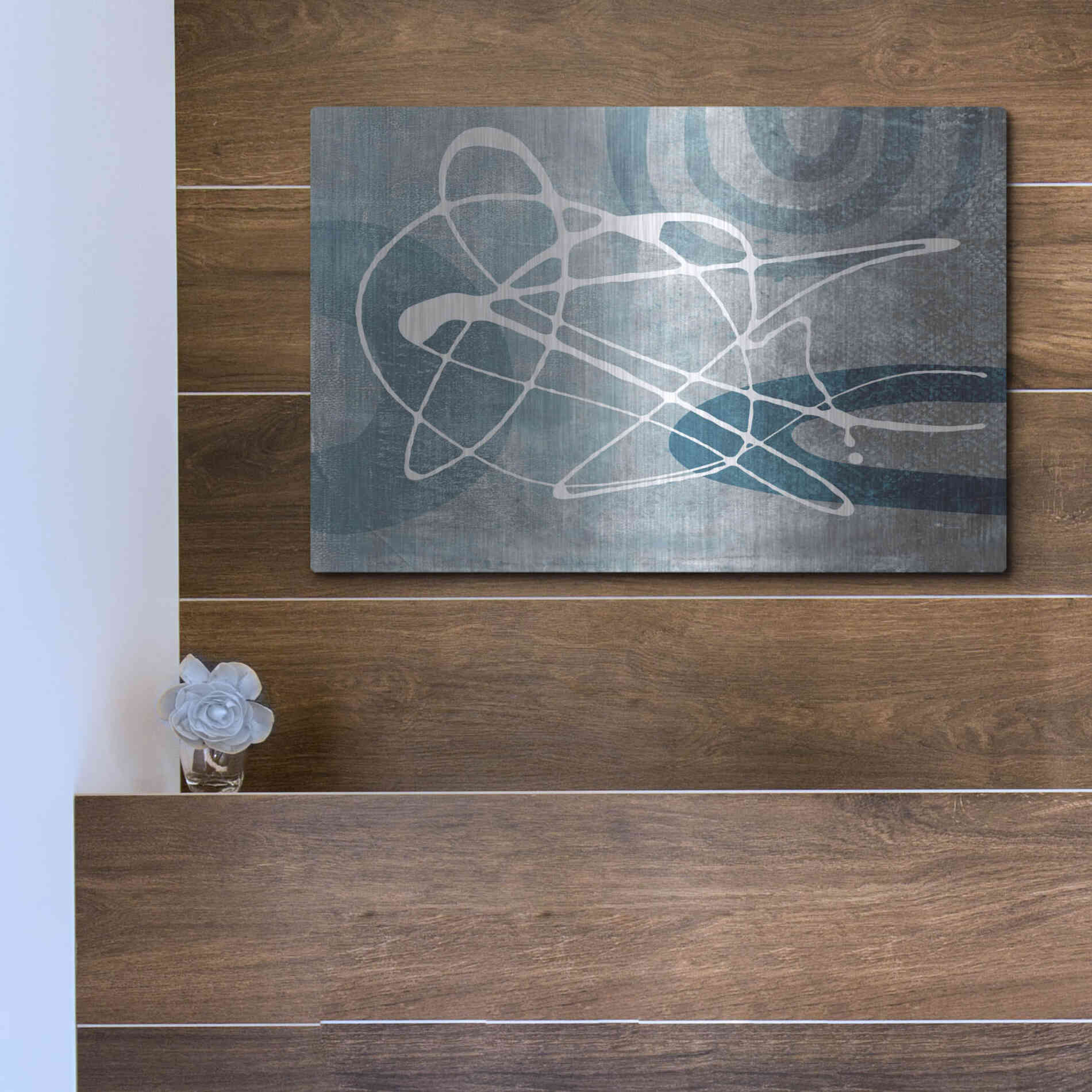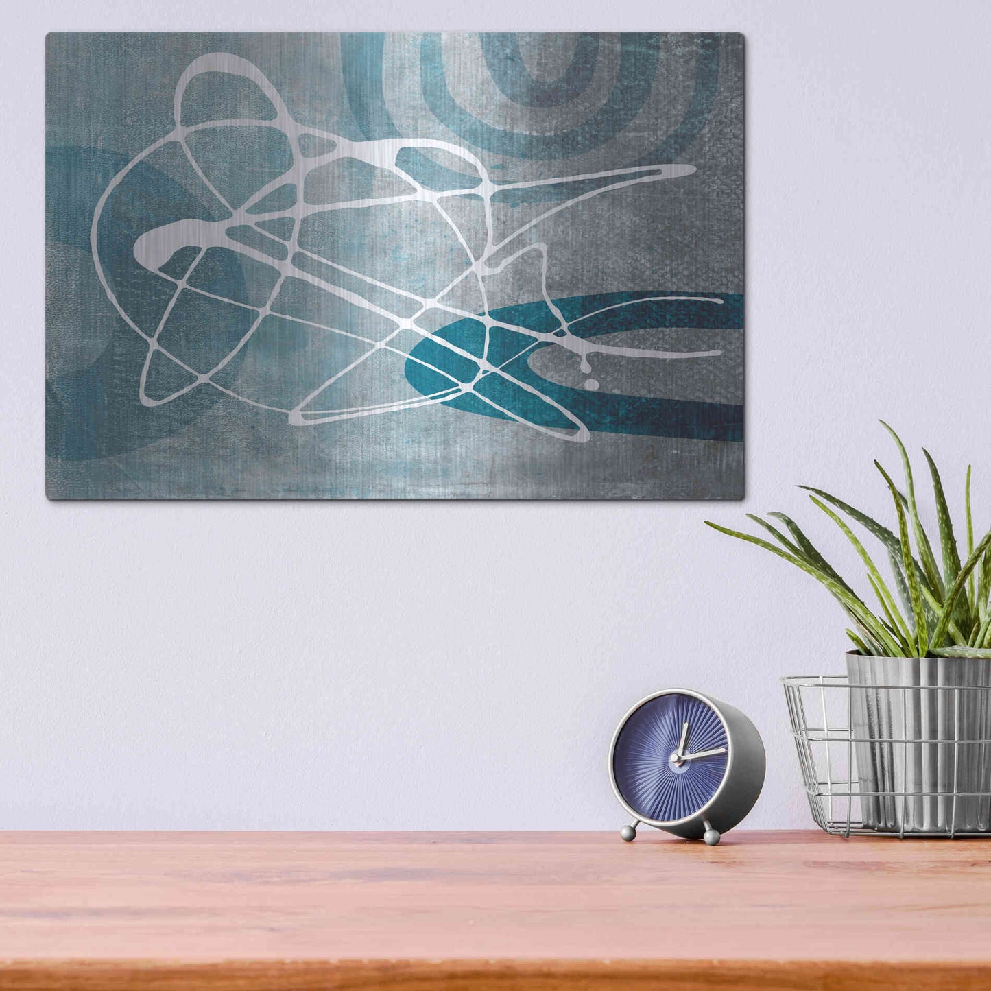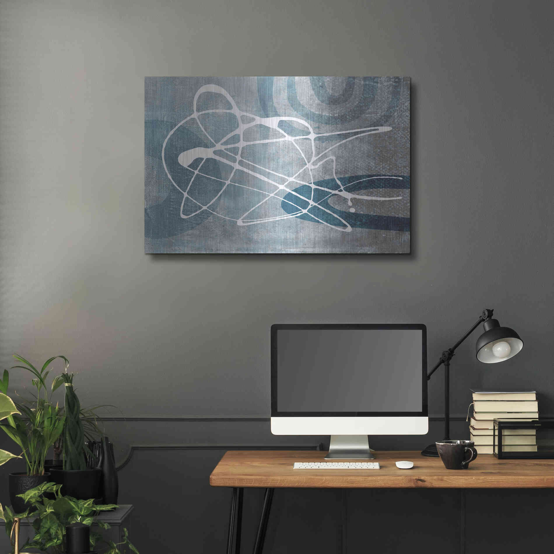 Luxe Metal Art 'Growing Energy' by Andrea Haase, Metal Wall Art. Featuring textured line art in shades of blue and grey .