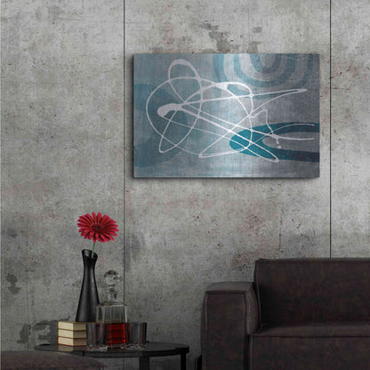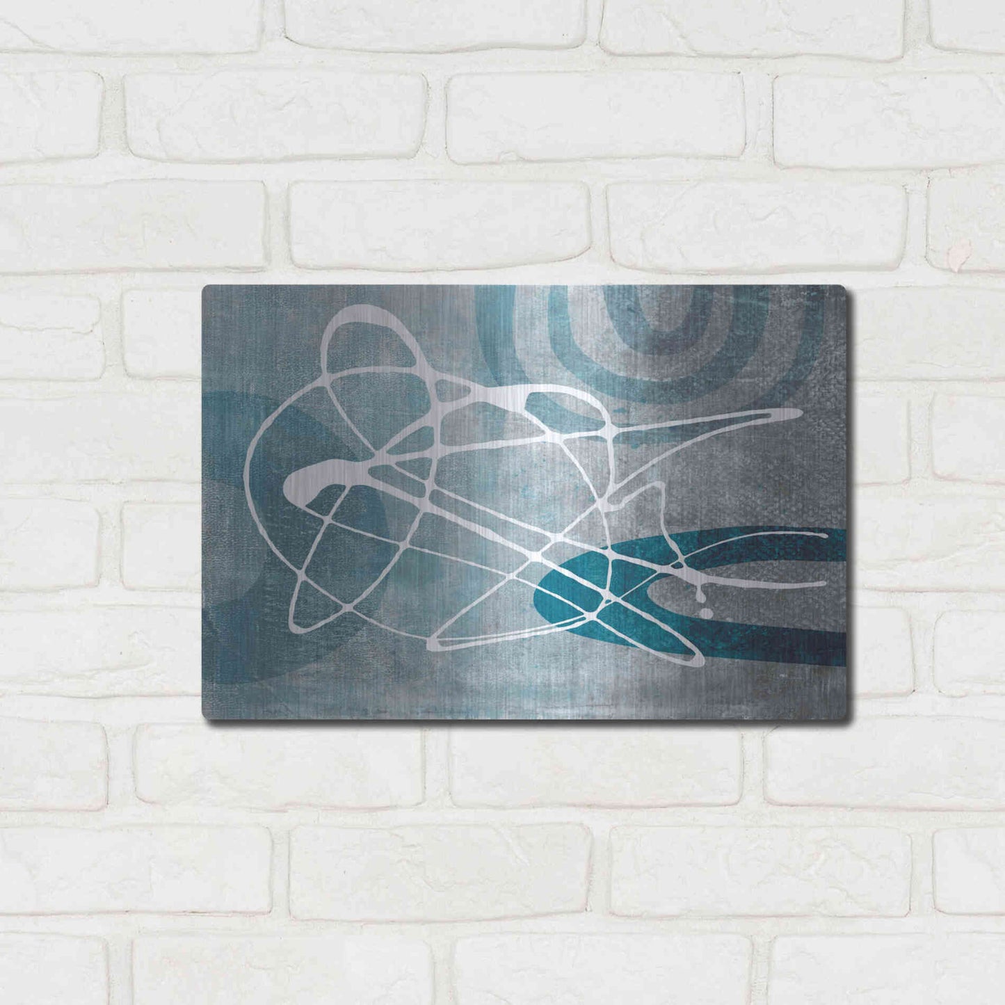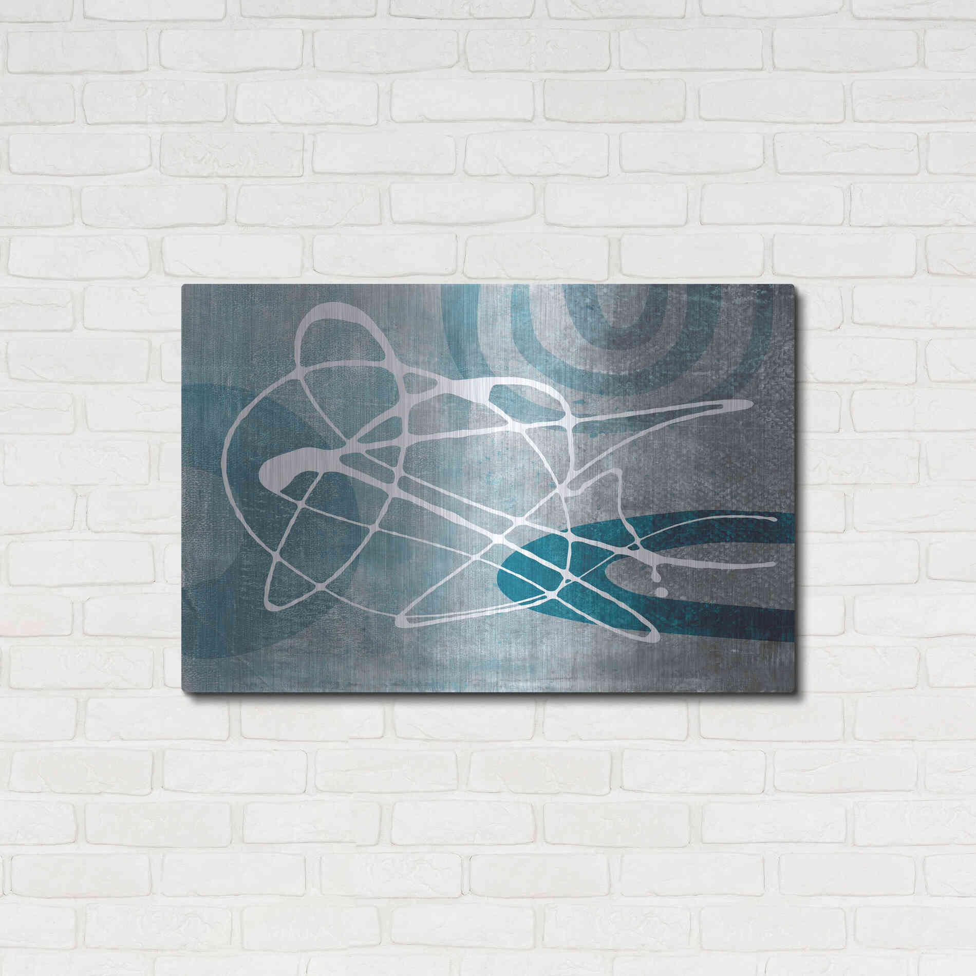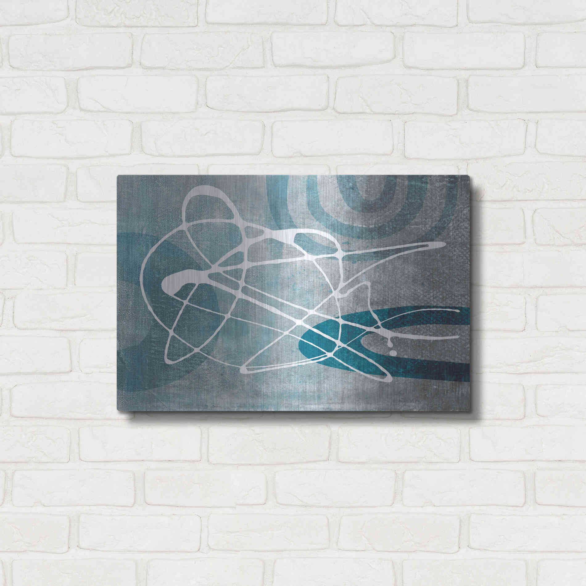 Luxe Metal Art 'Growing Energy' by Andrea Haase, Metal Wall Art. Featuring textured line art in shades of blue and grey .