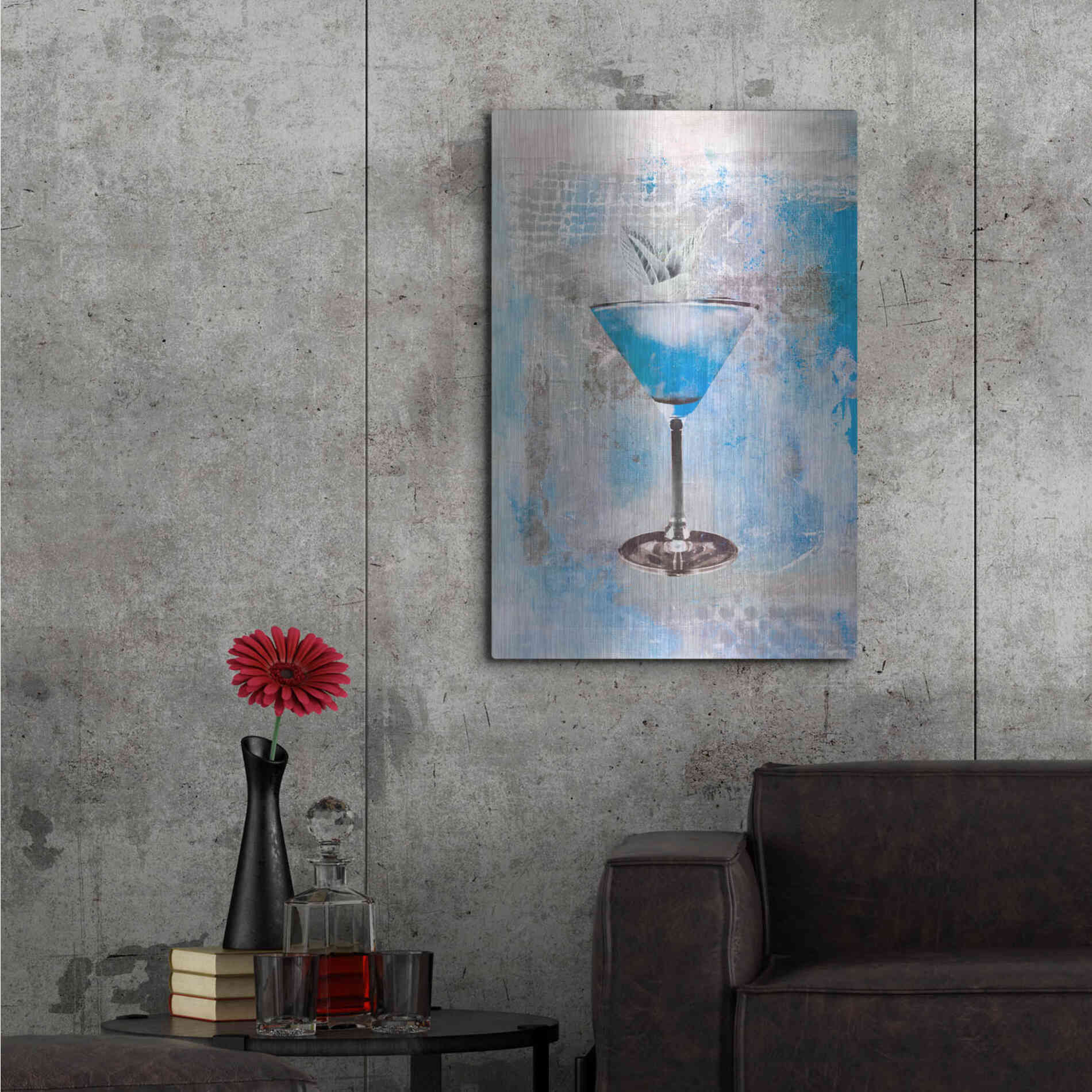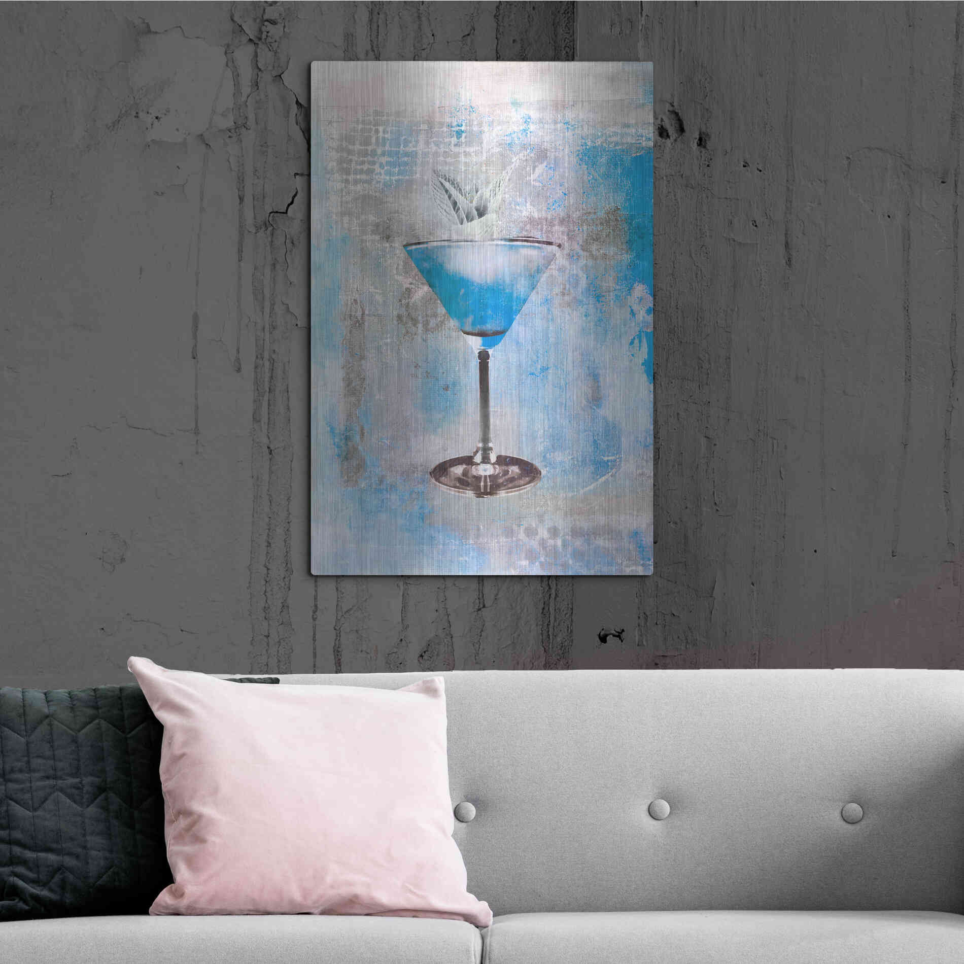 Luxe Metal Art 'Happy Sundowner' by Andrea Haase, Metal Wall Art. Featuring mixed media art in shades of blue featuring a summer cocktail .