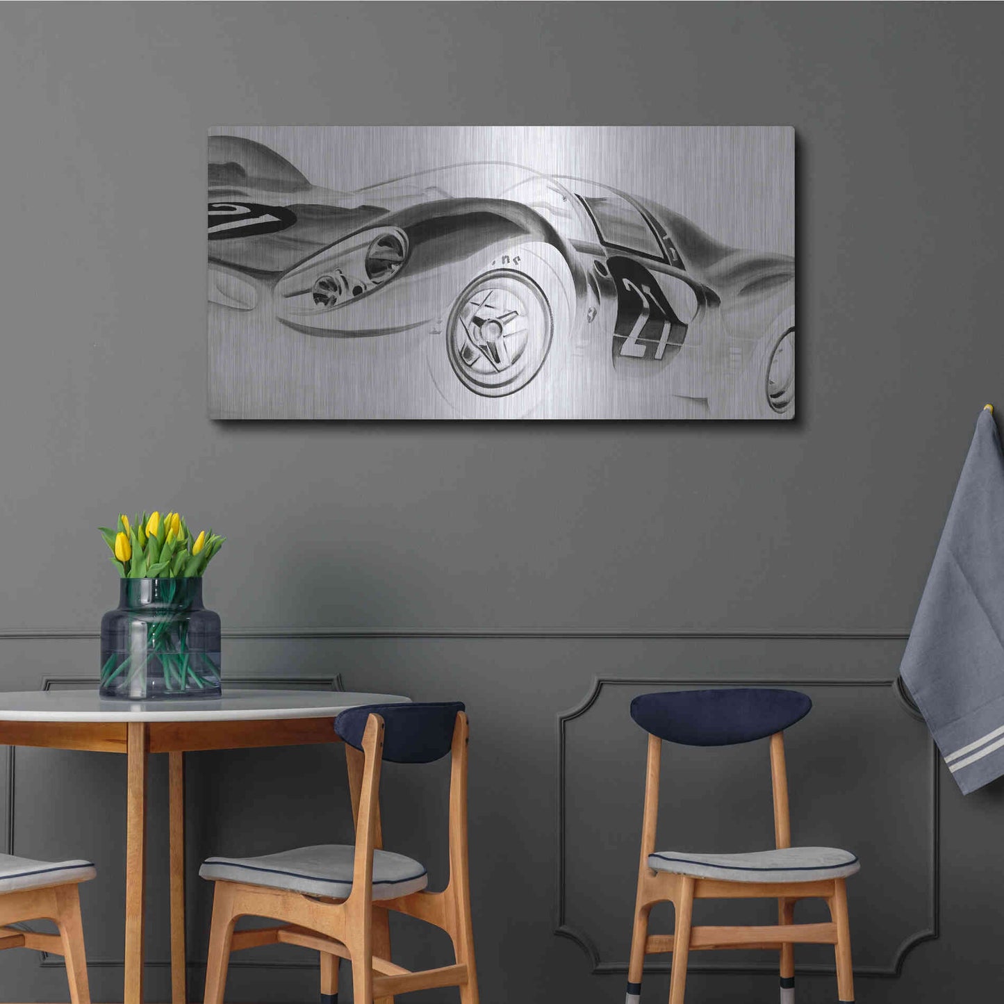 Luxe Metal Art 'Inverted Vintage Racing II' by Ethan Harper, Metal Wall Art Ethan Harper earned his Bachelor of Fine Arts from Virginia Commonwealth University where he majored in Scientific Medical Illustration. This, coupled with his training in classical oil painting and illustration background, allows him to utilize a variety of different techniques and styles. Drawing inspiration from his love of science, architecture, and the impressionist movement, Ethan has developed a fondness for Plein Air landscape painting, working in both watercolor and oils. Luxe Metal Art is proud to offer you our luxury metal prints. These prints bring the most unique value to your home by using the highest quality images printed on a lustrous metal. Metal wall art delivers a truly distinct shine and light play that will dazzle your guests and create a statement in your home or office. In addition to its aesthetic benefits, our metal prints are moisture resistant, pinch proof, durable, and can be cleaned with mild household cleaning products. These practiful features make metal wall art great for homes and high traffic businesses.