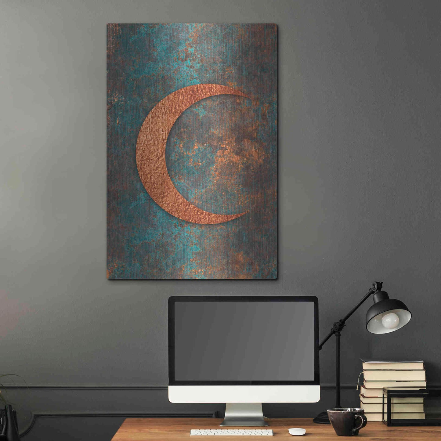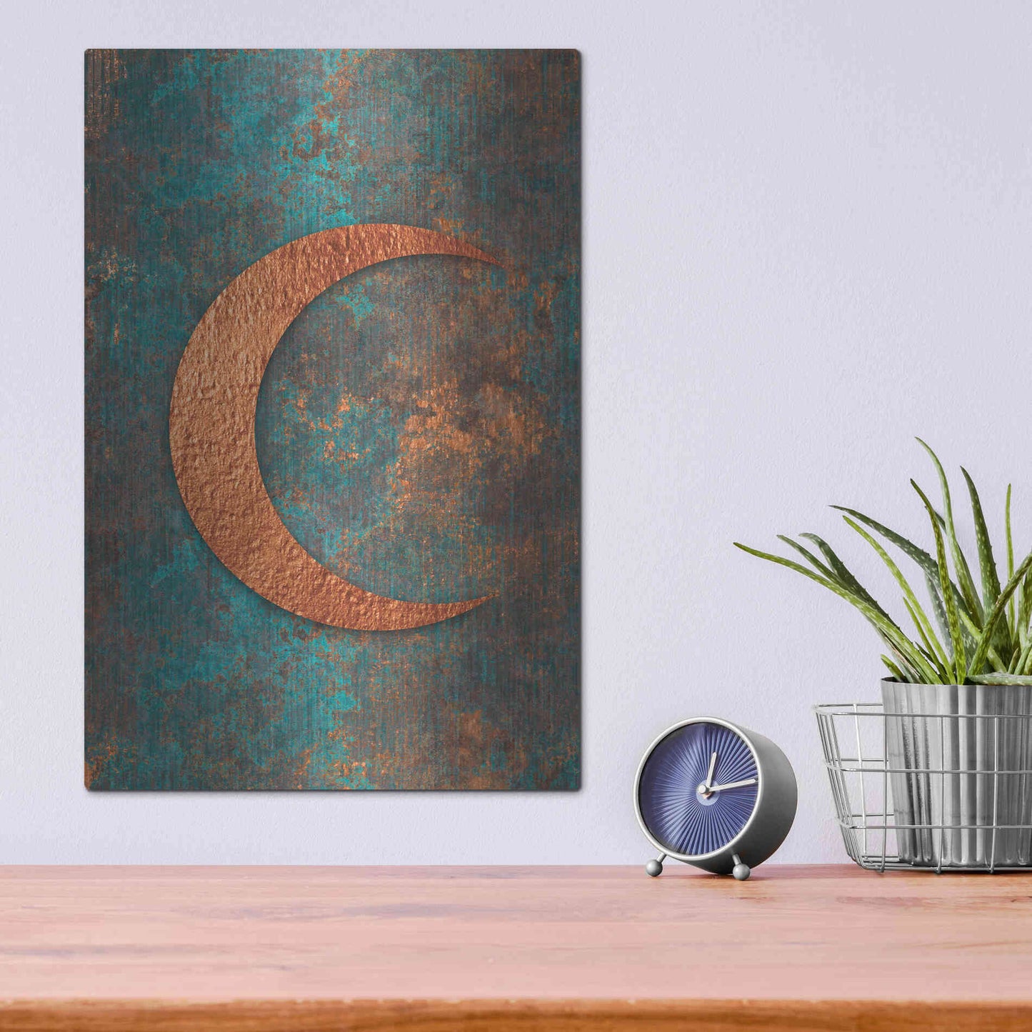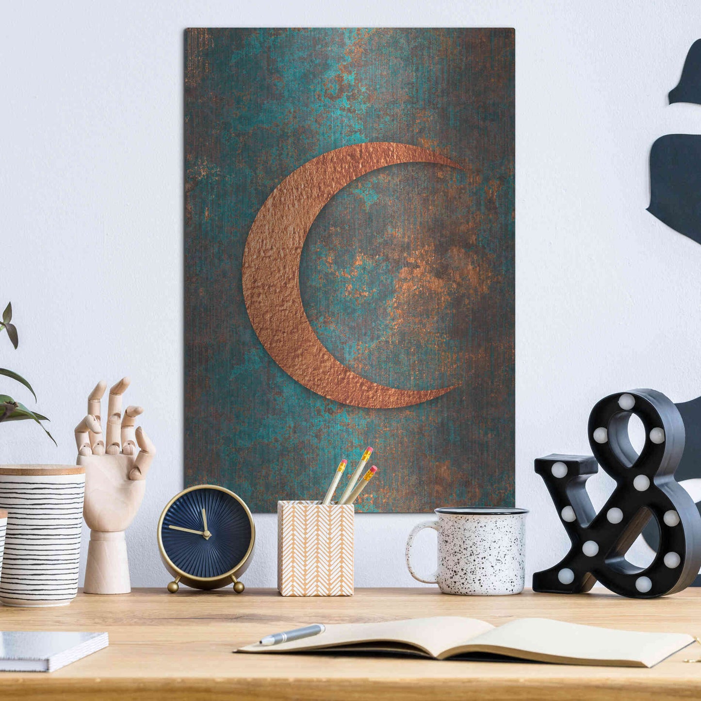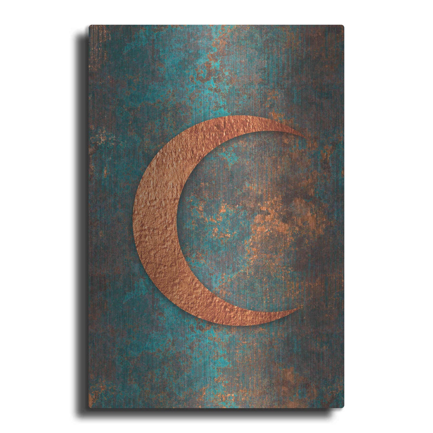 Luxe Metal Art 'Moon Symbiosis Of Rust And Copper' by Andrea Haase, Metal Wall Art. Featuring tarnished and rusty copper metal texture with shiny copper moon .