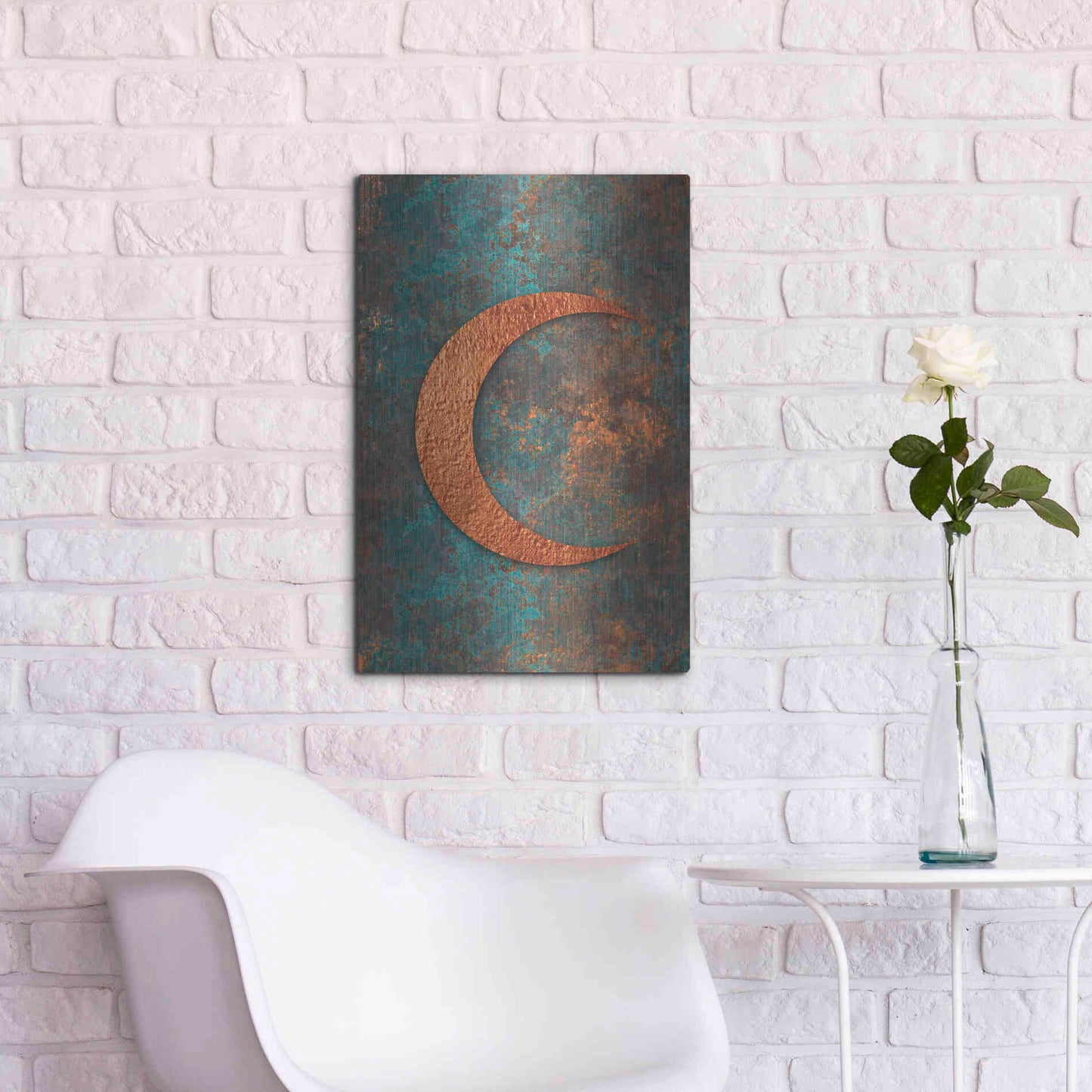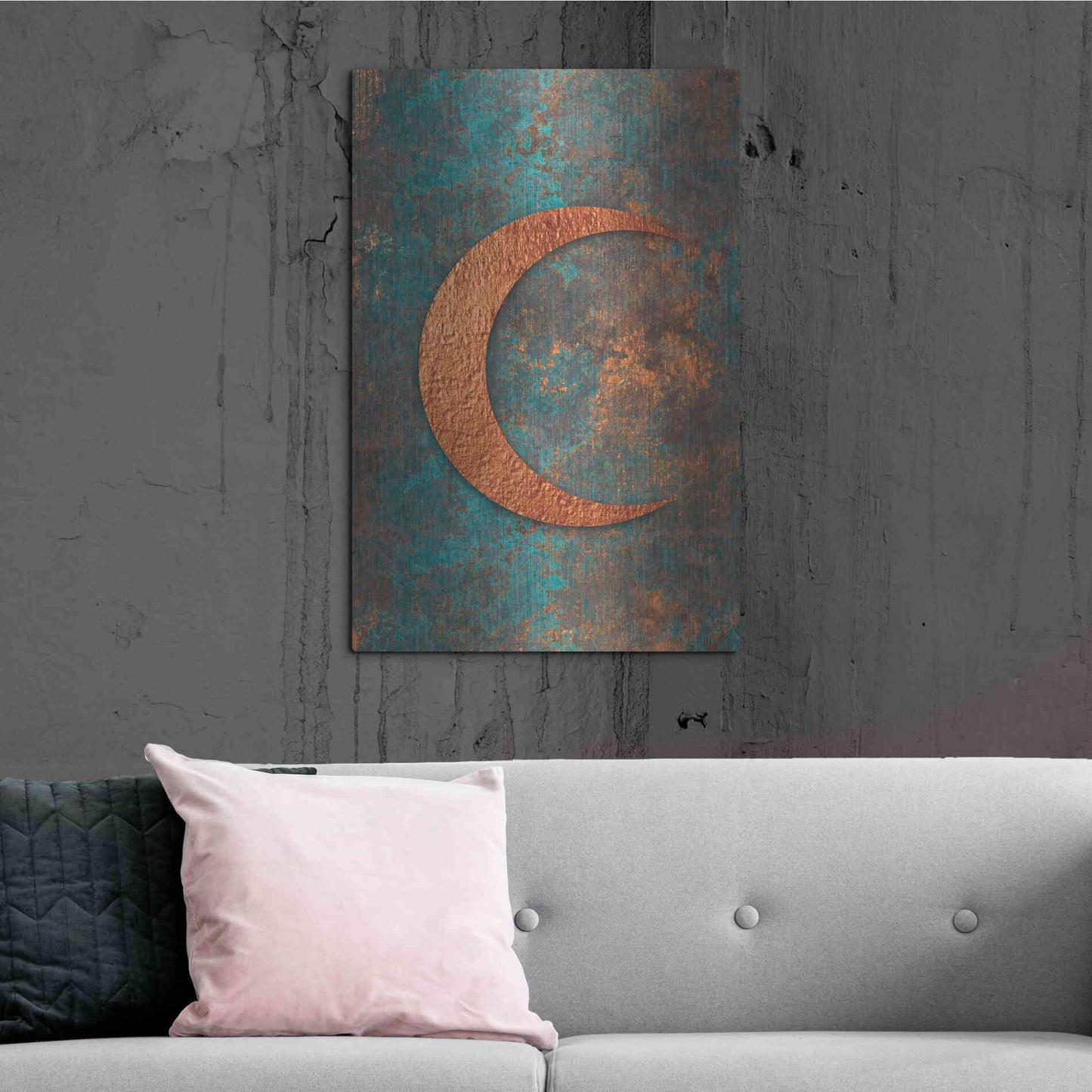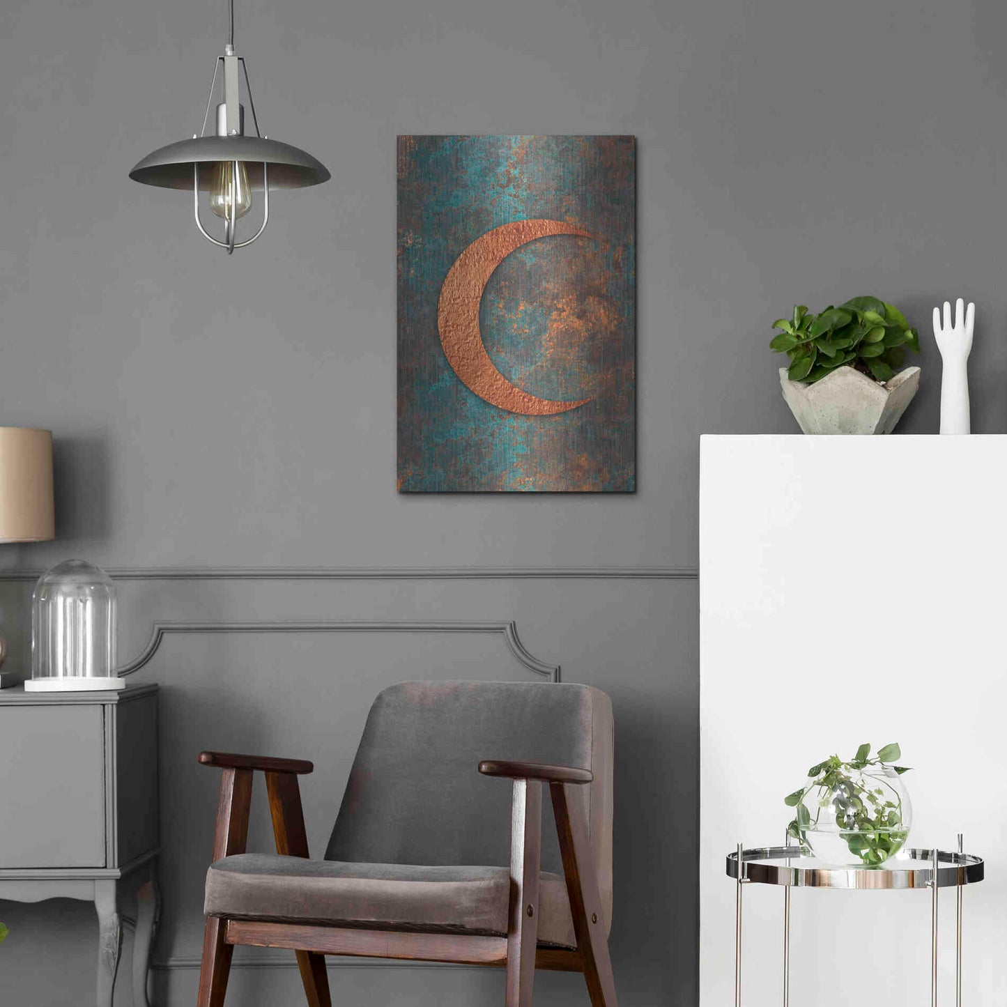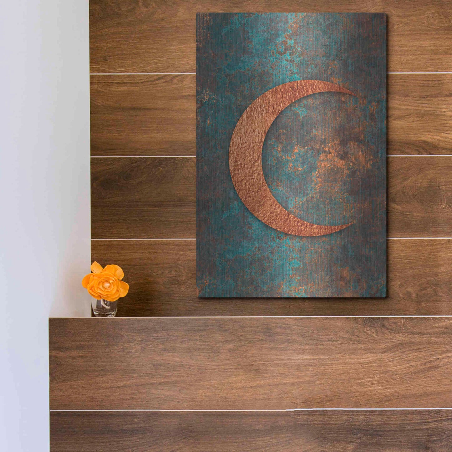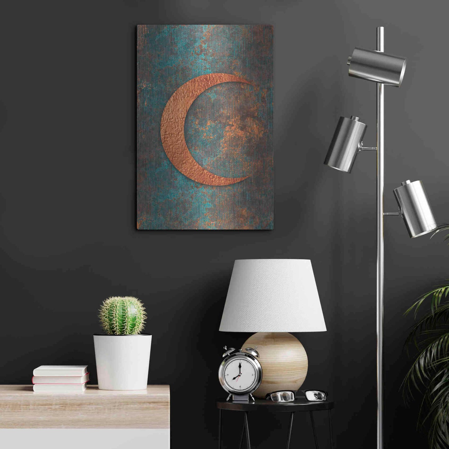 Luxe Metal Art 'Moon Symbiosis Of Rust And Copper' by Andrea Haase, Metal Wall Art. Featuring tarnished and rusty copper metal texture with shiny copper moon .