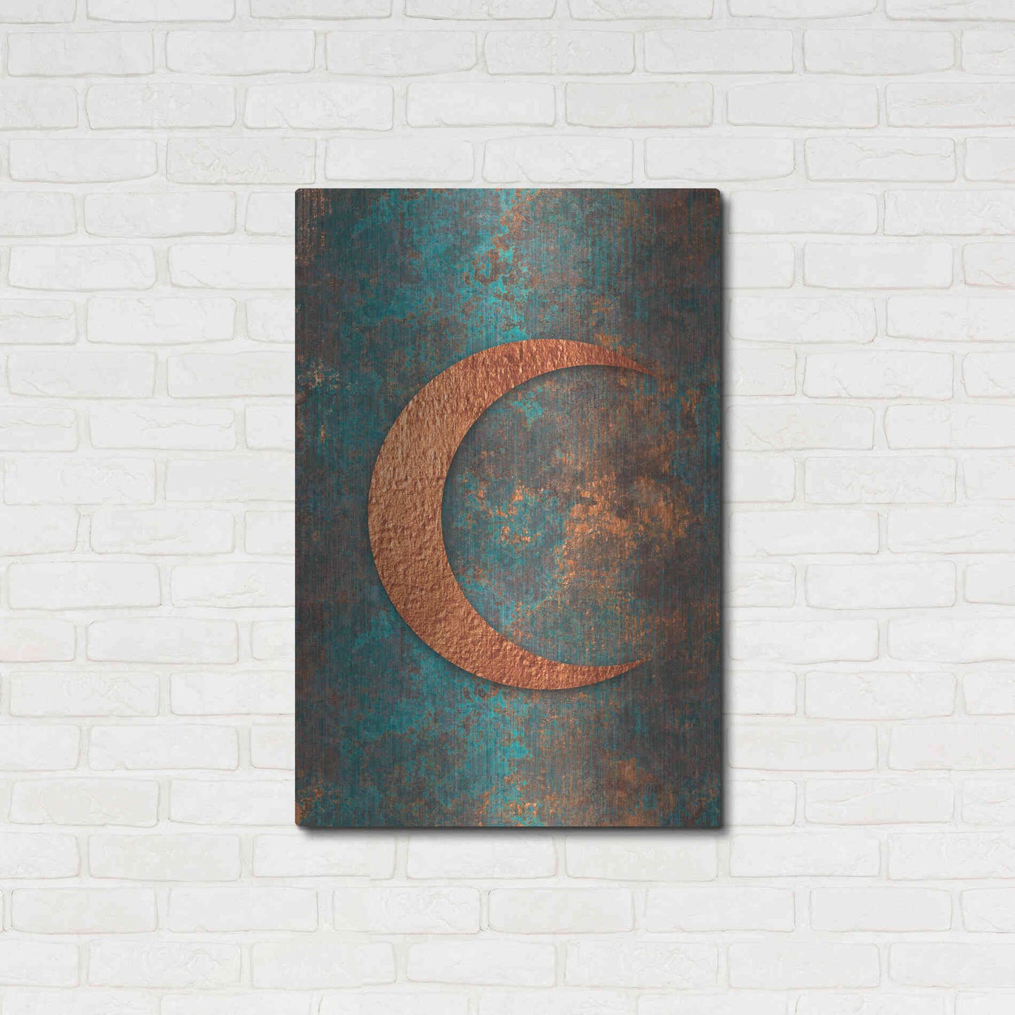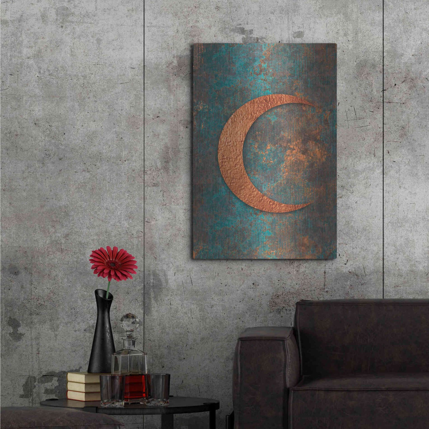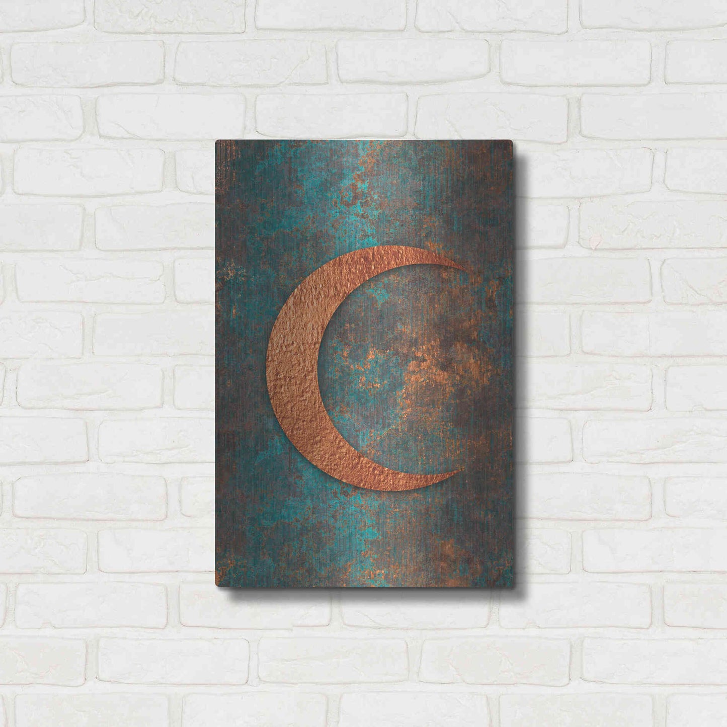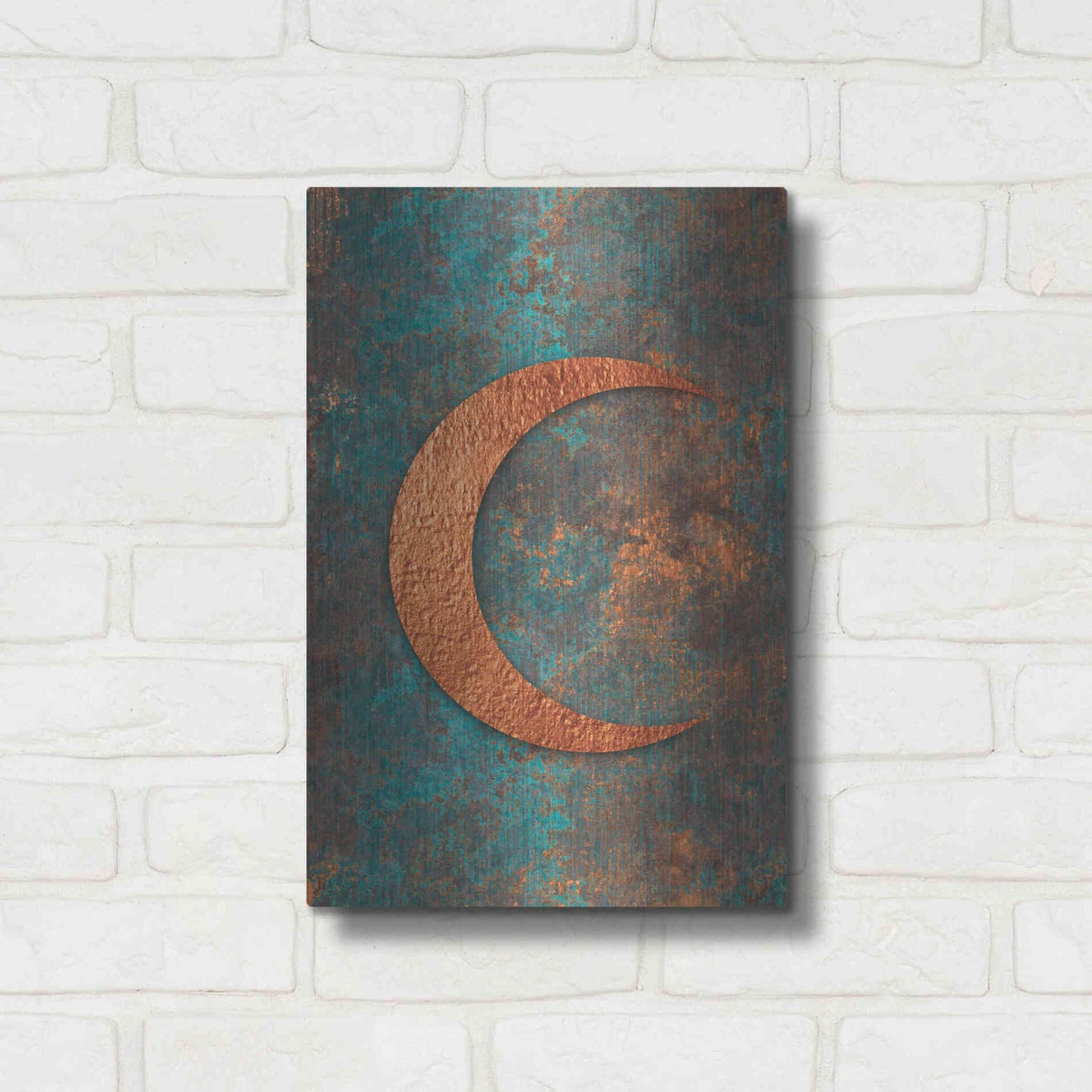 Luxe Metal Art 'Moon Symbiosis Of Rust And Copper' by Andrea Haase, Metal Wall Art. Featuring tarnished and rusty copper metal texture with shiny copper moon .