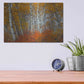 "Morning Aspens" by Jesse Estes. Featuring fall foliage in a small aspen grove. Jesse Estes grew up in the Pacific Northwest, a region known for its natural beauty. Preferring to take his photographs at dawn or sunset when the light is at its best and particularly enjoys photographing harsh weather conditions because of the mood & drama that it captures. Jesse's photography has been featured and won contests in such magazines as Islands Magazine & Outdoor Photographer. Bring a touch of something unique with Aluminum Wall Art from Luxe Metal Art for your home or business. UV Printed on 1/4 inch brushed aluminum panel and arrives ready to hang right out of the box. The shimmer of the natural aluminum gives the art a truly unique feel that can't be duplicated. Floating just over half an inch of the wall your frameless art piece will feel light and airy and truly pop.
