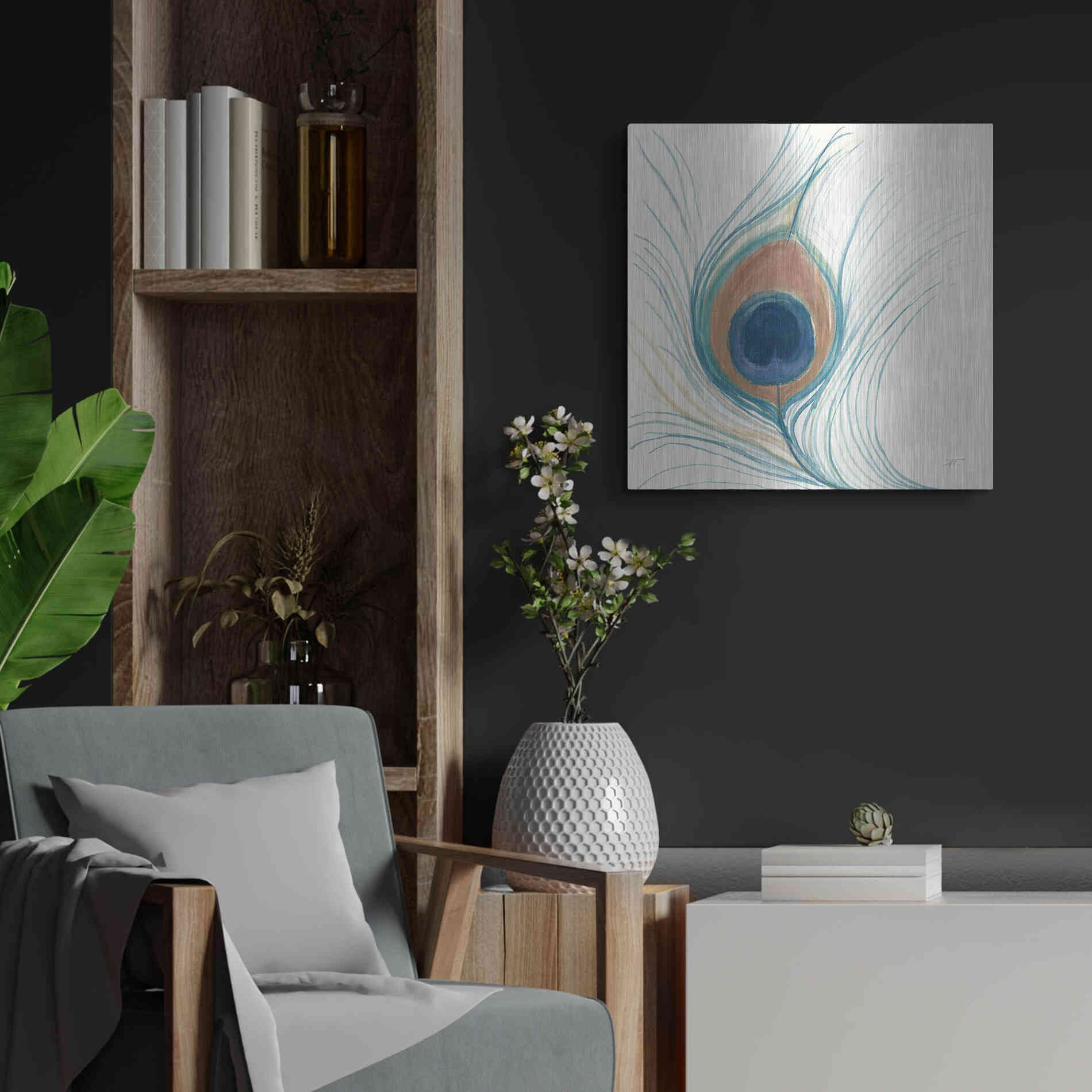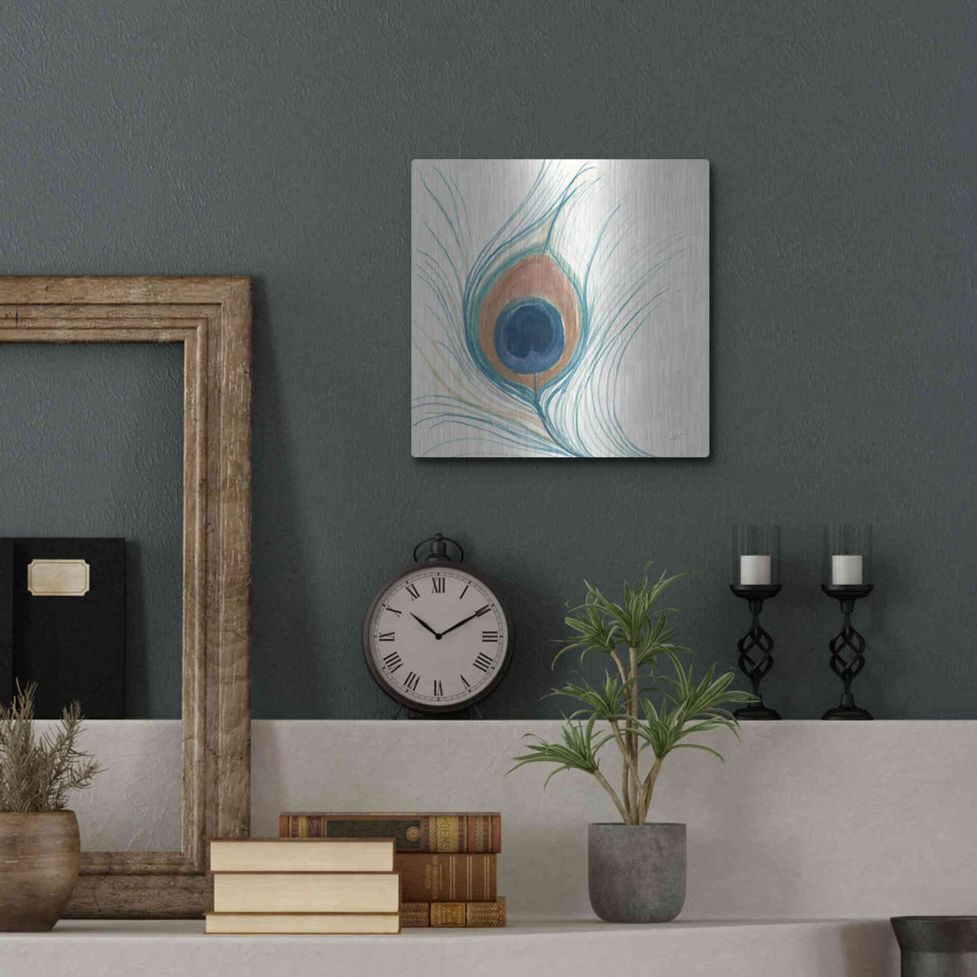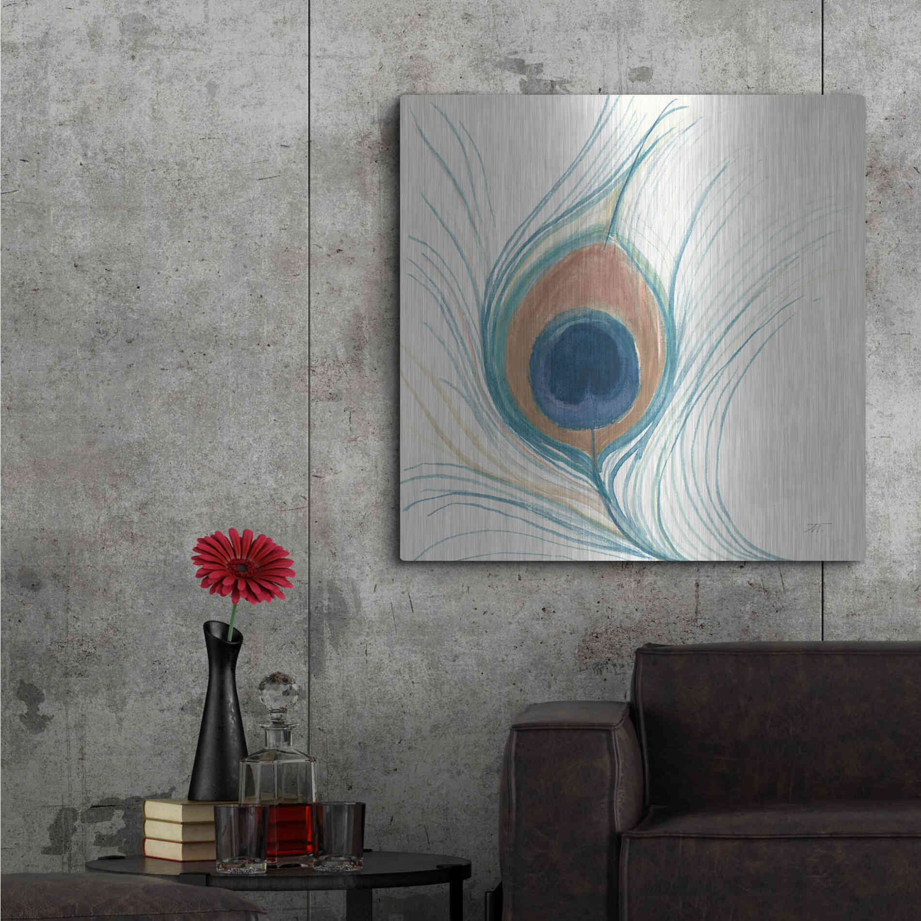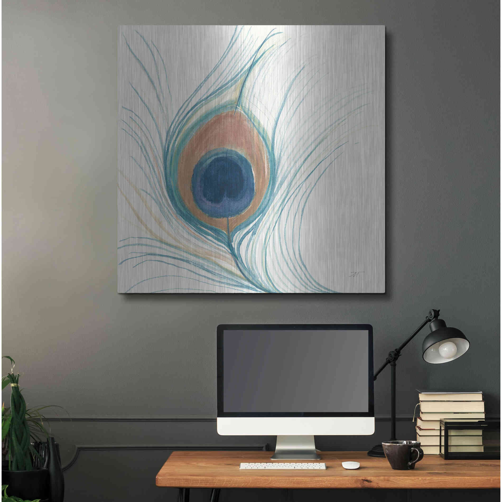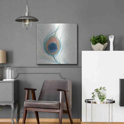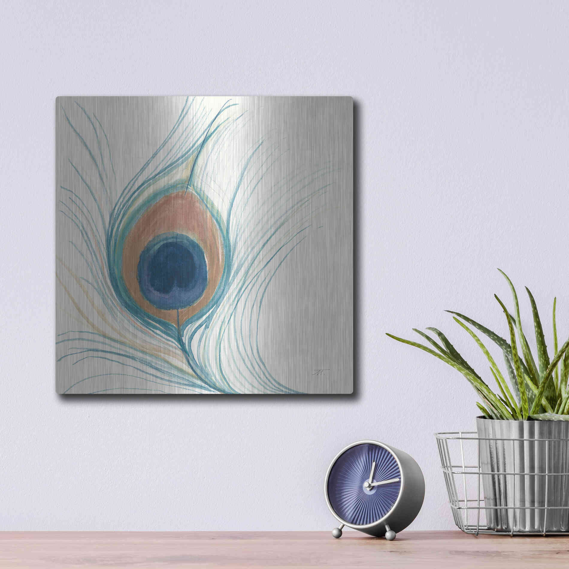 'Peacock Feather II Blue' by Miranda Thomas, Metal Wall Art