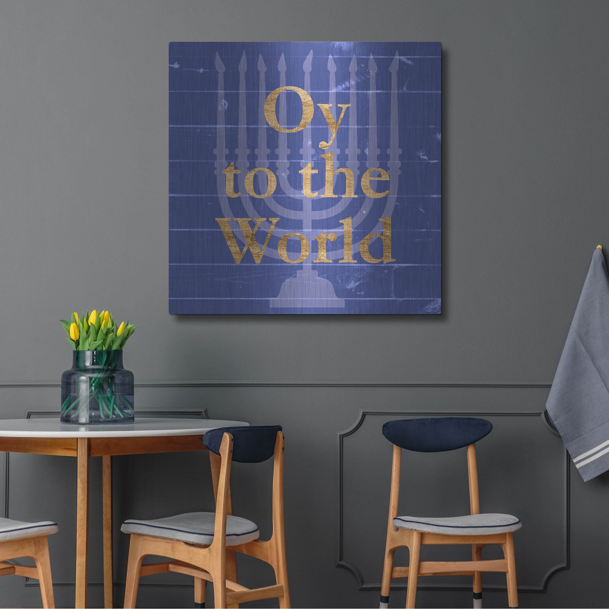 Punny Hanukkah Collection E' by Alicia Ludwig Alicia is always open to learning new techniques and experimenting with many different forms of media - her favorites being watercolor, encaustic, and photography. Her artwork is greatly self-fulfilling, but she hopes it brings as much happiness to others as well. Luxe Metal Art is proud to offer you our luxury metal prints. These prints bring the most unique value to your home by using the highest quality images printed on a lustrous metal. Metal wall art delivers a truly distinct shine and light play that will dazzle your guests and create a statement in your home or office. In addition to its aesthetic benefits, our metal prints are moisture resistant, pinch proof, durable, and can be cleaned with mild household cleaning products. These practiful features make metal wall art great for homes and high traffic businesses.