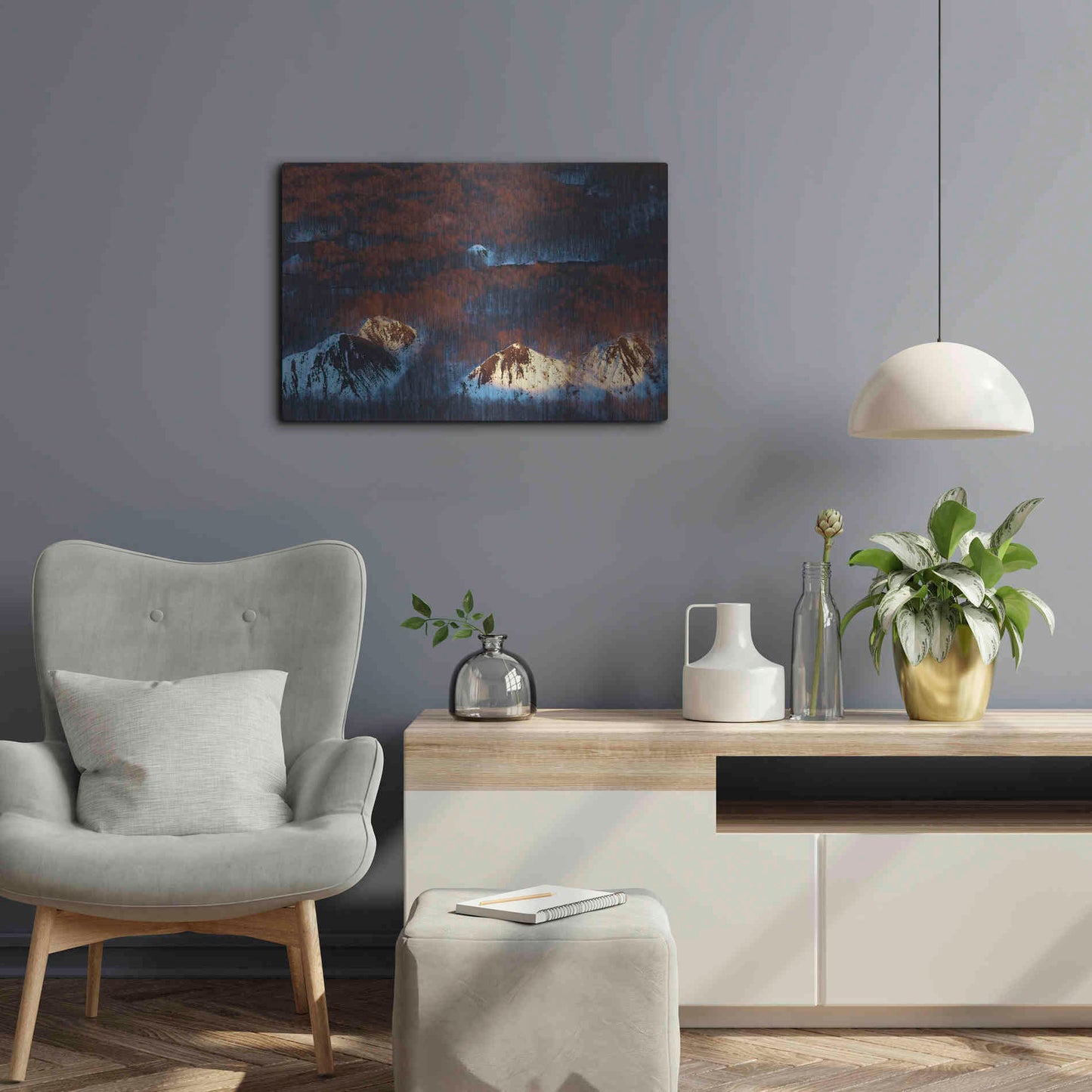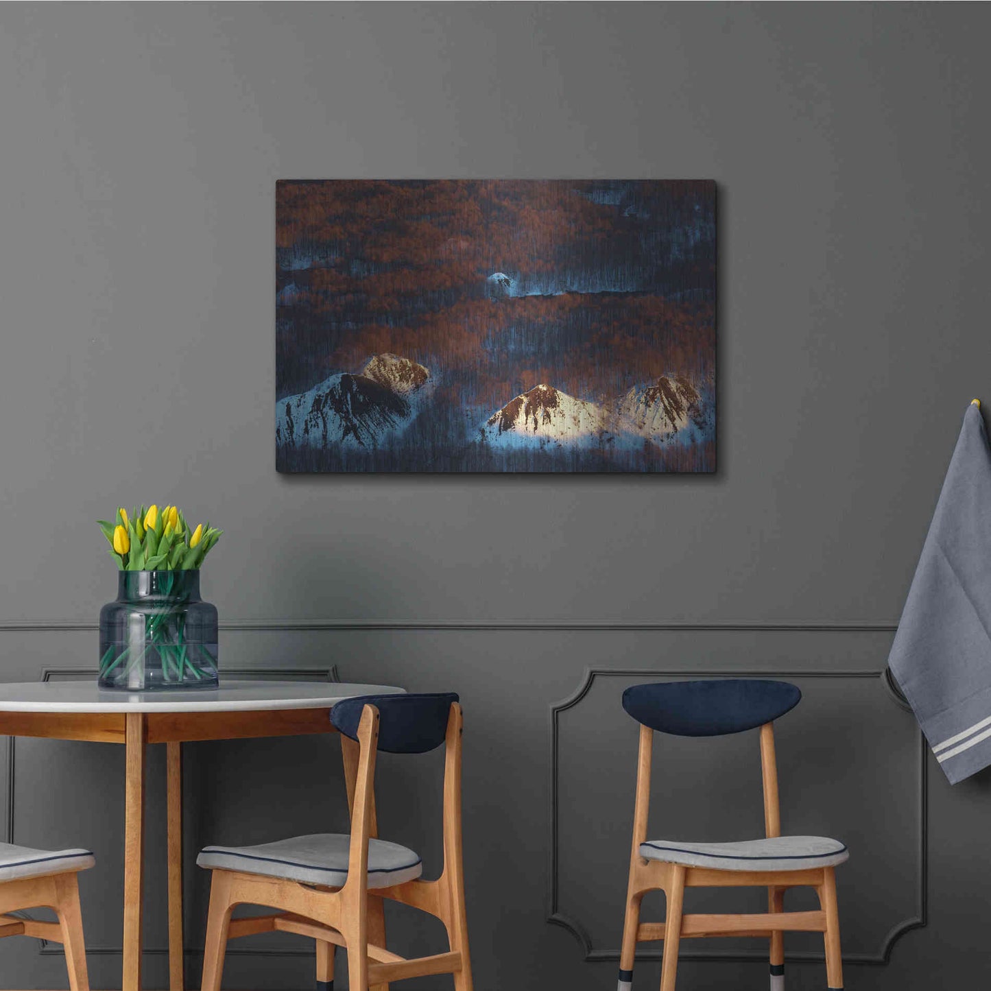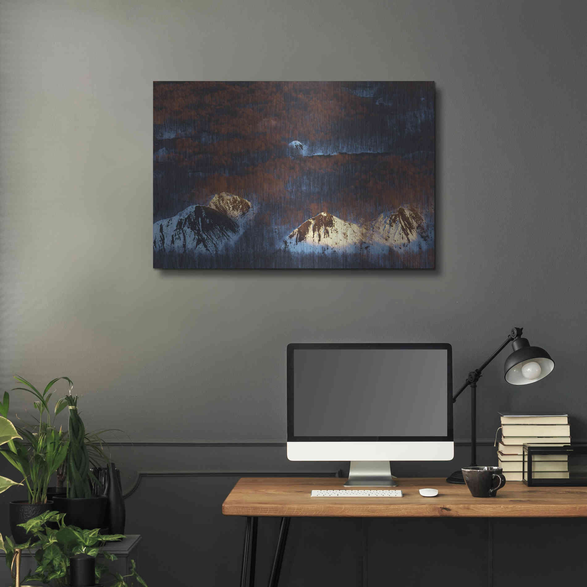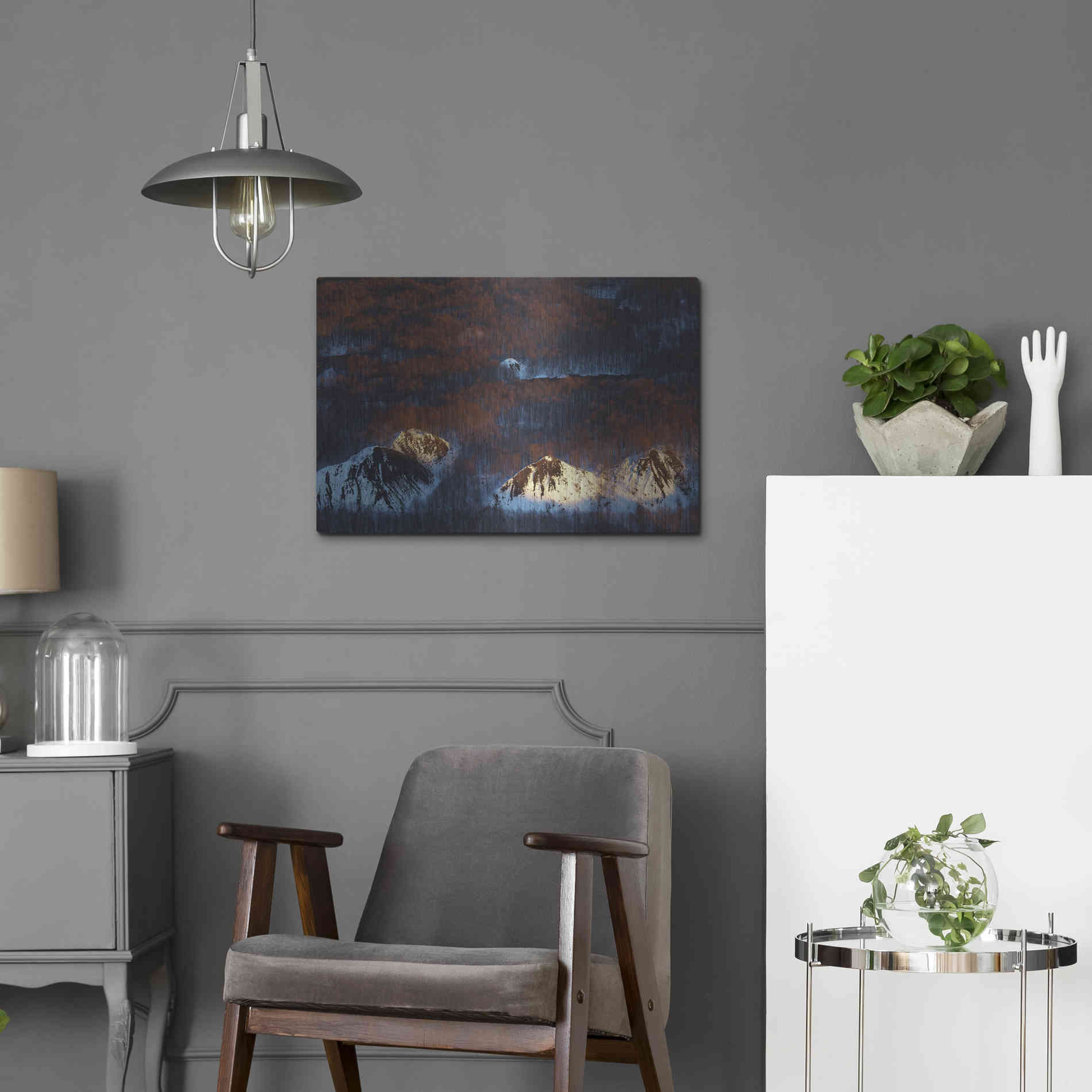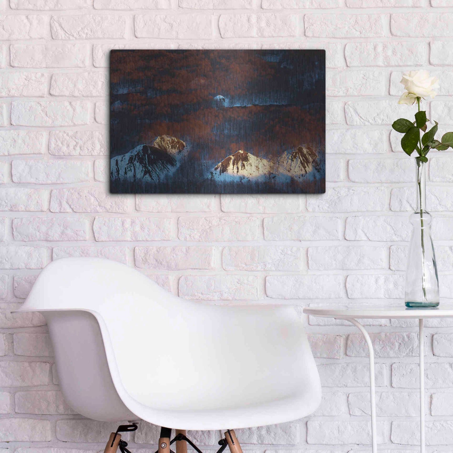 "Touched" by Jesse Estes. Featuring an aerial view of the sun gently kissing the mountains in the wilderness of Washington. Jesse Estes grew up in the Pacific Northwest, a region known for its natural beauty. He prefers to take his photographs at dawn or sunset when the light is at its best and particularly enjoys photographing harsh weather conditions because of the mood & drama that it captures. Jesse's photography has been featured and won contests in such magazines as Islands Magazine & Outdoor Photographer. Bring a touch of something unique with Aluminum Wall Art from Luxe Metal Art for your home or business. UV Printed on 1/4 inch brushed aluminum panel and arrives ready to hang right out of the box. The shimmer of the natural aluminum gives the art a truly unique feel that can't be duplicated. Floating just over half an inch of the wall your frameless art piece will feel light and airy and truly pop.