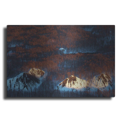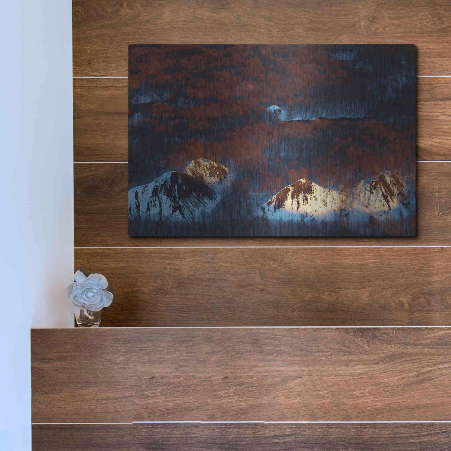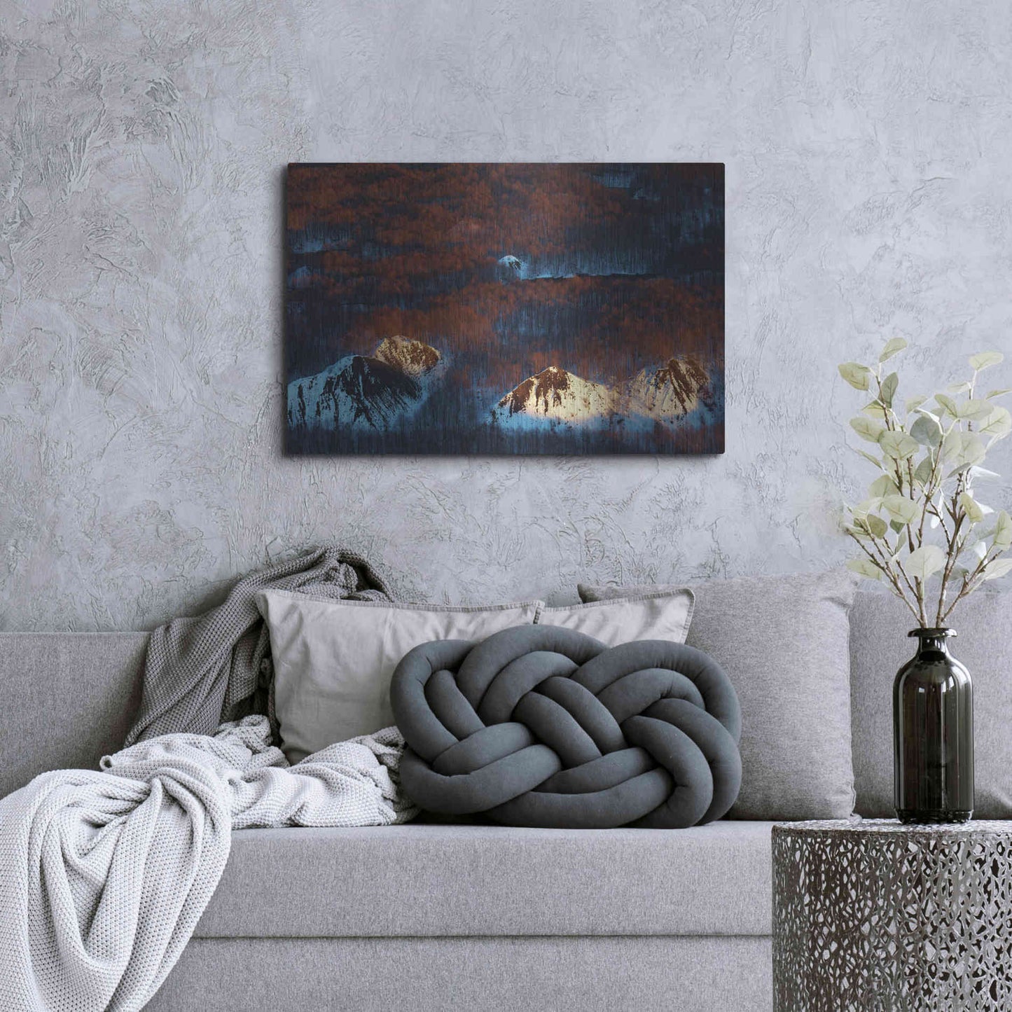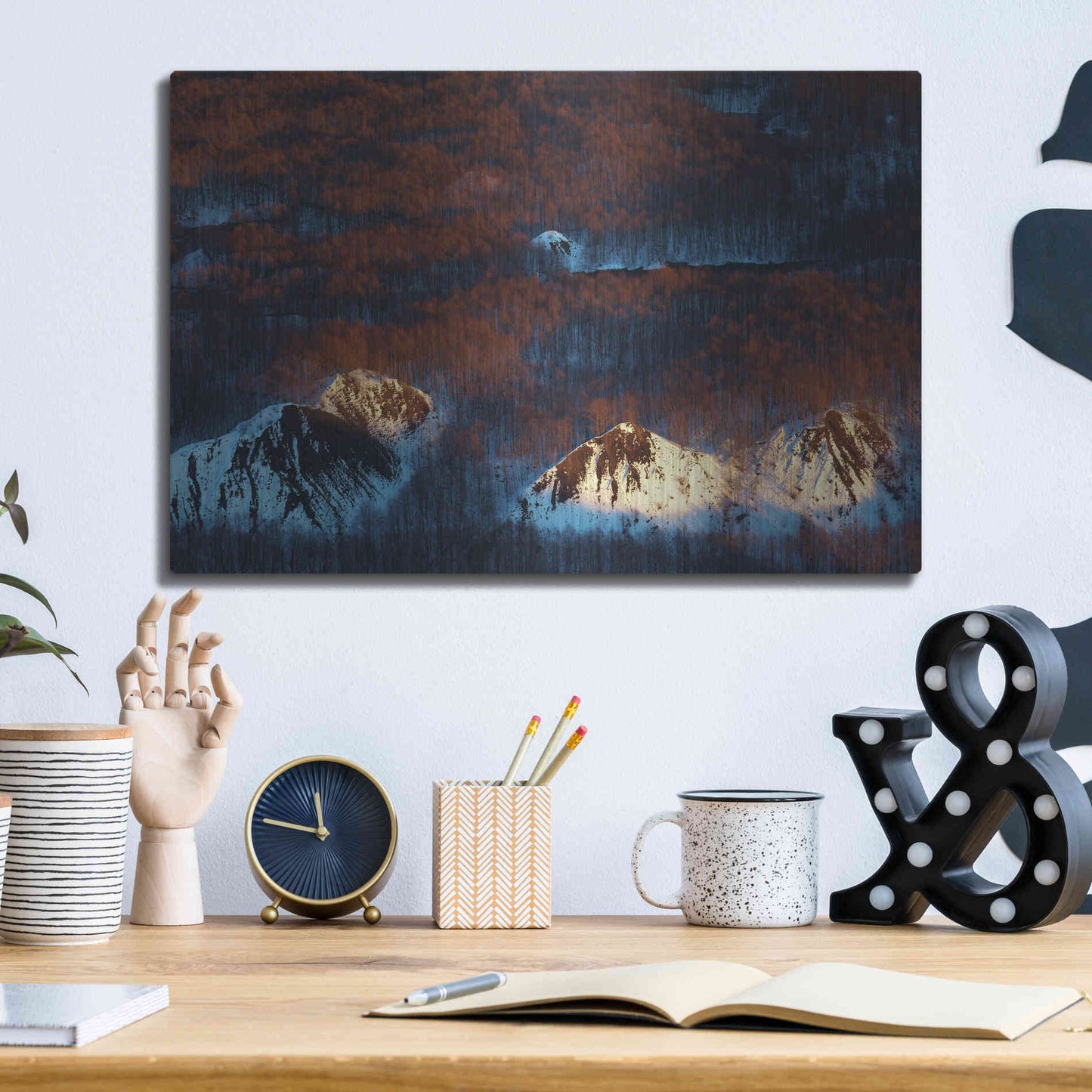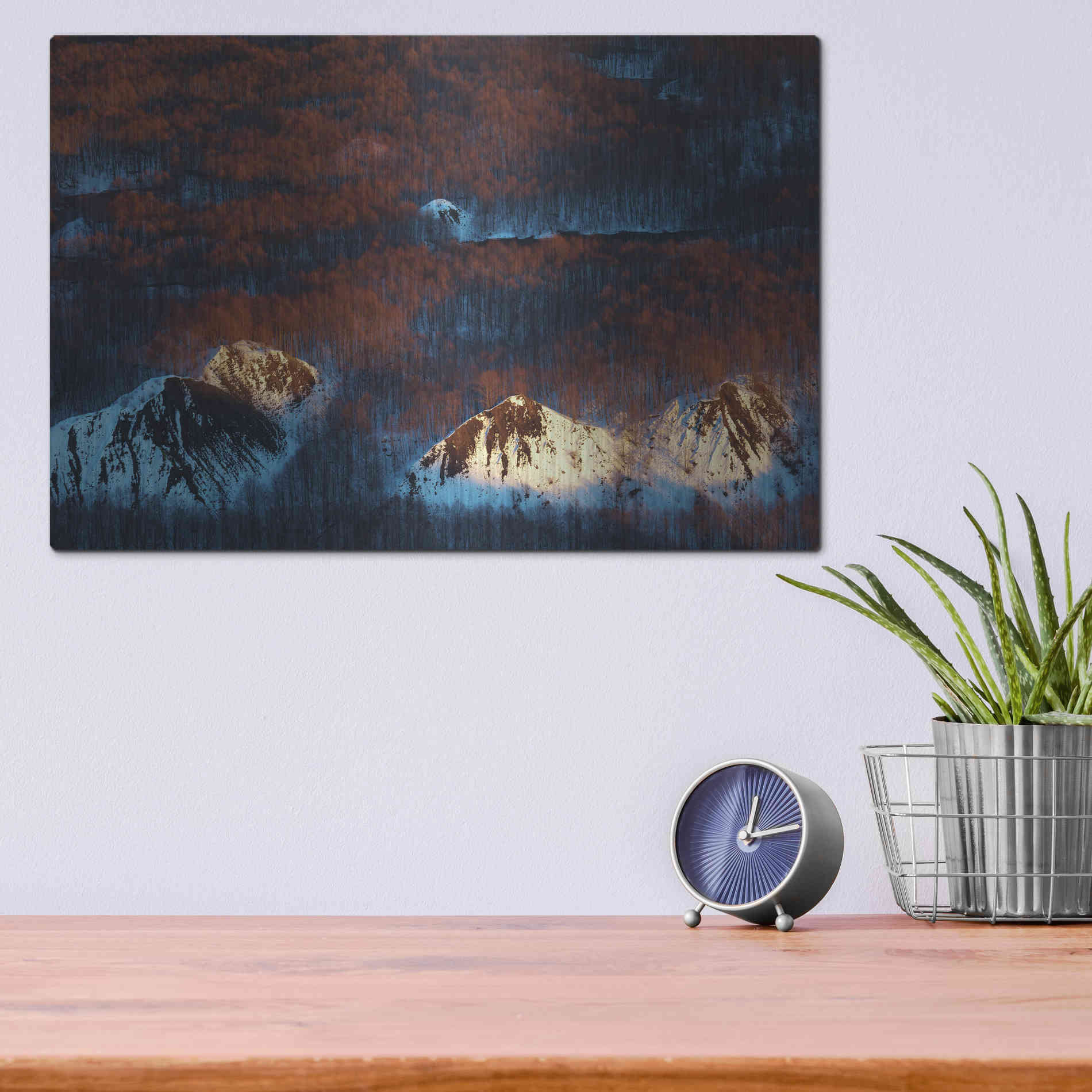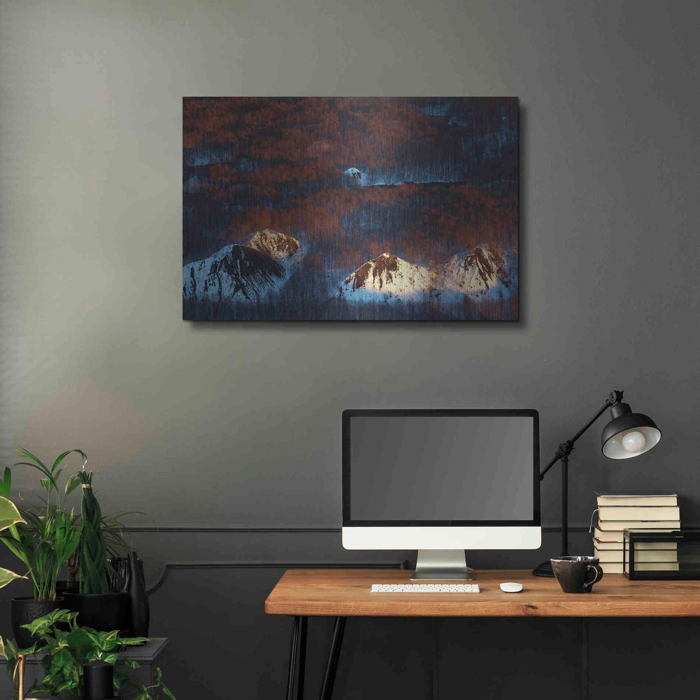 "Touched" by Jesse Estes. Featuring an aerial view of the sun gently kissing the mountains in the wilderness of Washington. Jesse Estes grew up in the Pacific Northwest, a region known for its natural beauty. He prefers to take his photographs at dawn or sunset when the light is at its best and particularly enjoys photographing harsh weather conditions because of the mood & drama that it captures. Jesse's photography has been featured and won contests in such magazines as Islands Magazine & Outdoor Photographer. Bring a touch of something unique with Aluminum Wall Art from Luxe Metal Art for your home or business. UV Printed on 1/4 inch brushed aluminum panel and arrives ready to hang right out of the box. The shimmer of the natural aluminum gives the art a truly unique feel that can't be duplicated. Floating just over half an inch of the wall your frameless art piece will feel light and airy and truly pop.