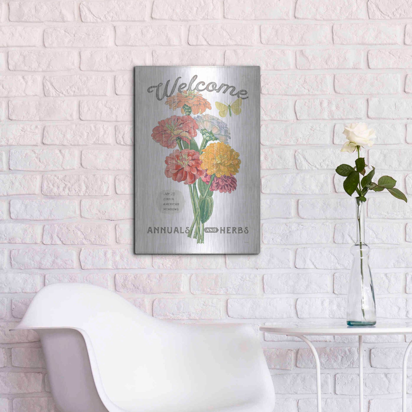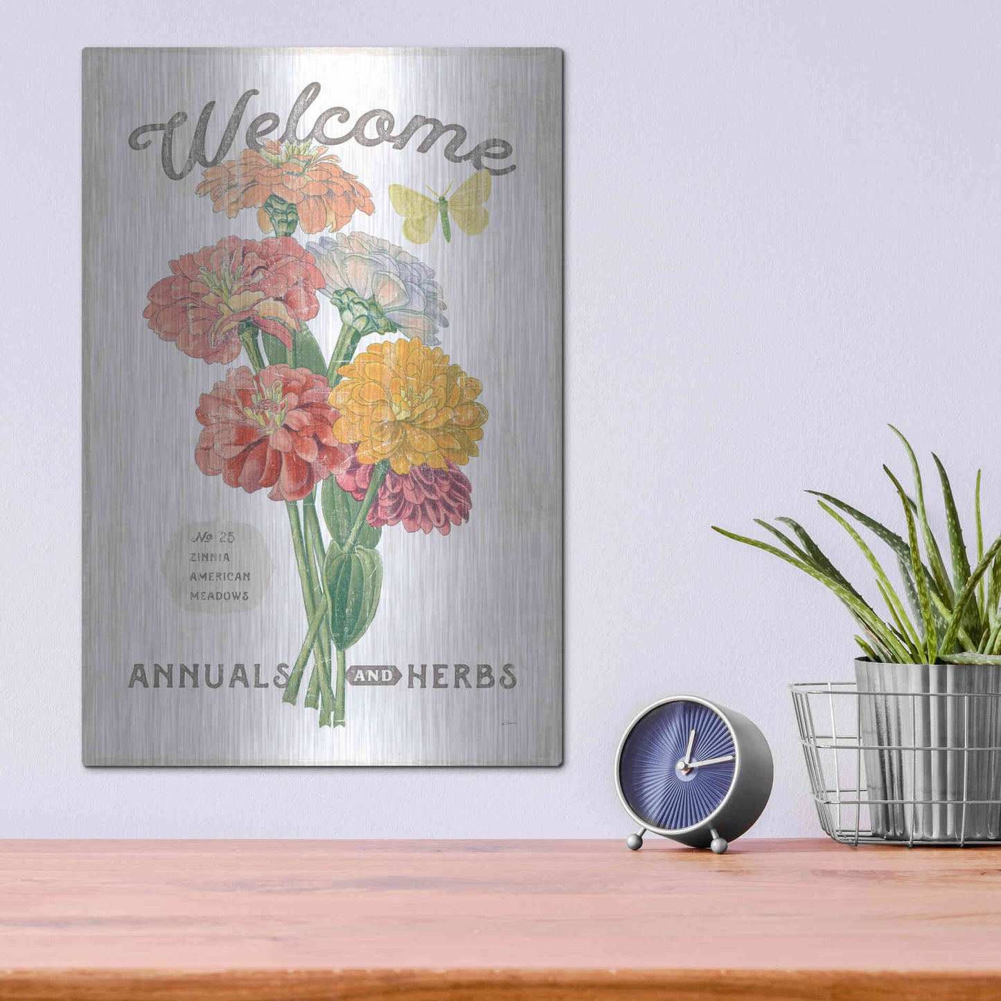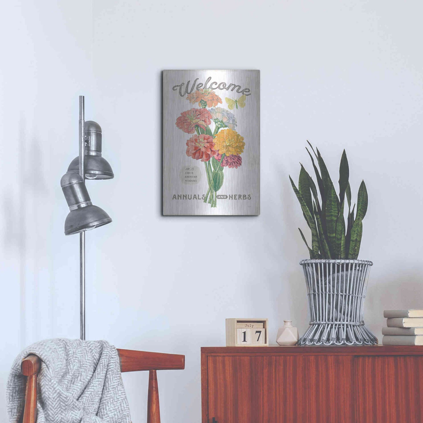 Luxe Metal Art 'White Barn Flowers V Flag' by Sue Schlabach, Metal Wall Art