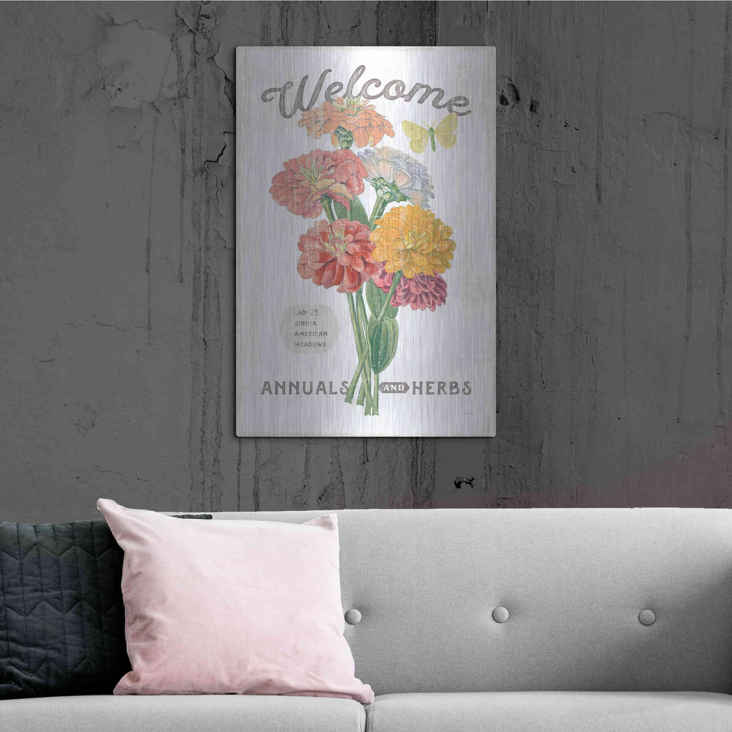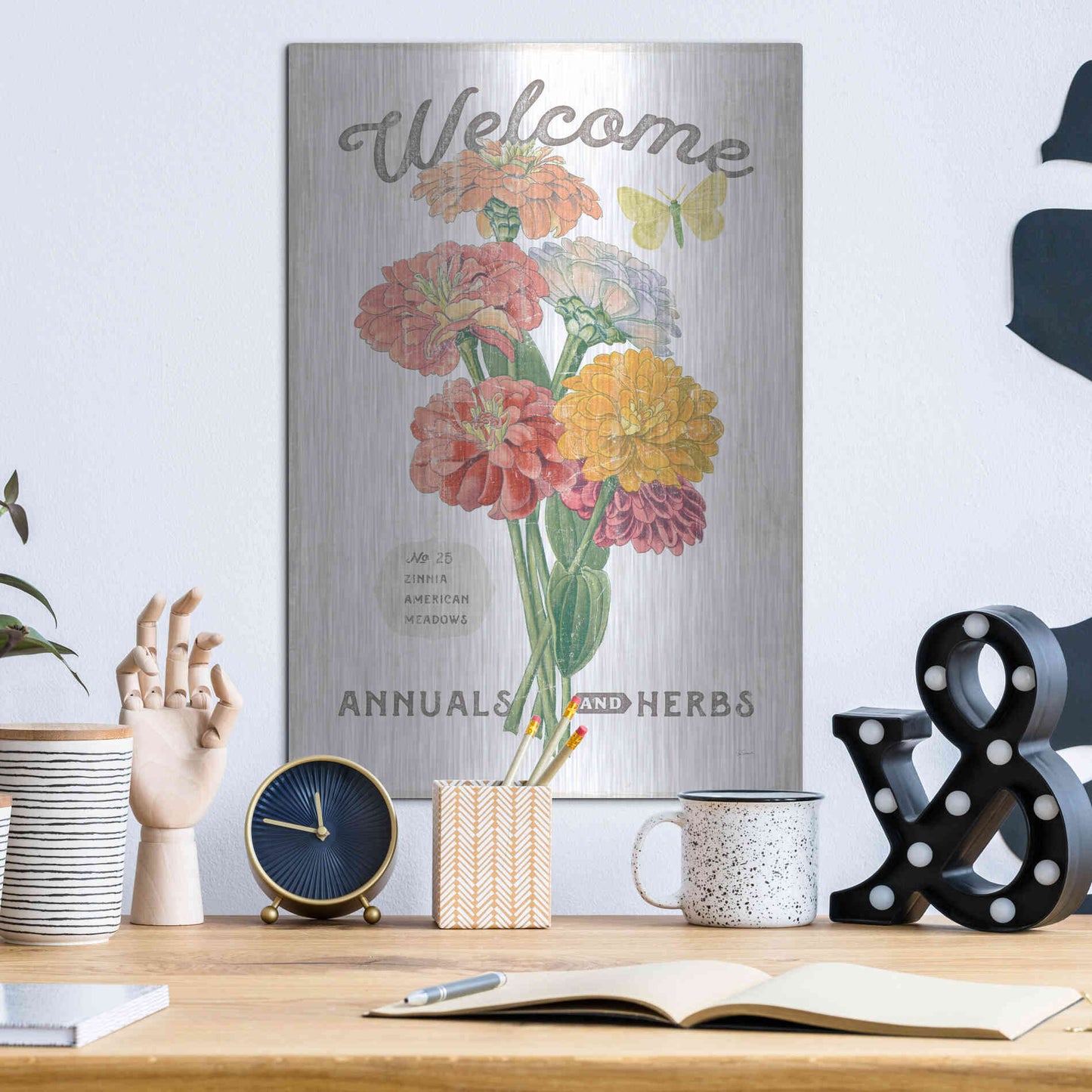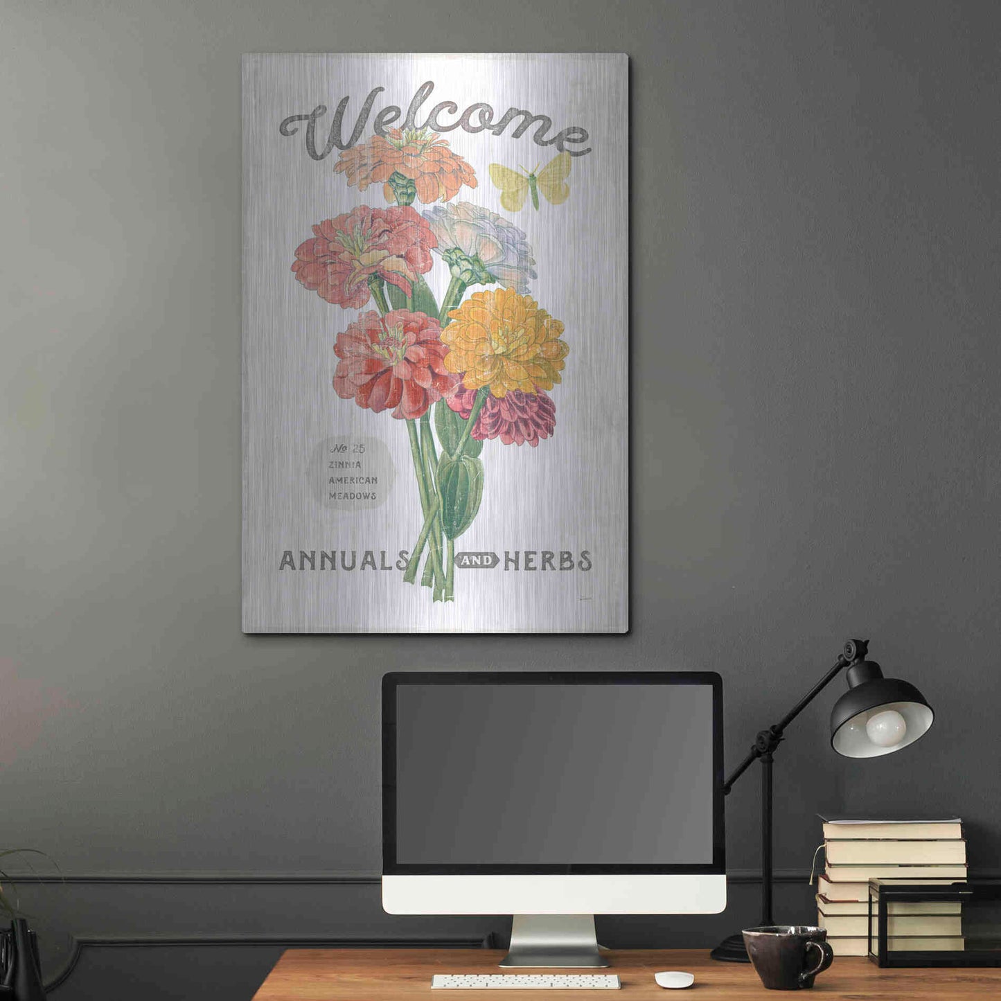 Luxe Metal Art 'White Barn Flowers V Flag' by Sue Schlabach, Metal Wall Art