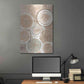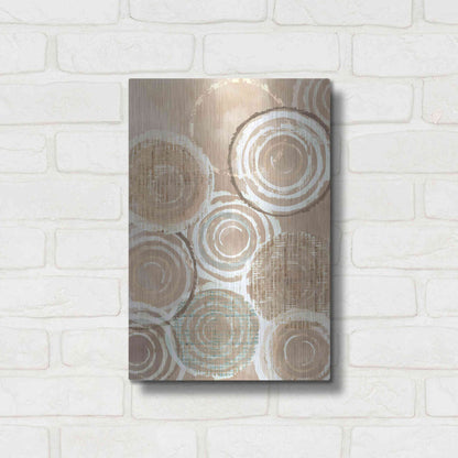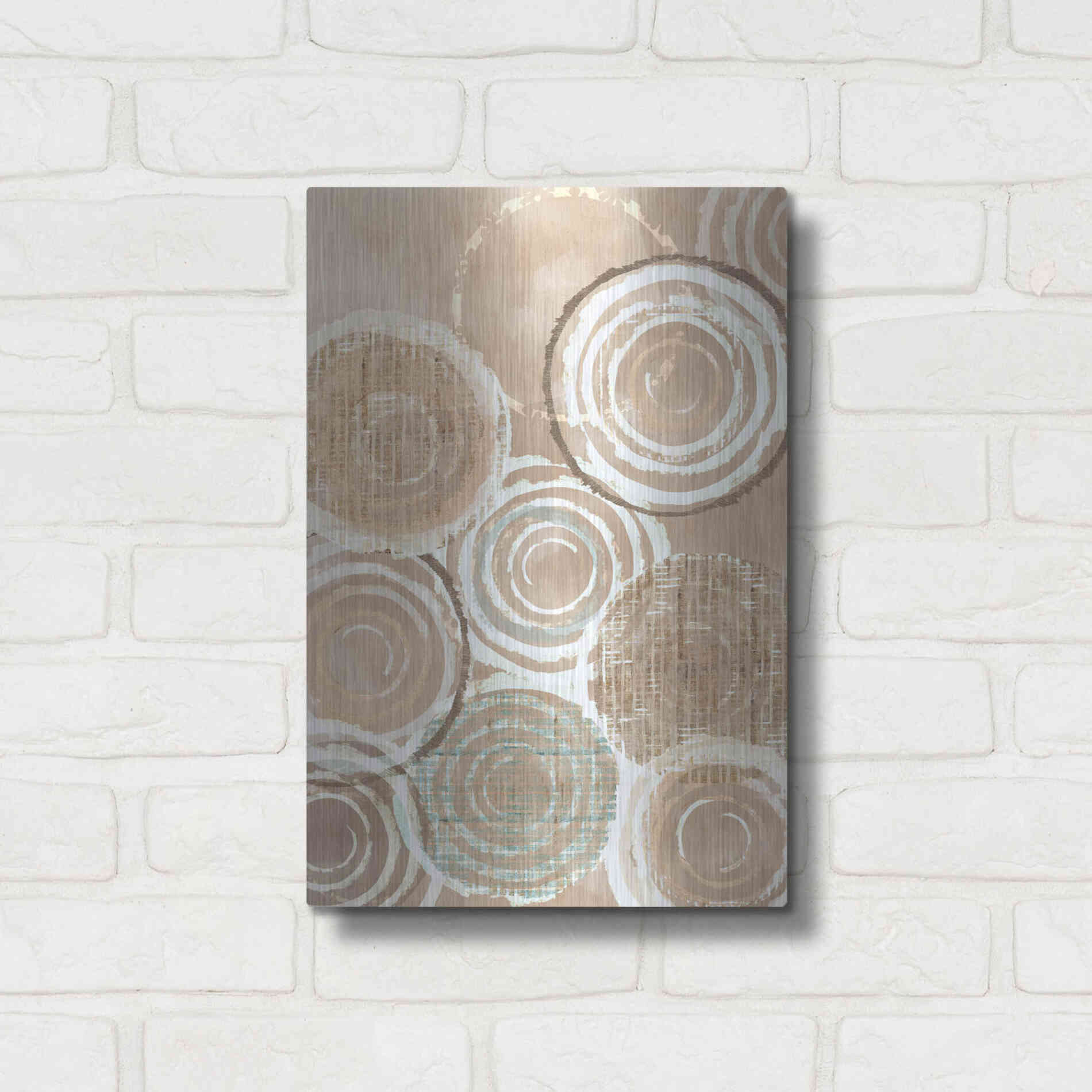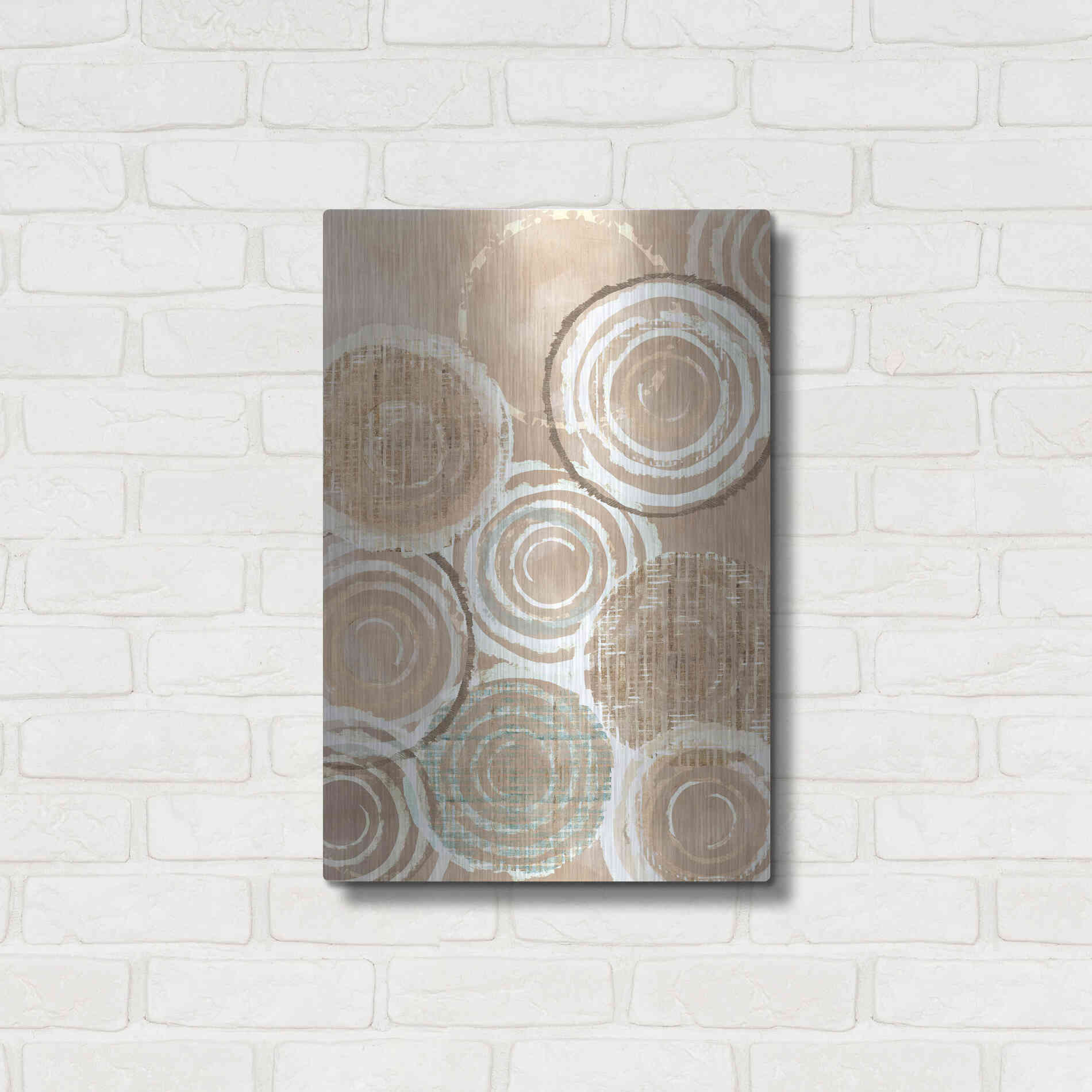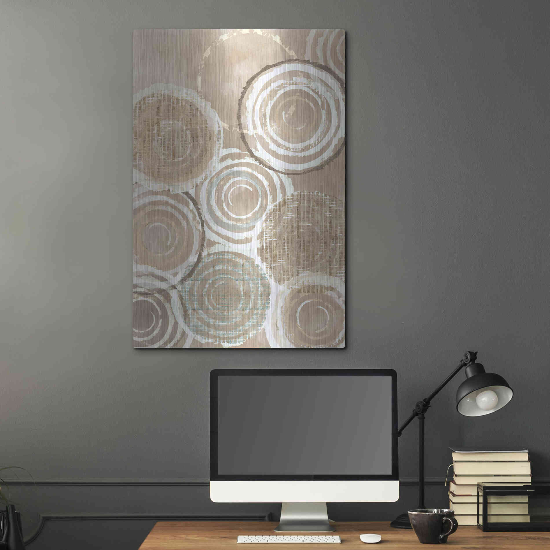 Woven Baskets IV' by Flora Kouta Metal Wall Art. Brown and cream abstract painting inspired by rattan and wicker lamps and baskets